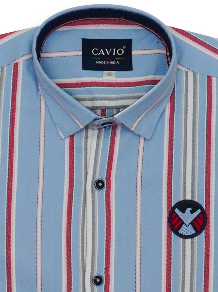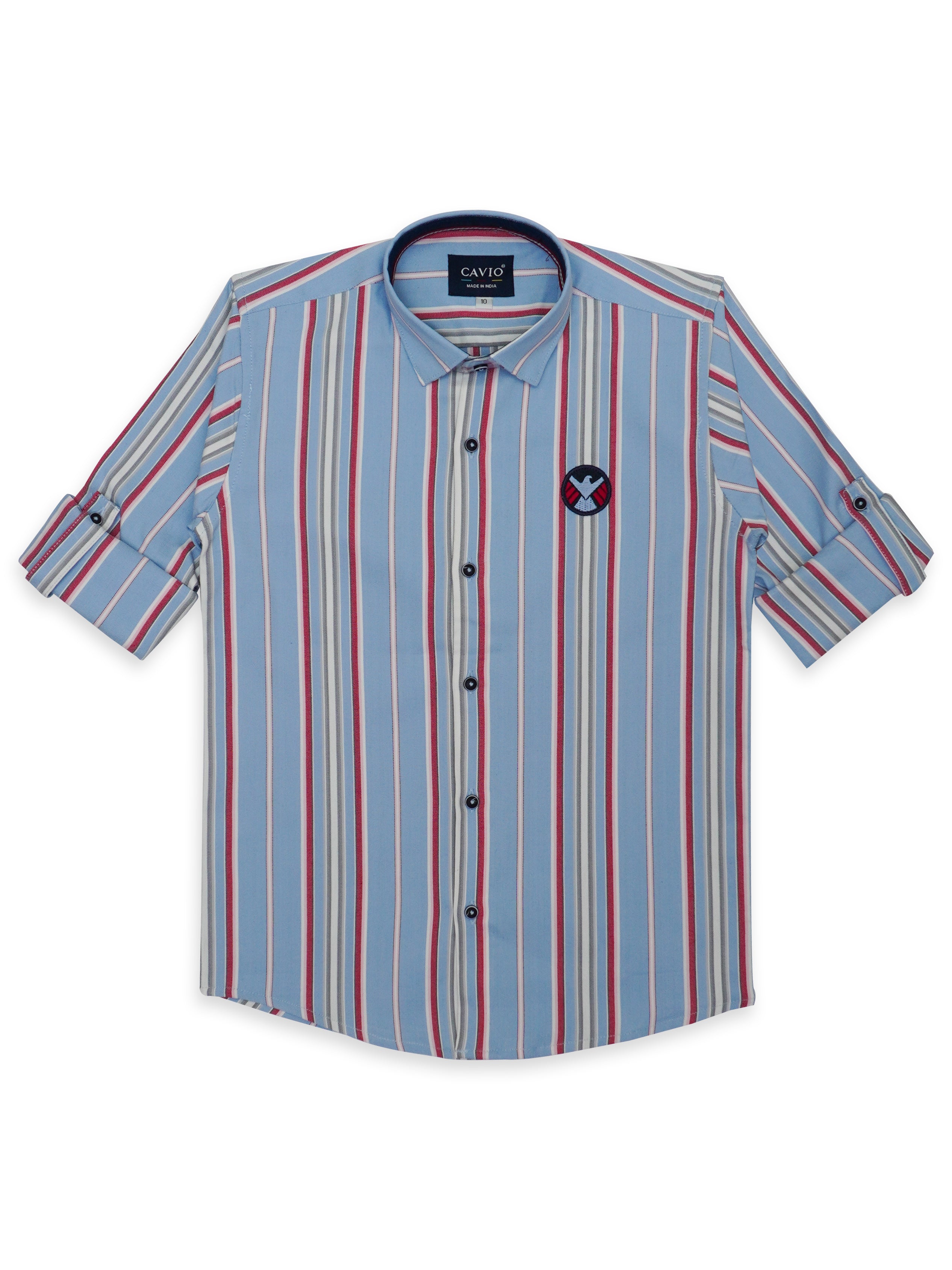 Blue vertical stripes striped opaque Casual shirt ,has a spread collar, button placket, na pocket, long roll-up sleeves, curved hem