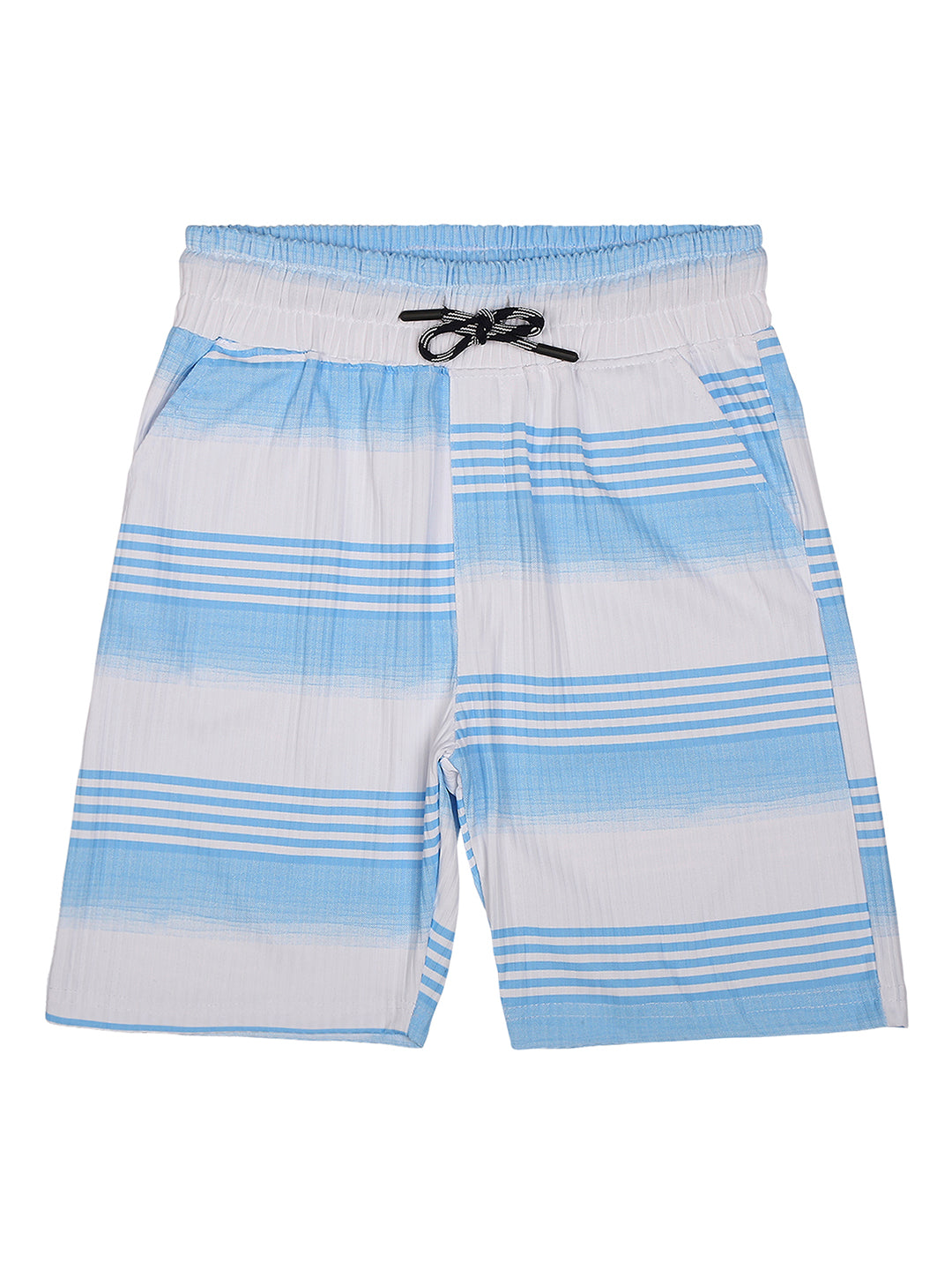Peach-coloured and white striped Shorts, has a drawstring closure