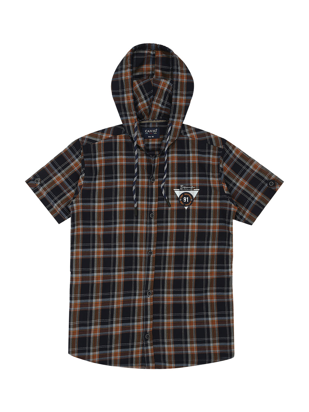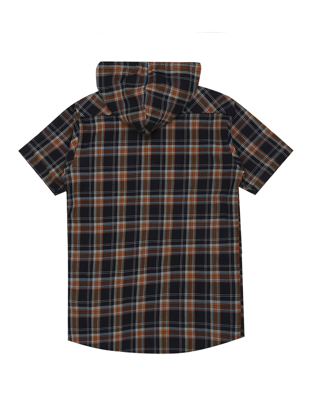 Mustard tartan checks checked opaque Casual shirt ,has a hooded neck, button placket, short regular sleeves, straight hem