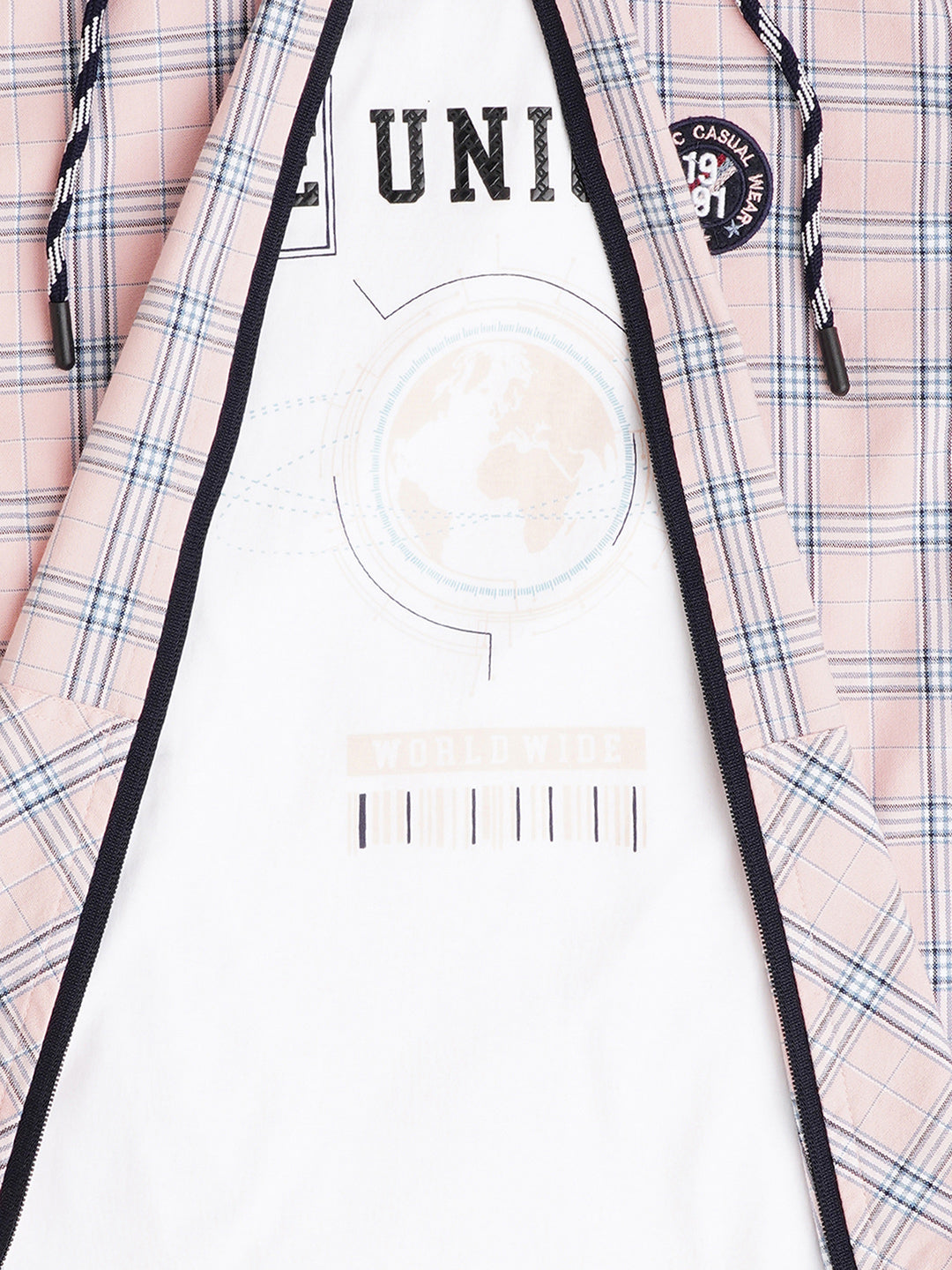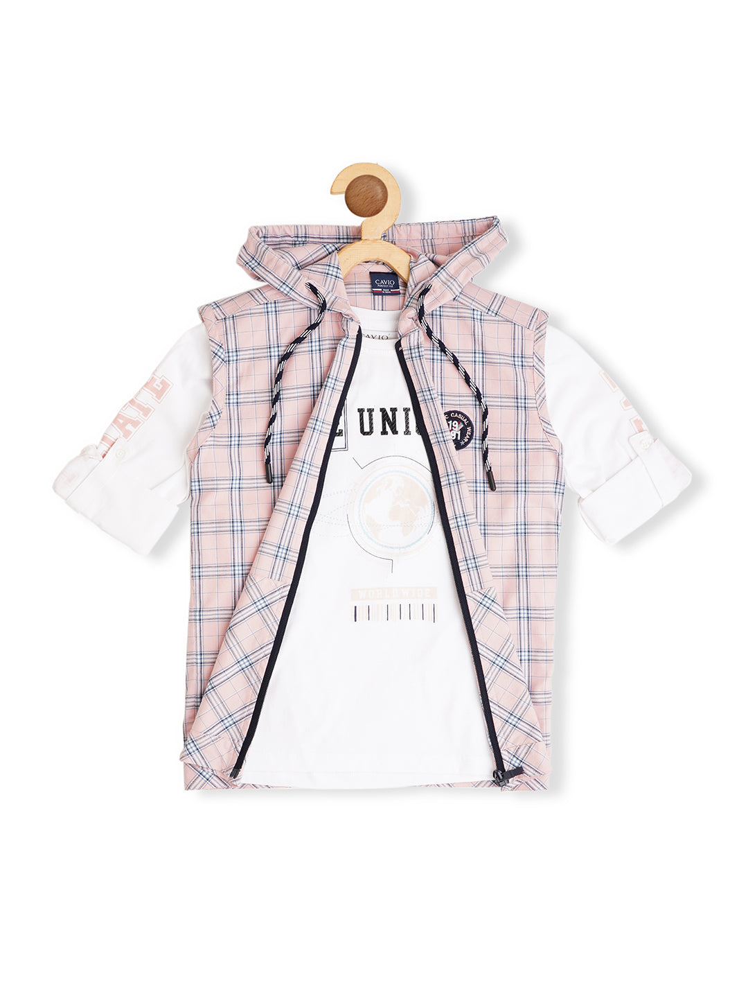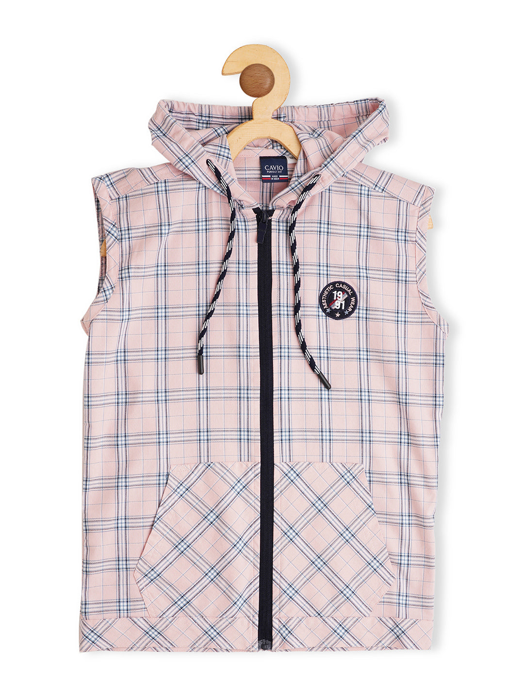 Pink,white other checks checked opaque casual shirt ,has a spread collar, zip, 2 patch pocket, sleeveless, curved hem