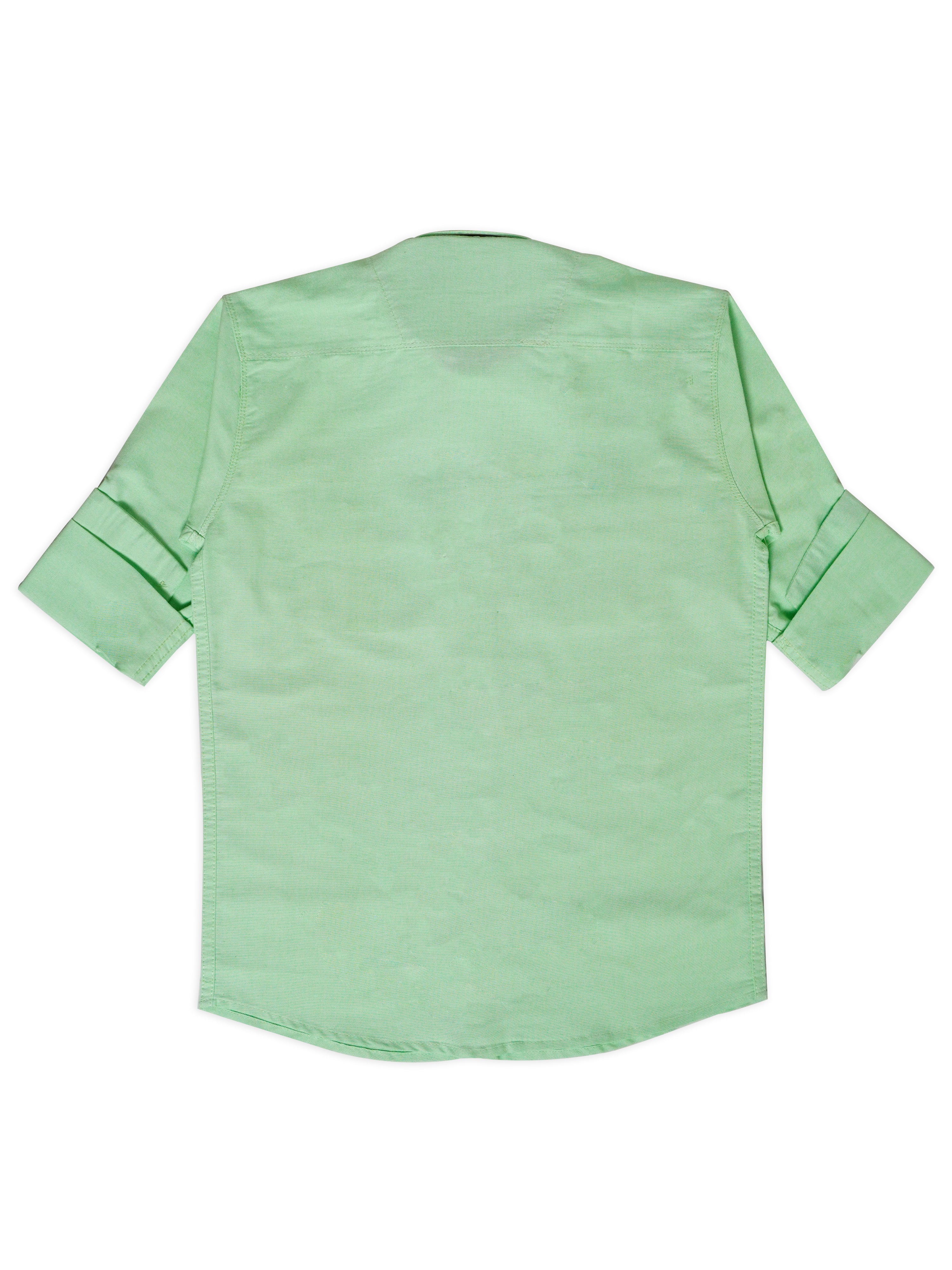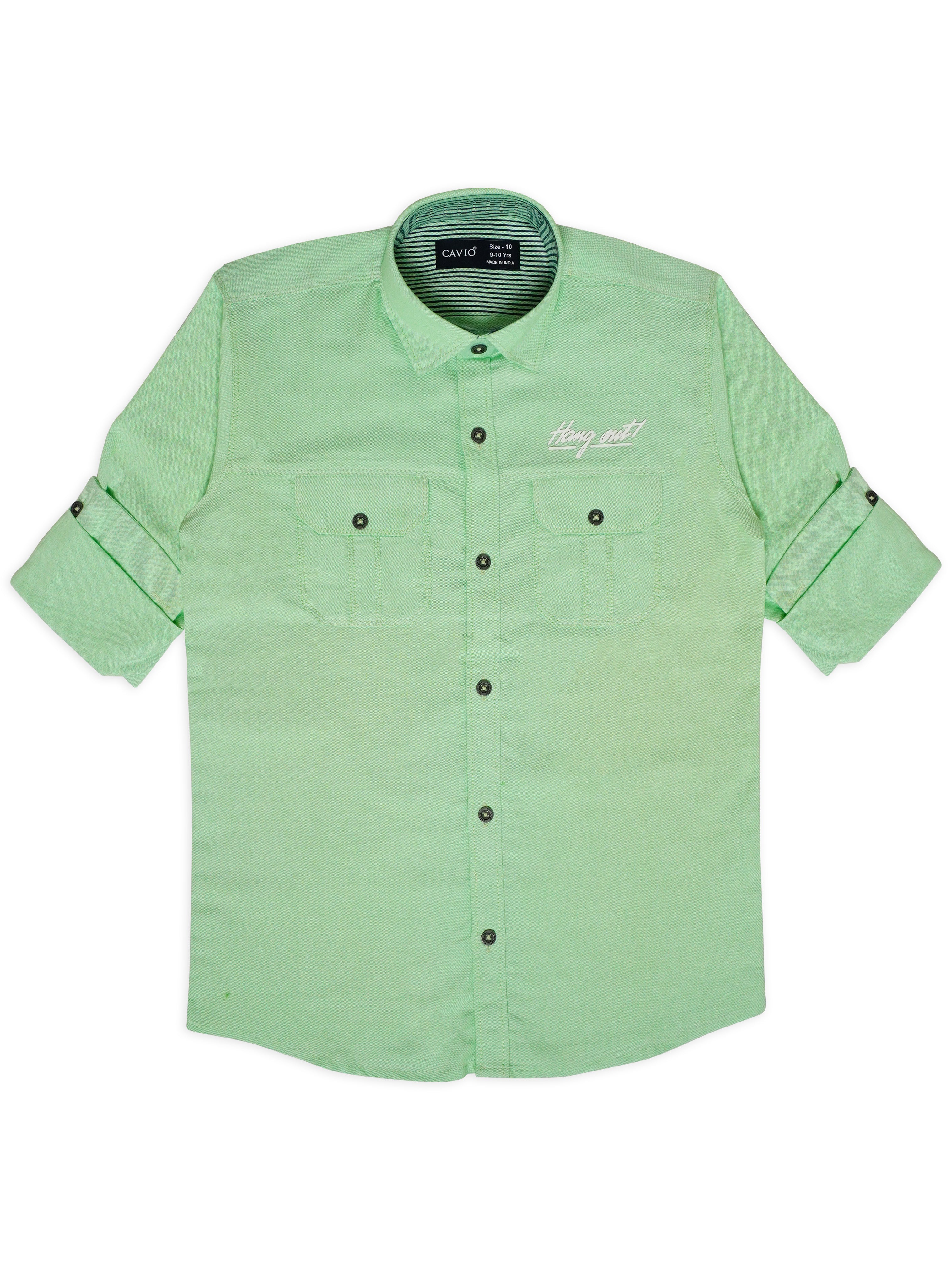 Sea green solid opaque casual shirt ,has a spread collar, button placket, 2 flap pocket, long regular sleeves, curved hem