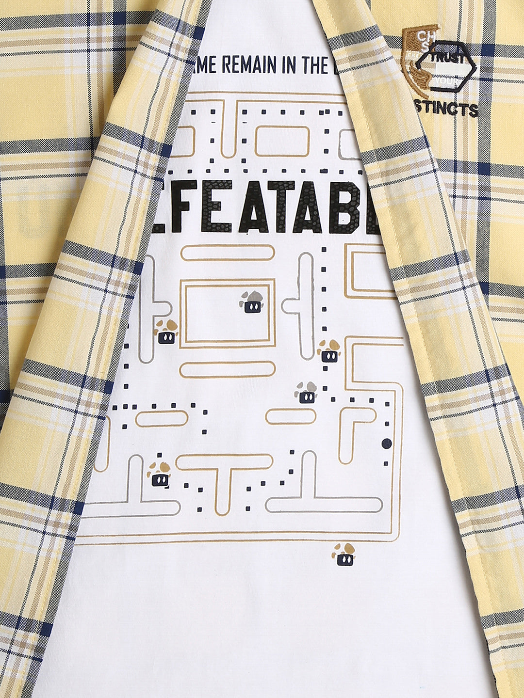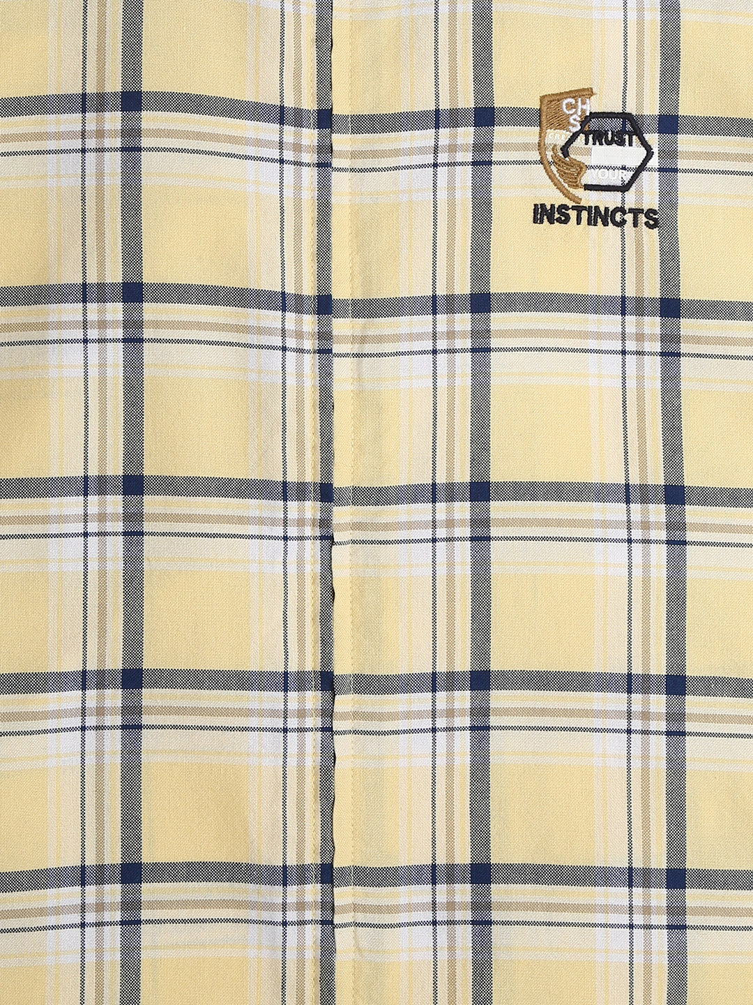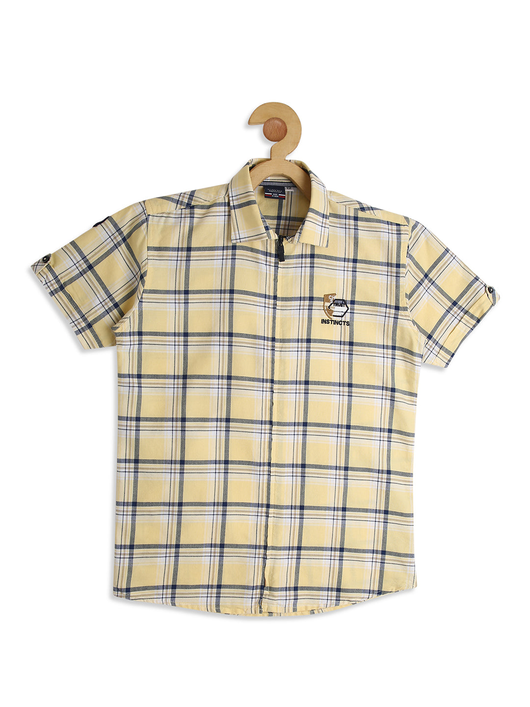 Yellow checked opaque Casual shirt ,has a spread collar, zip, short regular sleeves, straight hem.