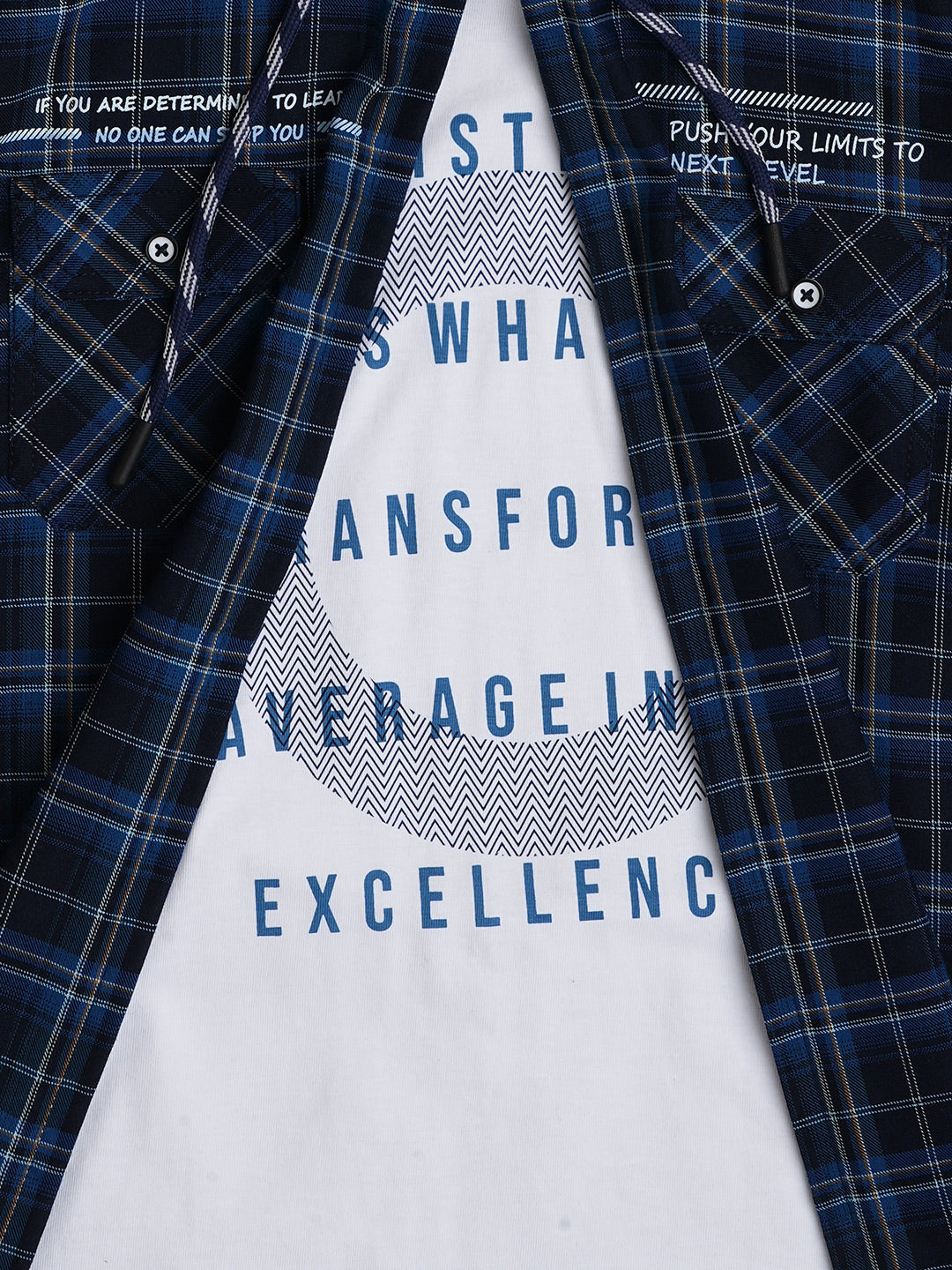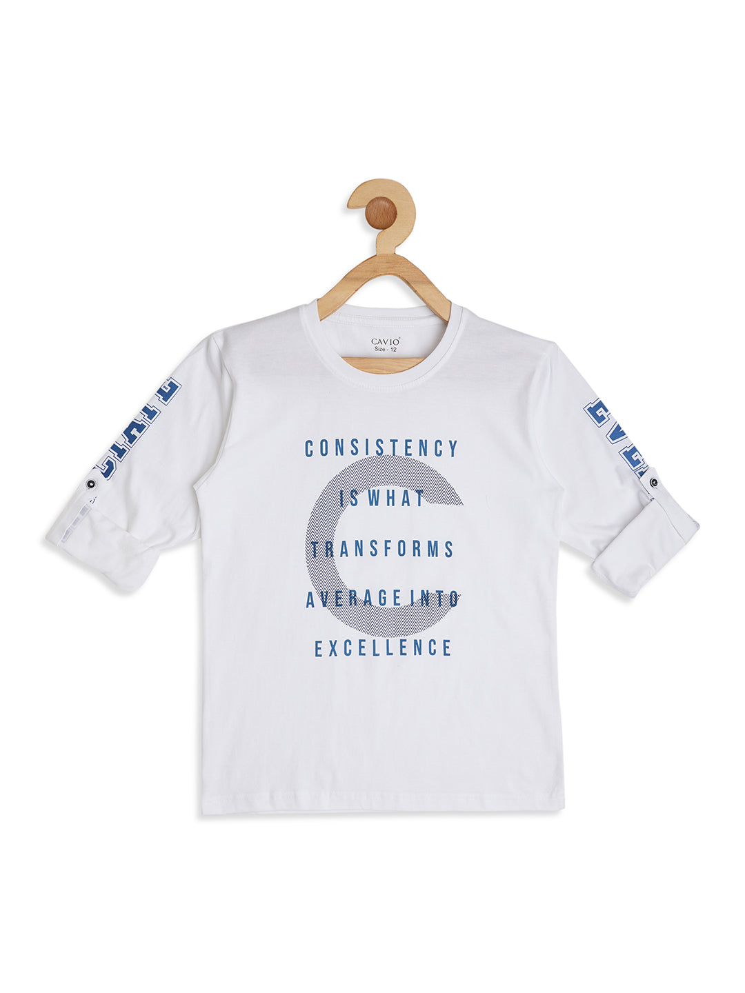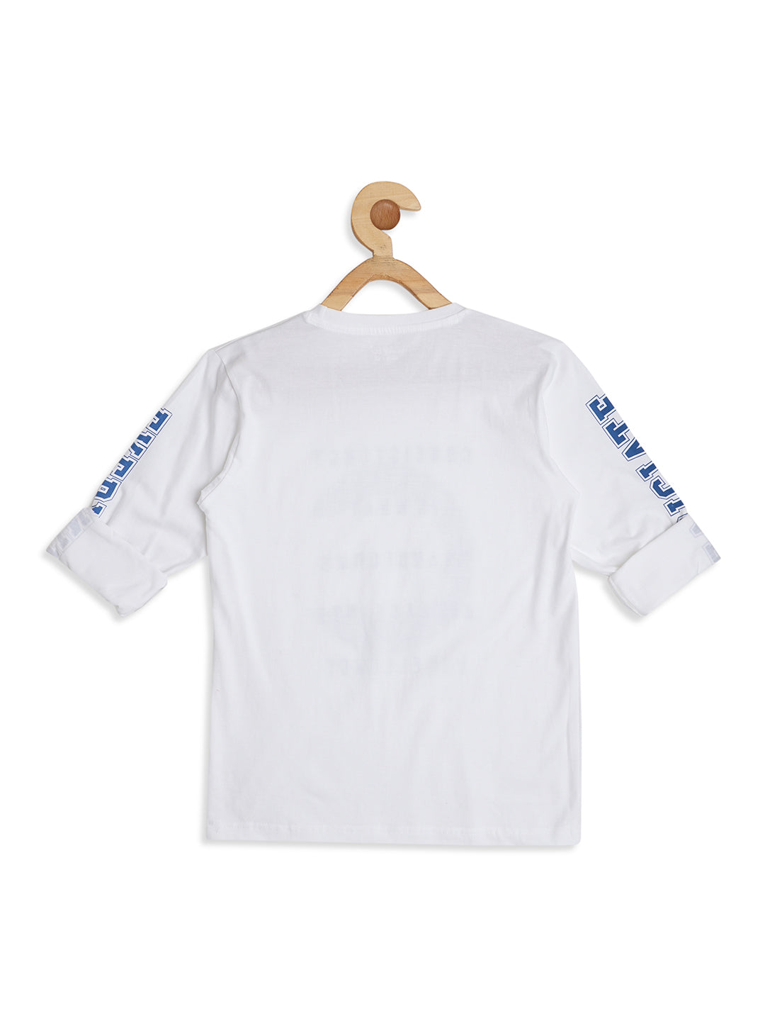 Comes with a white typography printed long roll-up sleeves T-shirt