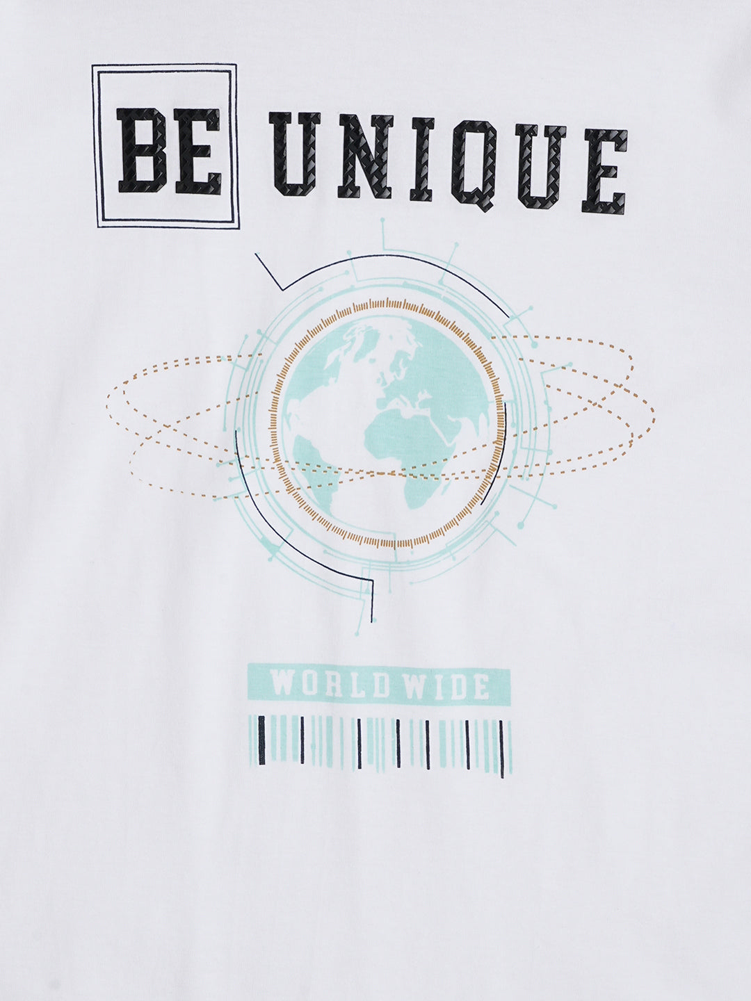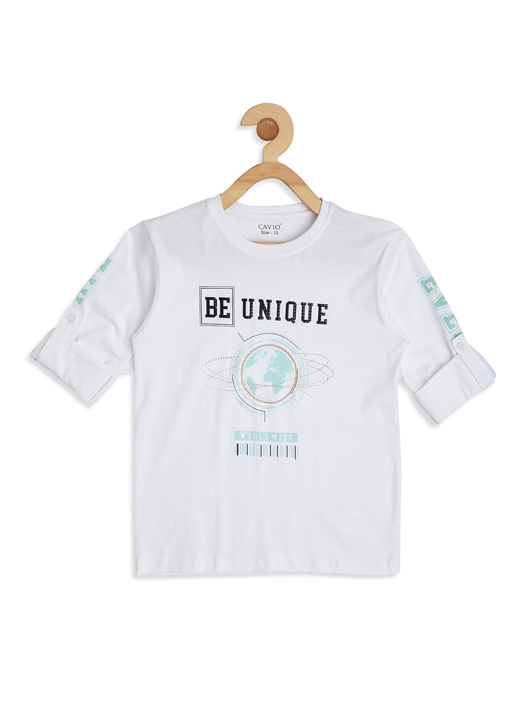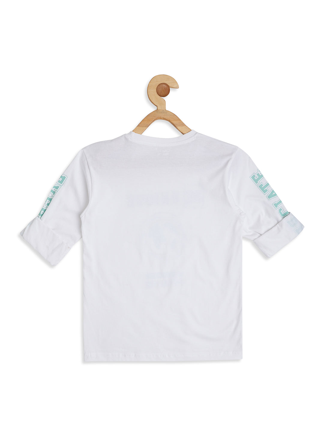 Comes with a white typography printed long roll-up sleeves T-shirt