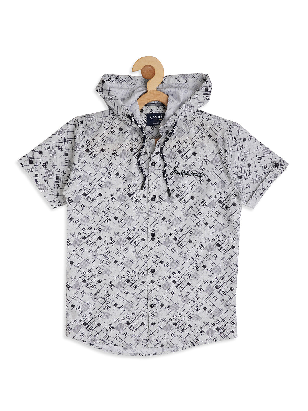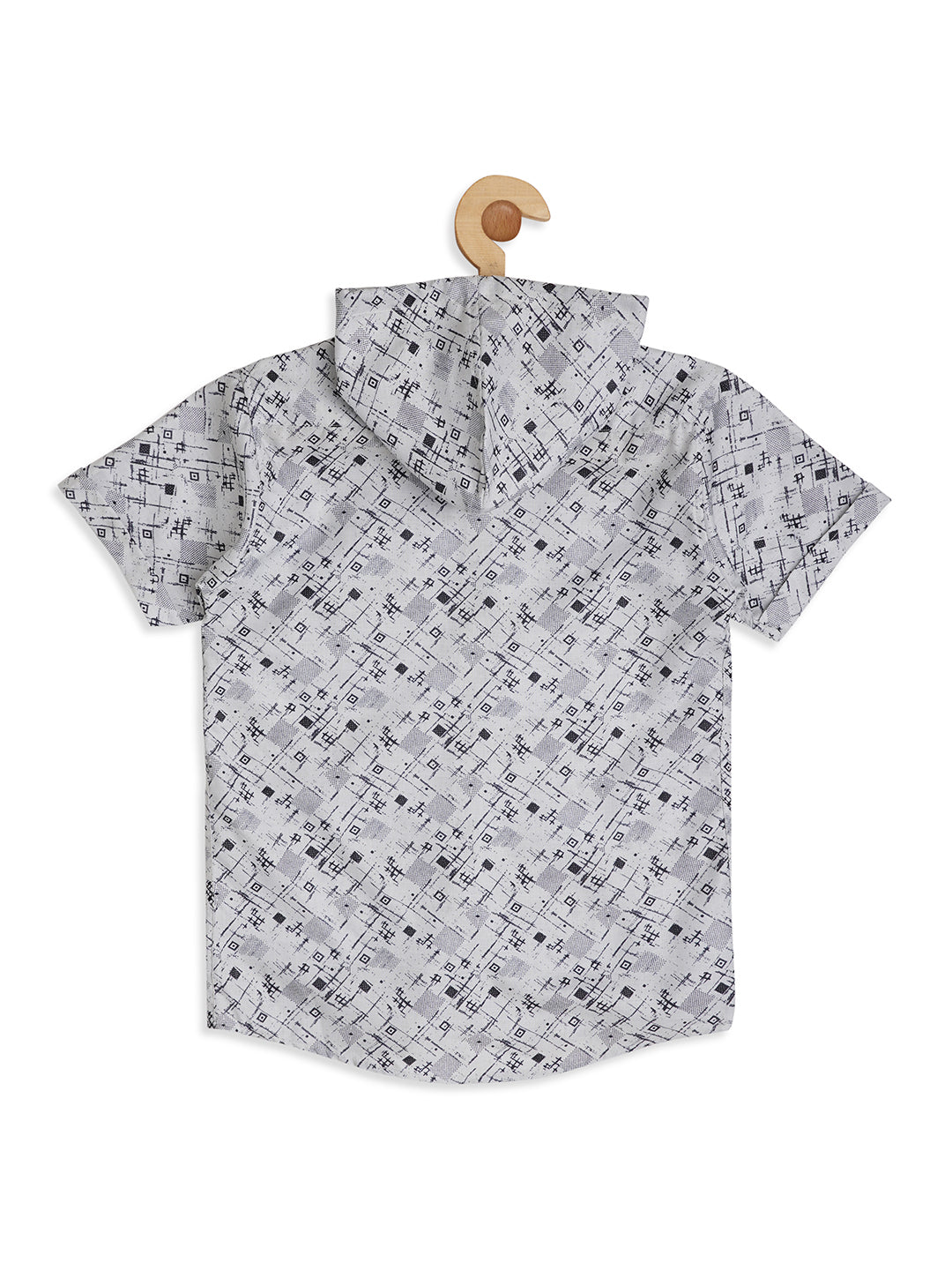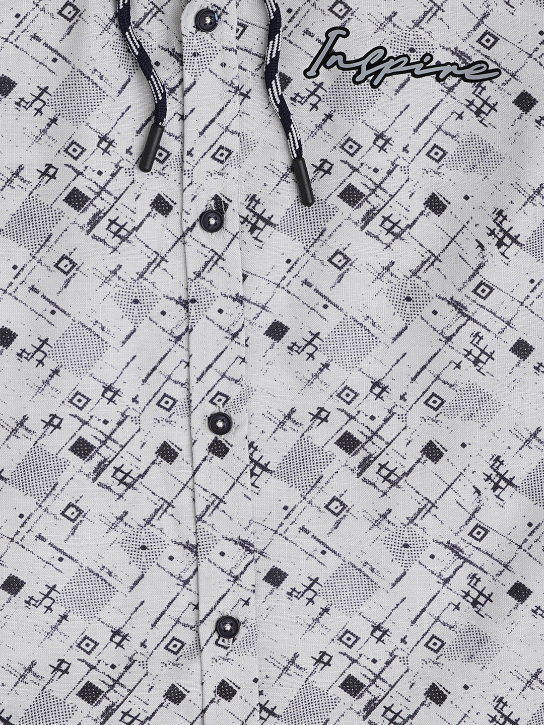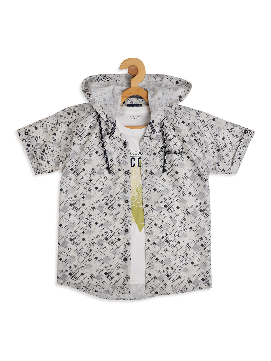 Boys Comfort Fit Geometric Printed Hooded Opaque Casual Shirt With Printed Tshirt