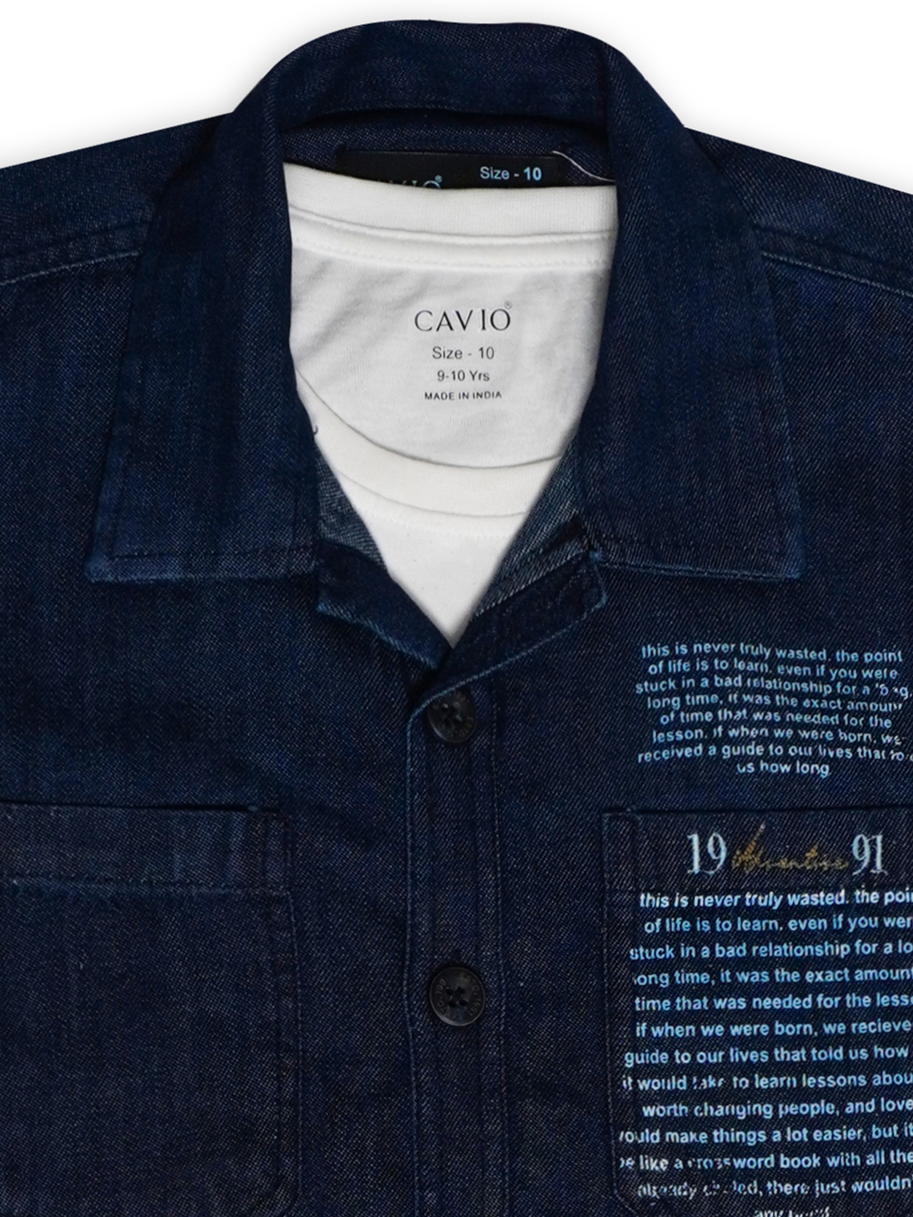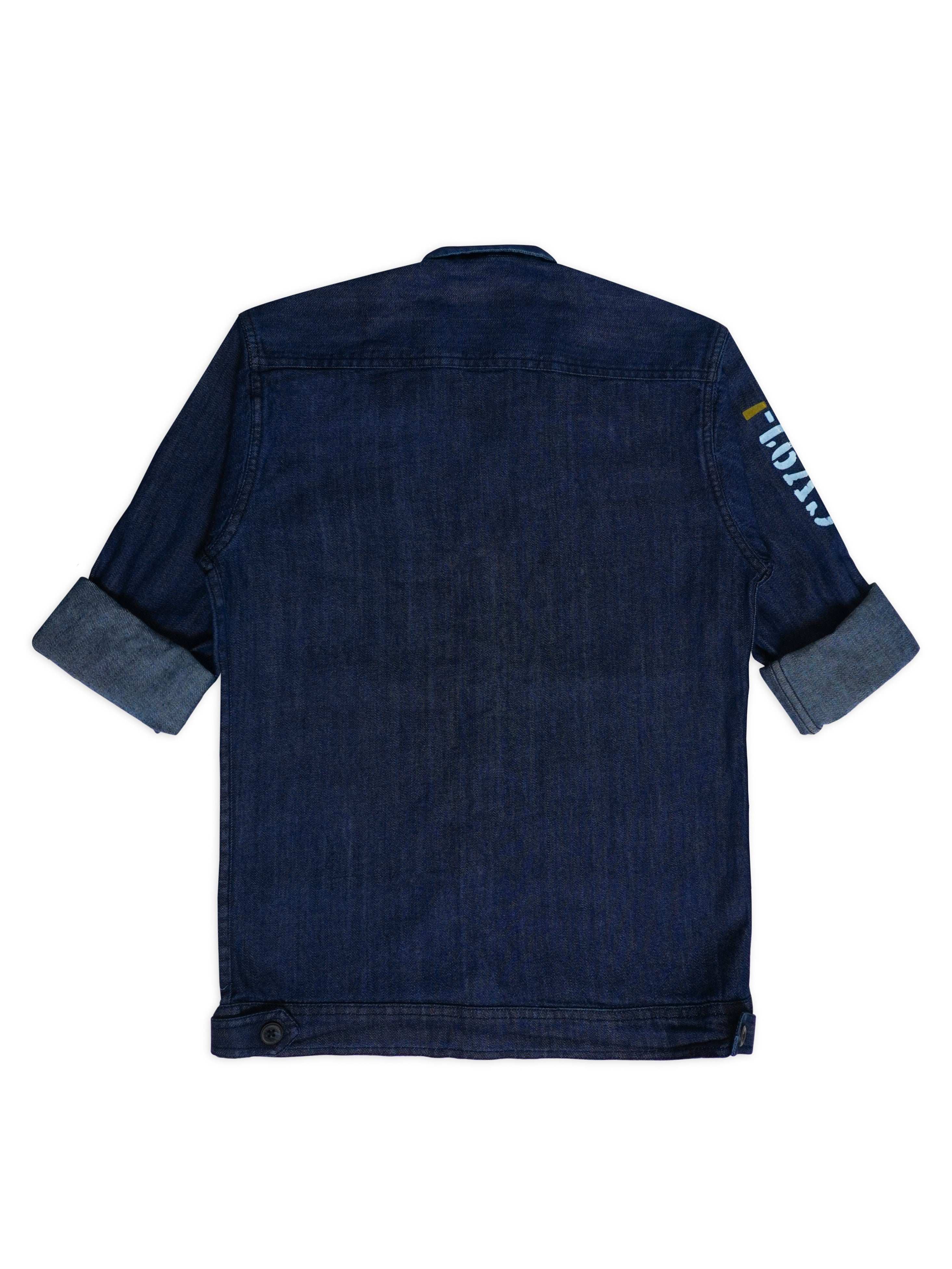 Blue solid opaque Casual shirt ,has a spread collar, button placket, 2 patch pocket, long roll-up sleeves, straight hem
