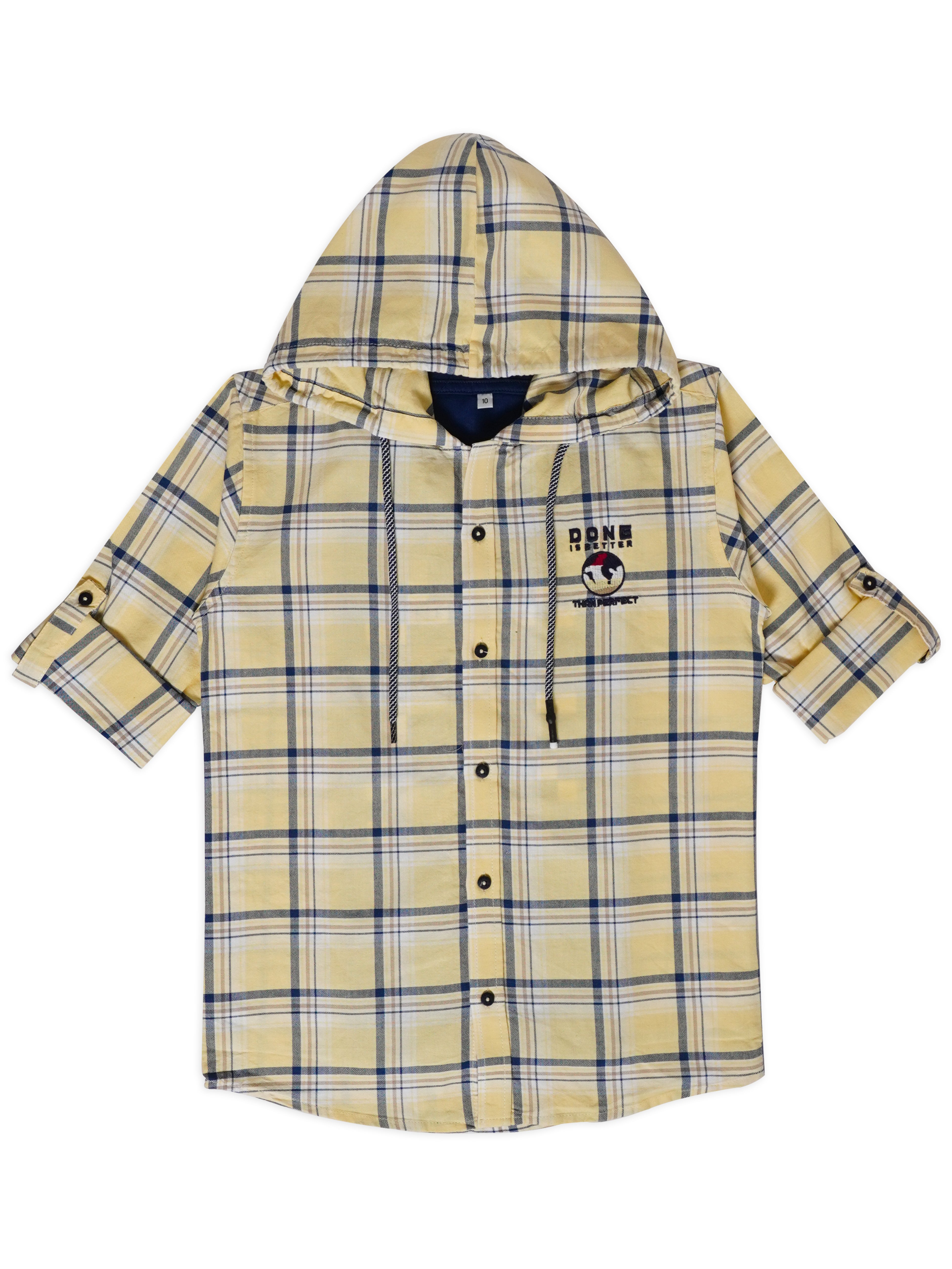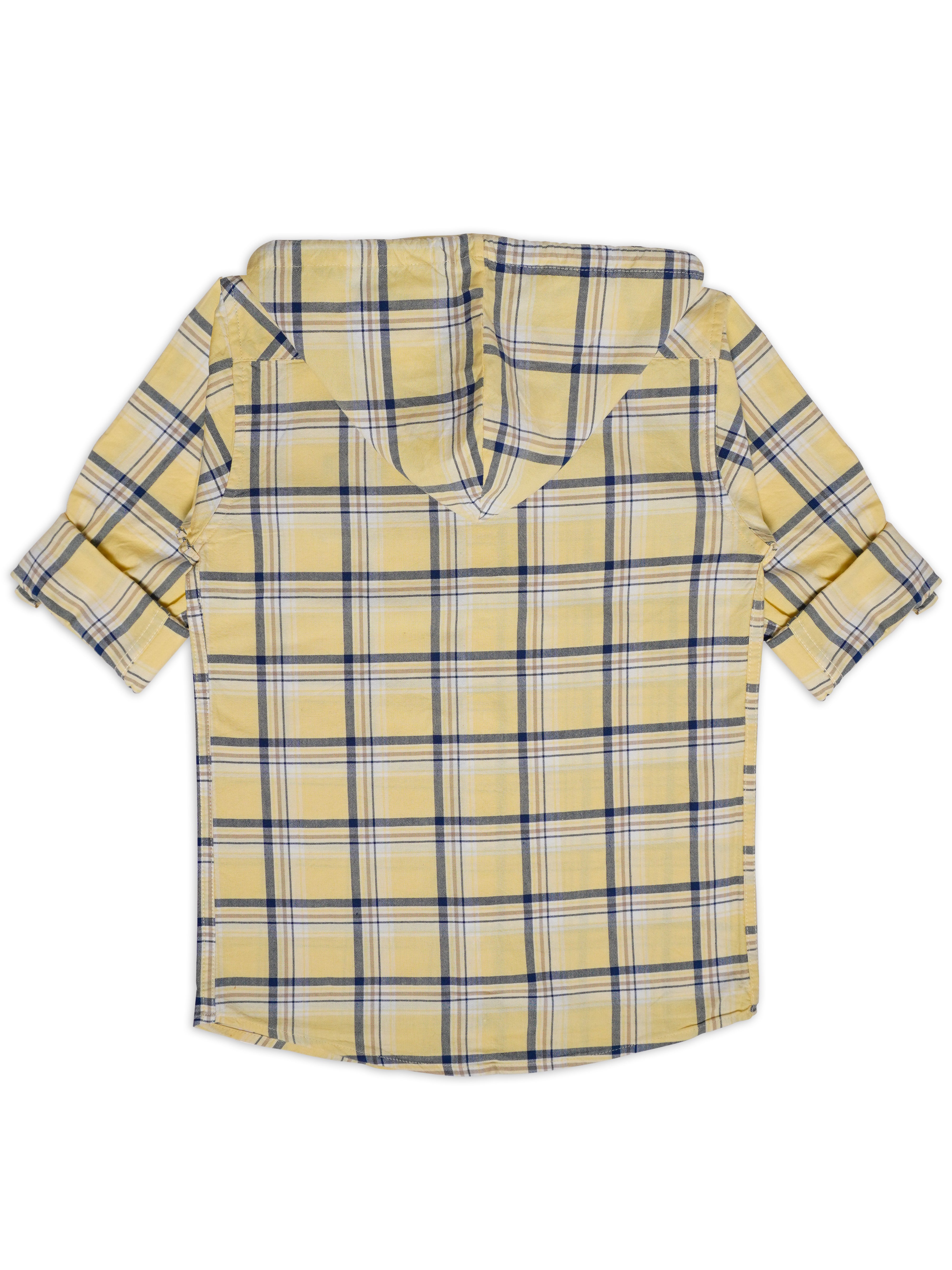 Yellow & navy blue tartan checked opaque casual shirt with t-shirt ,has hooded, button placket, no pocket, long regular sleeves, curved hem