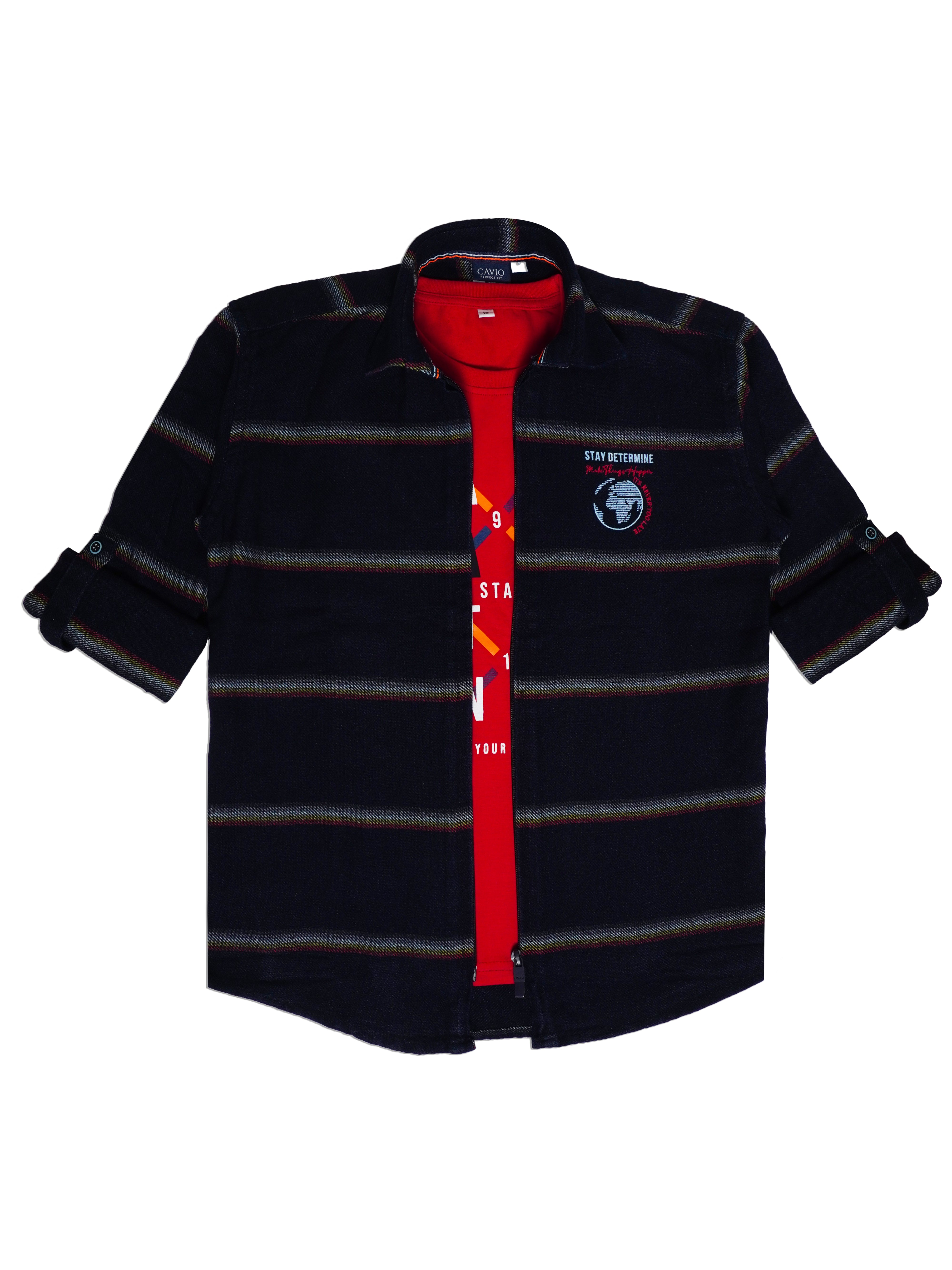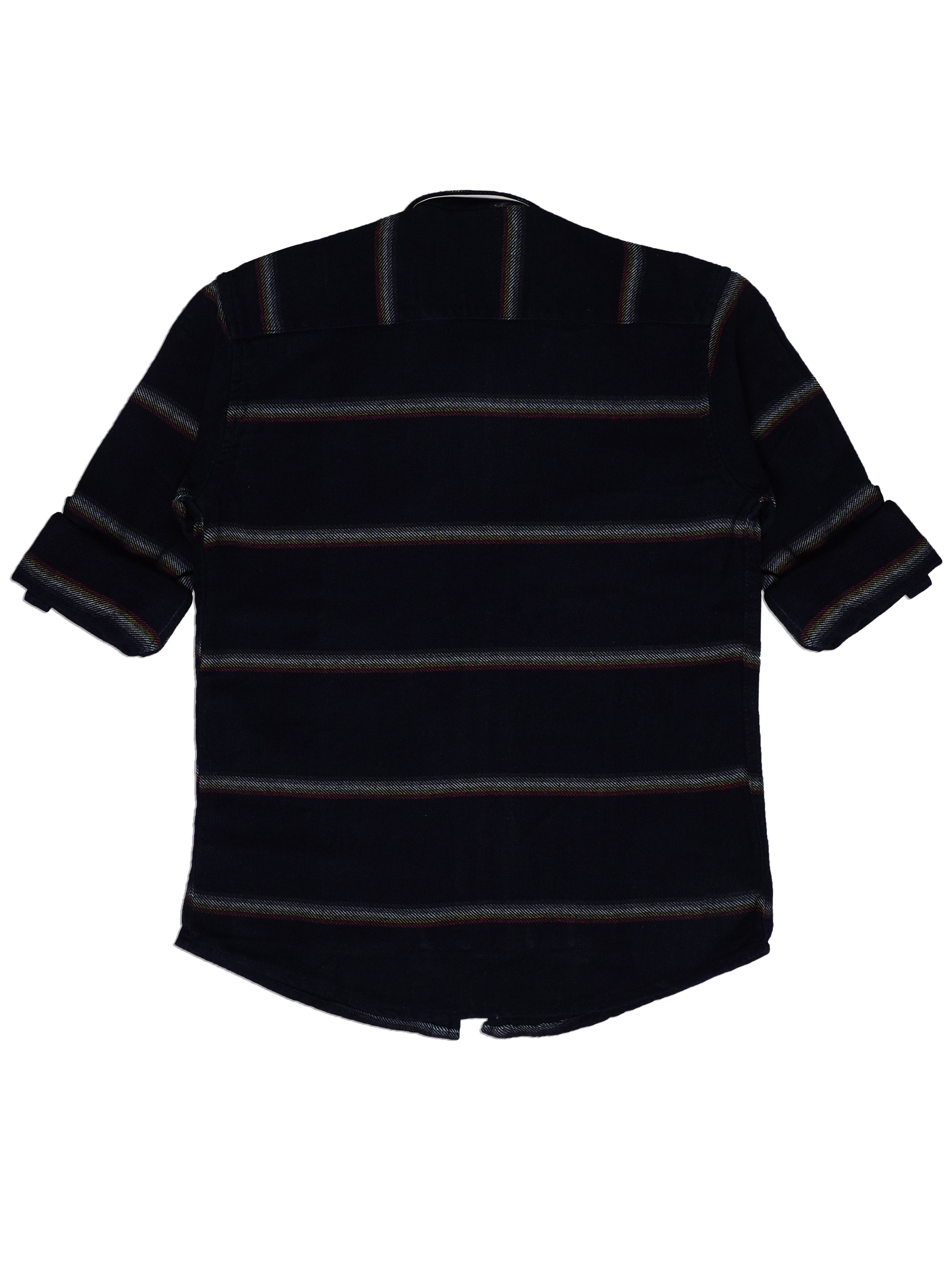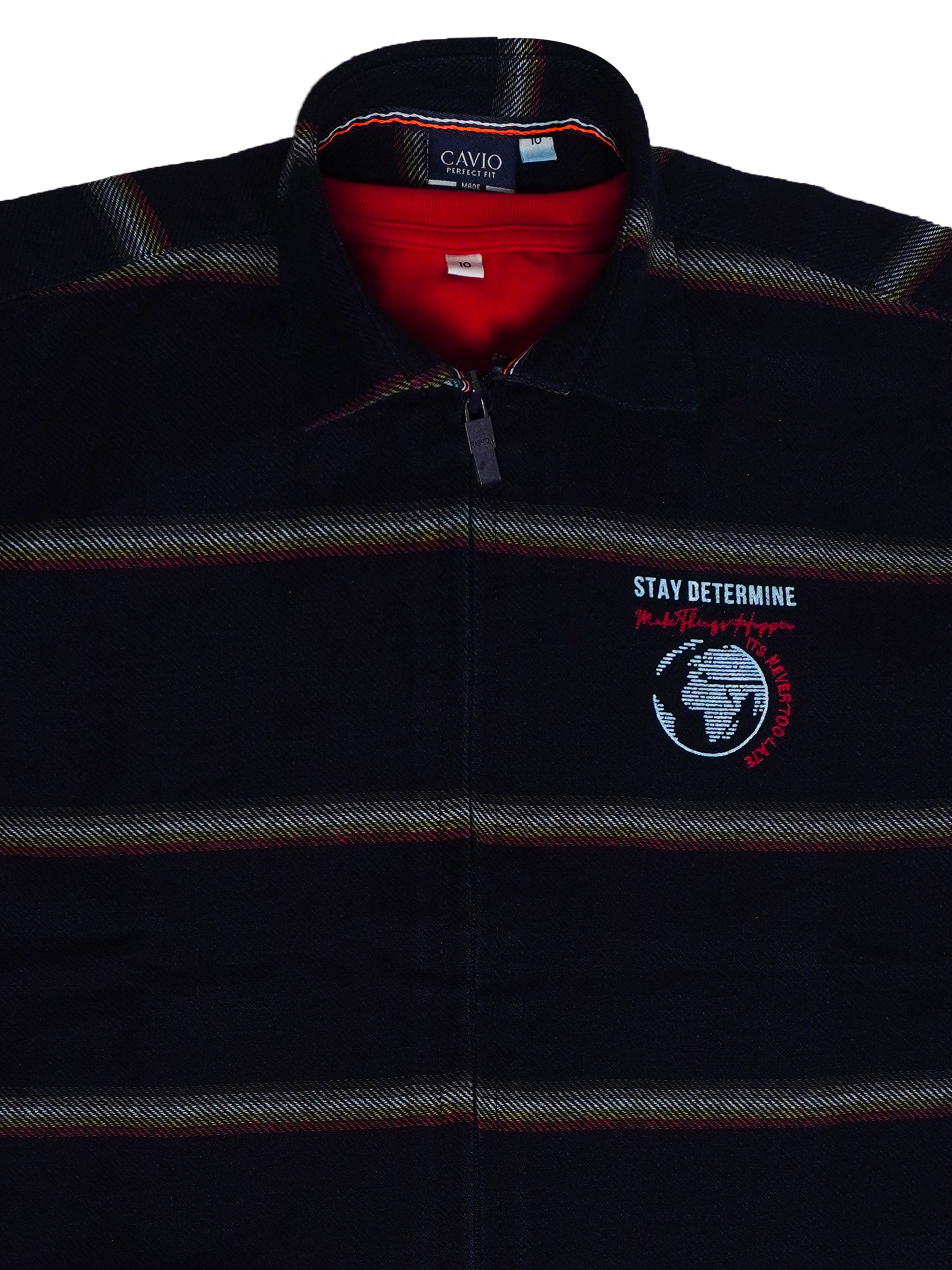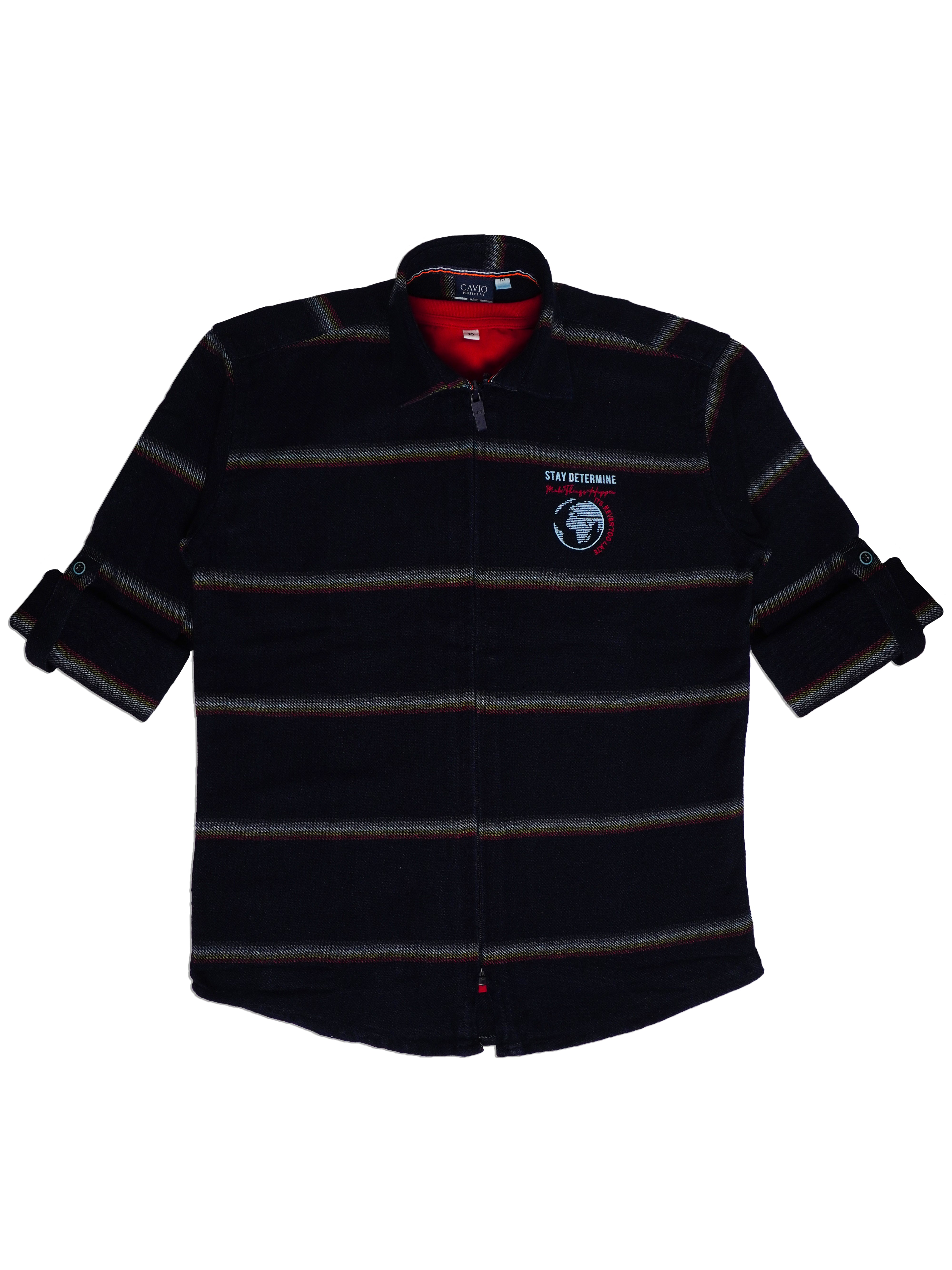 Red horizontal striped Casual shirt ,has a spread collar, zip, long roll-up sleeves, curved hem