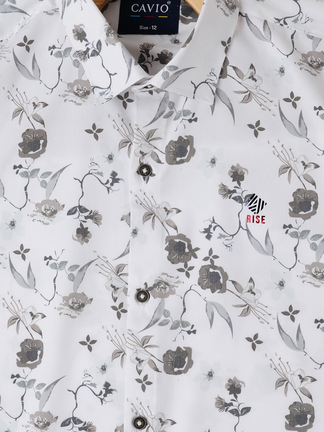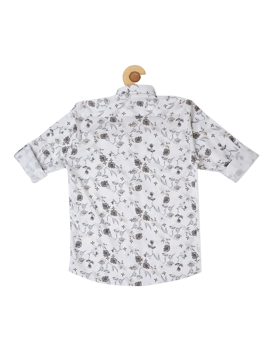 White conversational printed opaque Casual shirt ,has a spread collar, button placket, long roll-up sleeves, curved hem