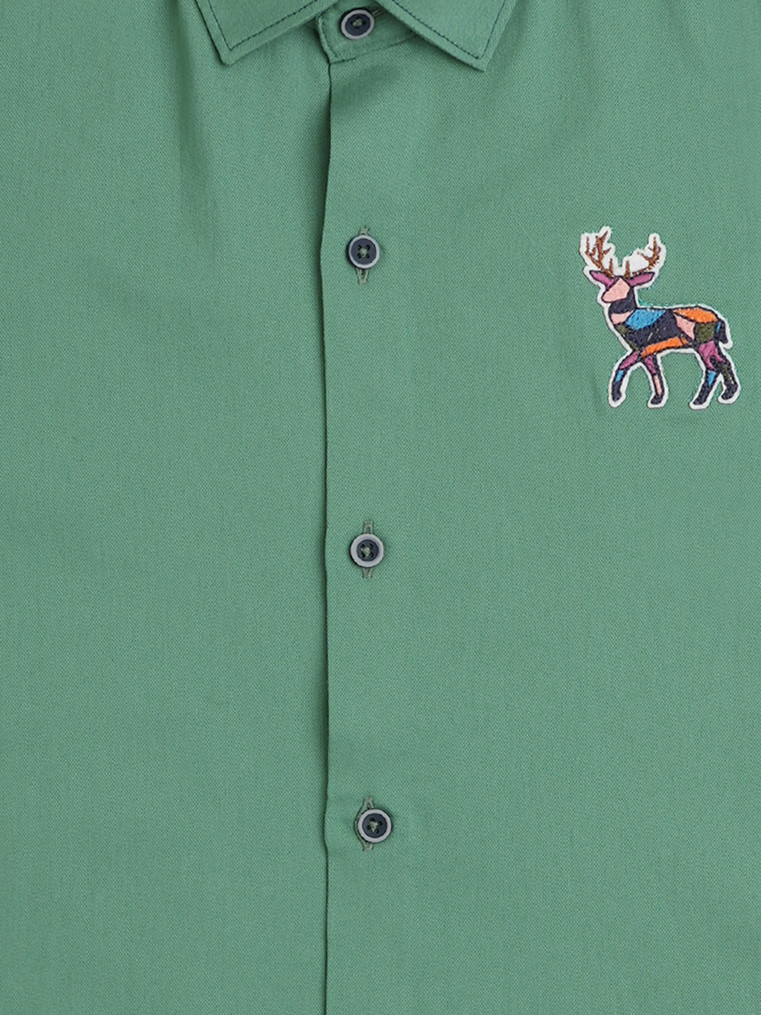 Green solid Casual shirt ,has a spread collar, button placket, long roll-up sleeves, curved hem