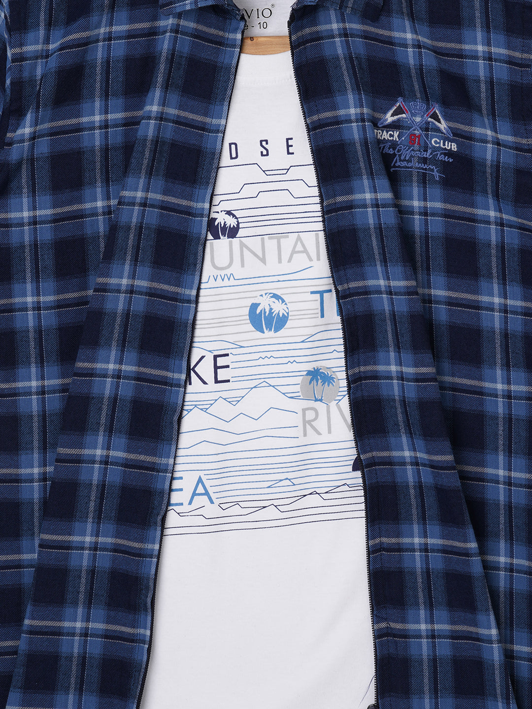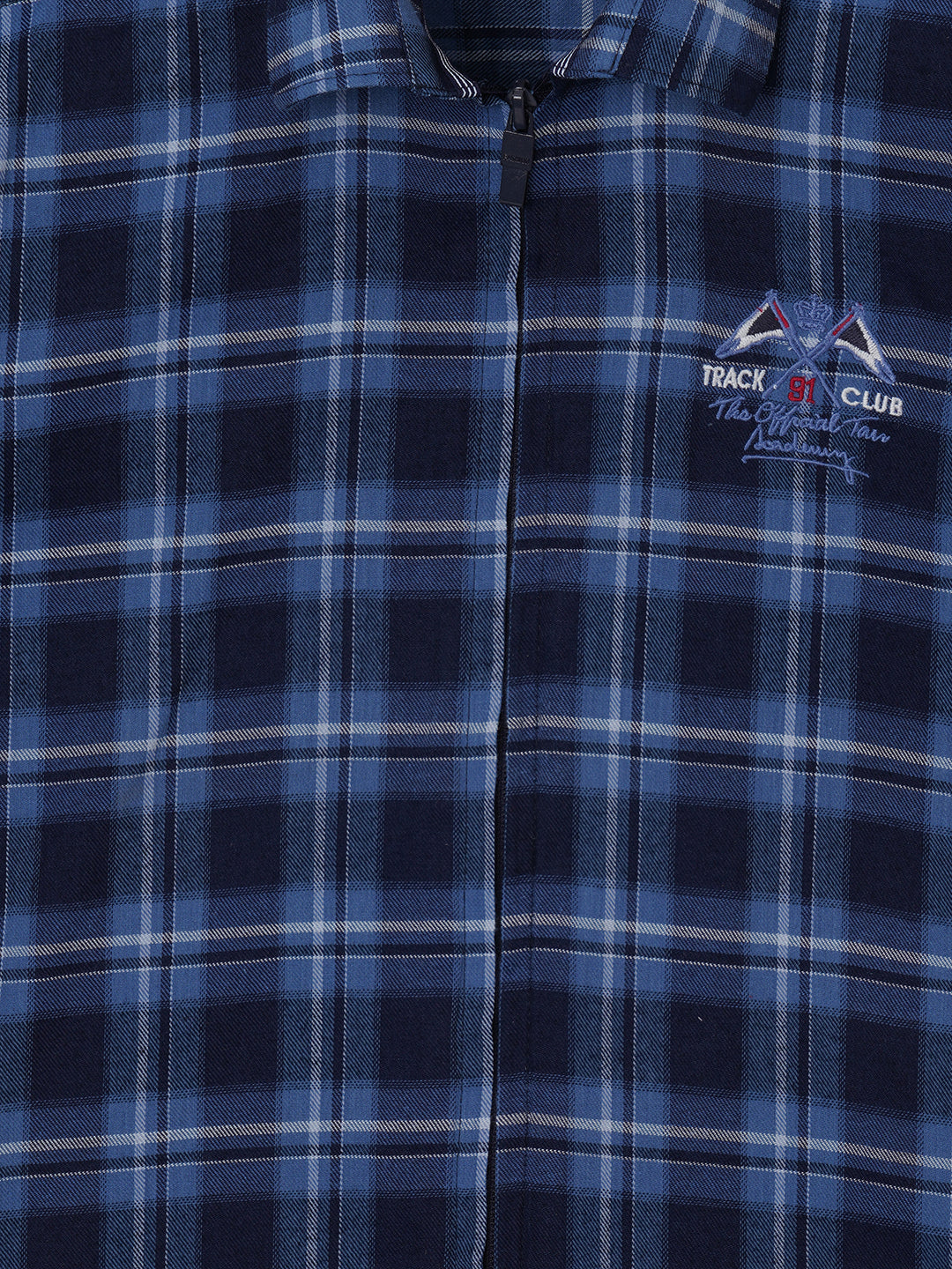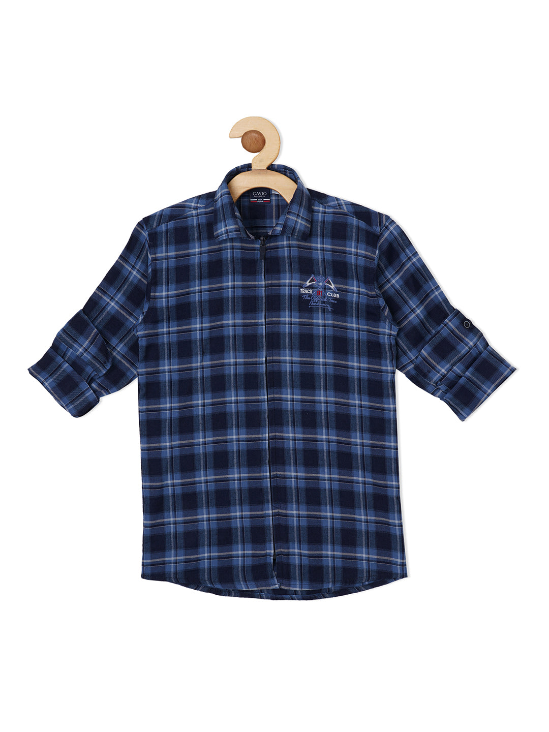 Tartan checked opaque Casual shirt ,has a spread collar, zip, na pocket, three-quarter roll-up sleeves, curved hem