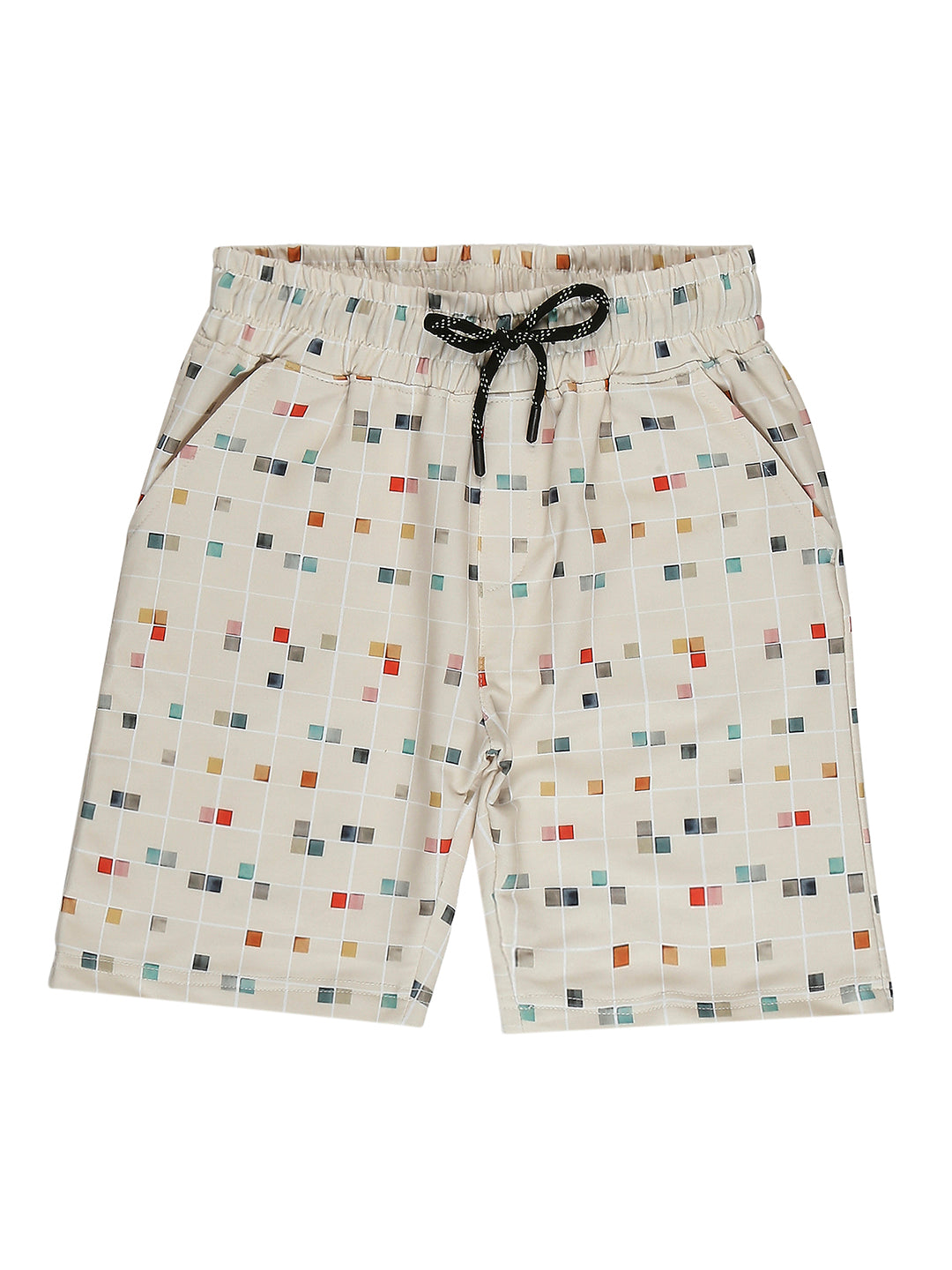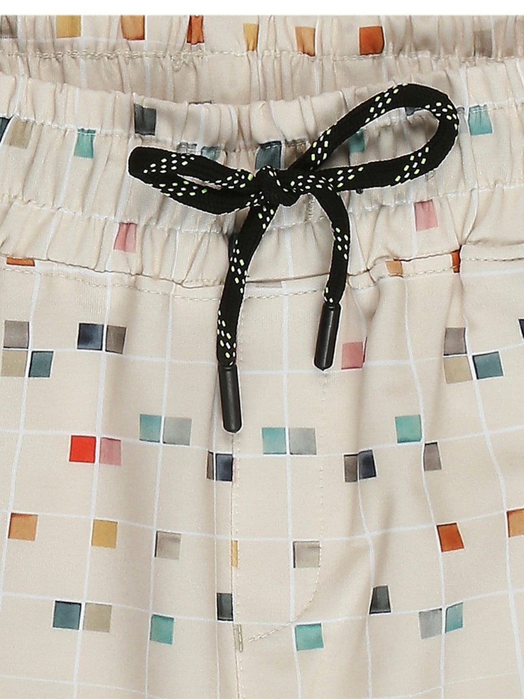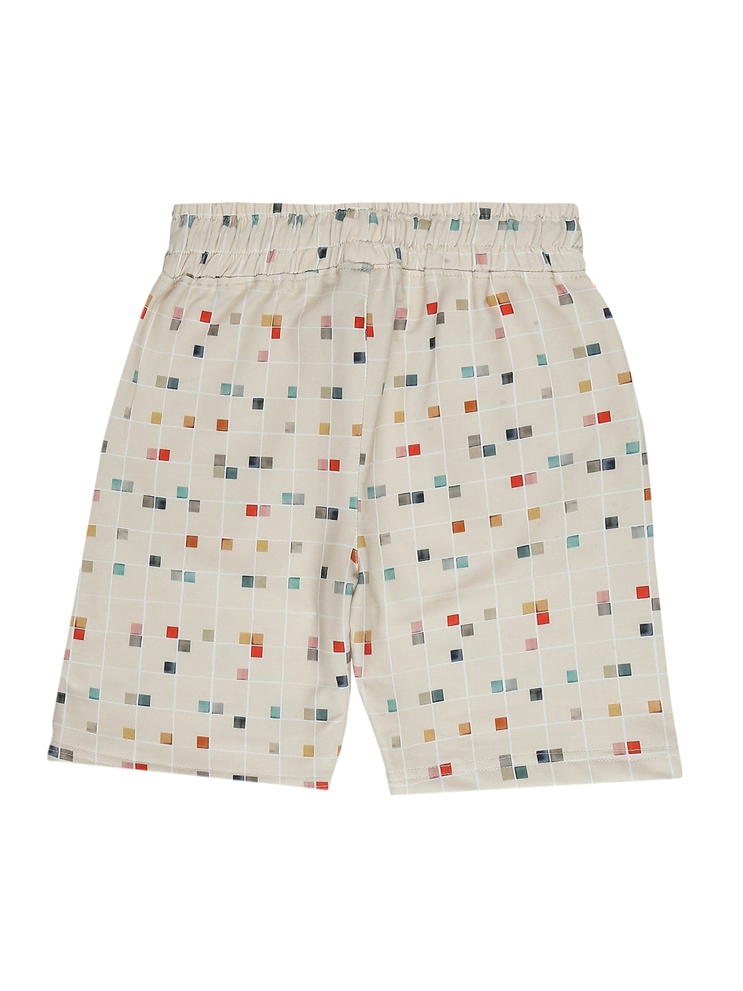 Cream-coloured and red geometric printed Shorts ,has a drawstring closure