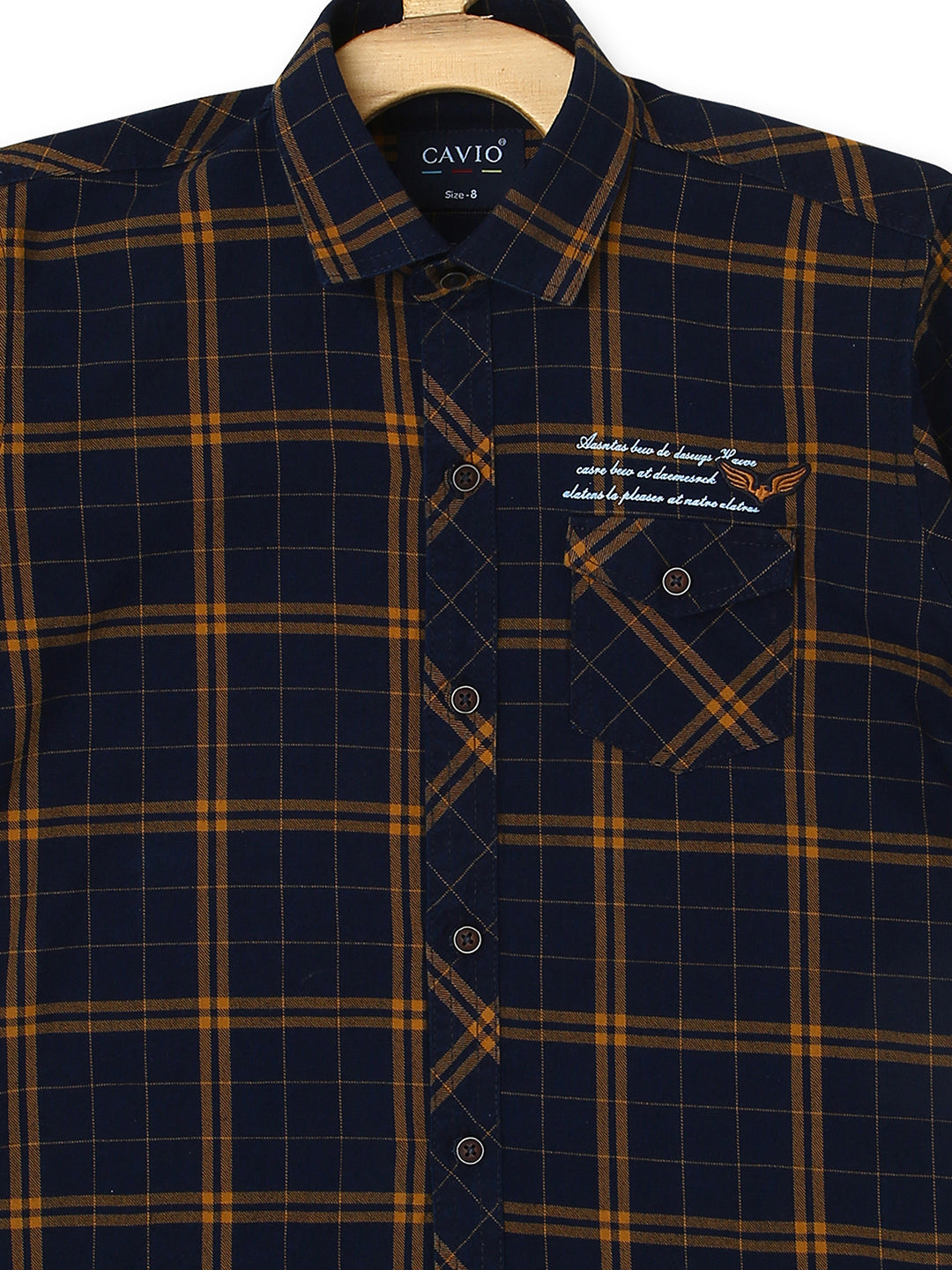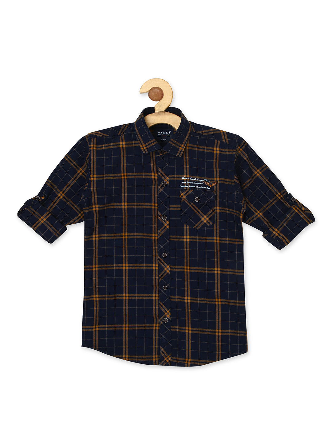 Gold-toned other checks checked opaque Casual shirt ,has a spread collar, button placket, na pocket, long roll-up sleeves, curved hem
