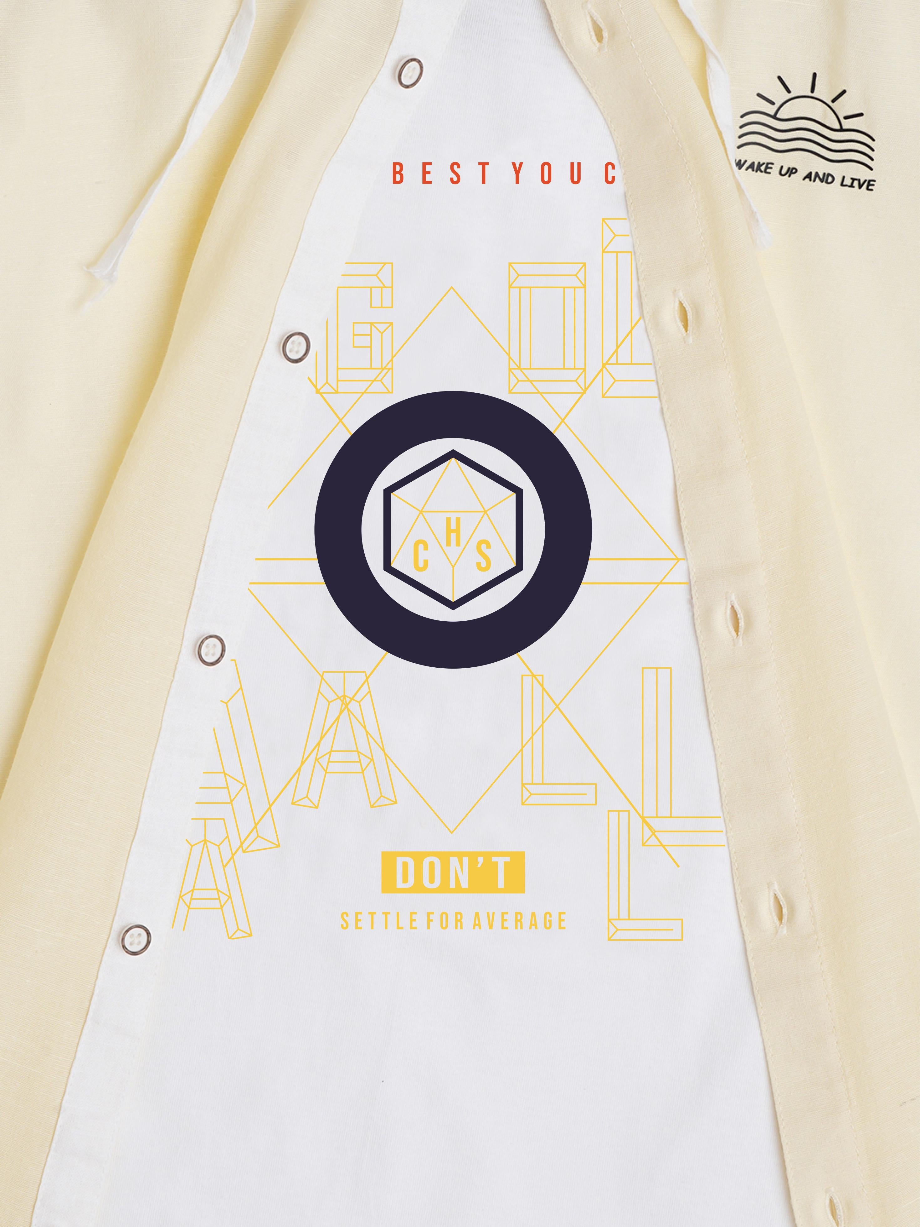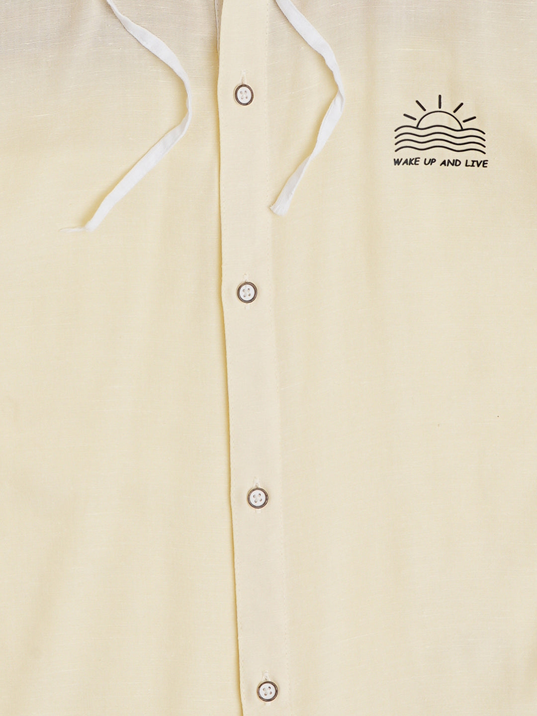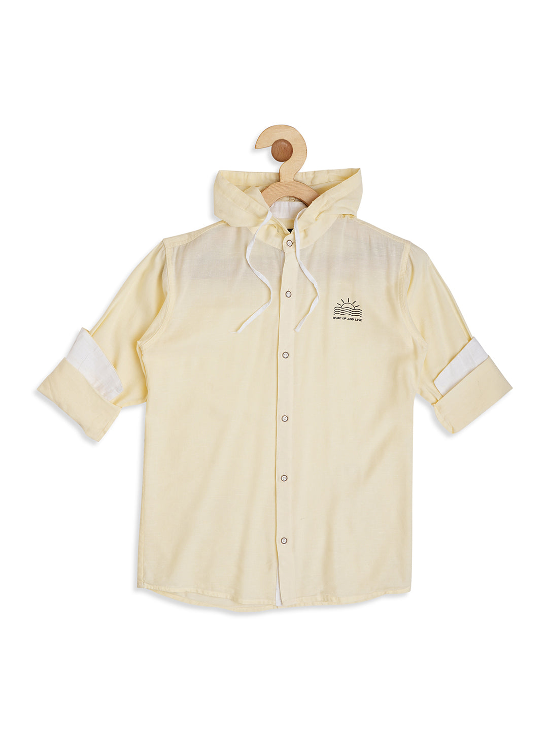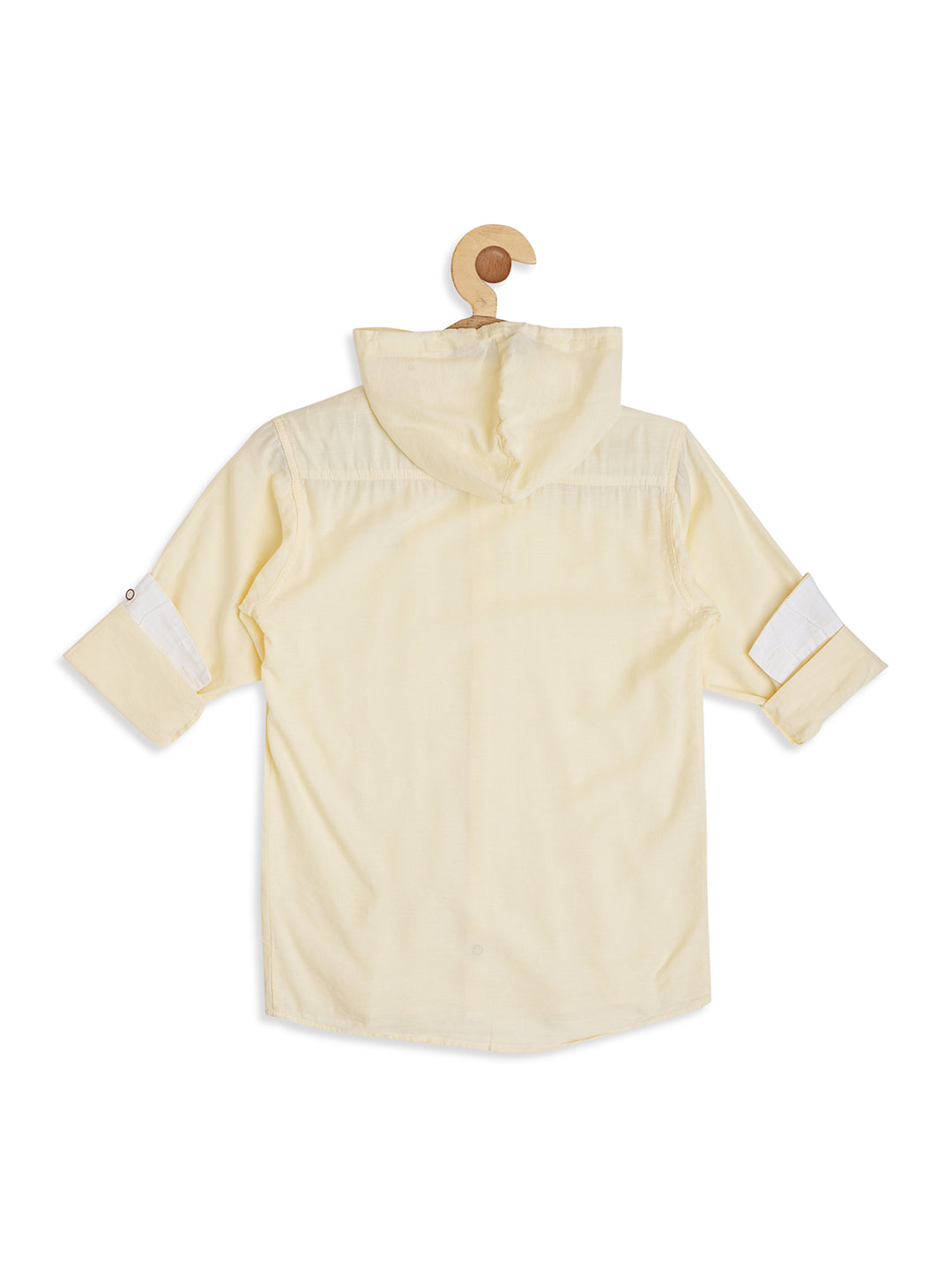 Yellow solid opaque Casual shirt ,has a hooded, button placket, long roll-up sleeves, curved hem