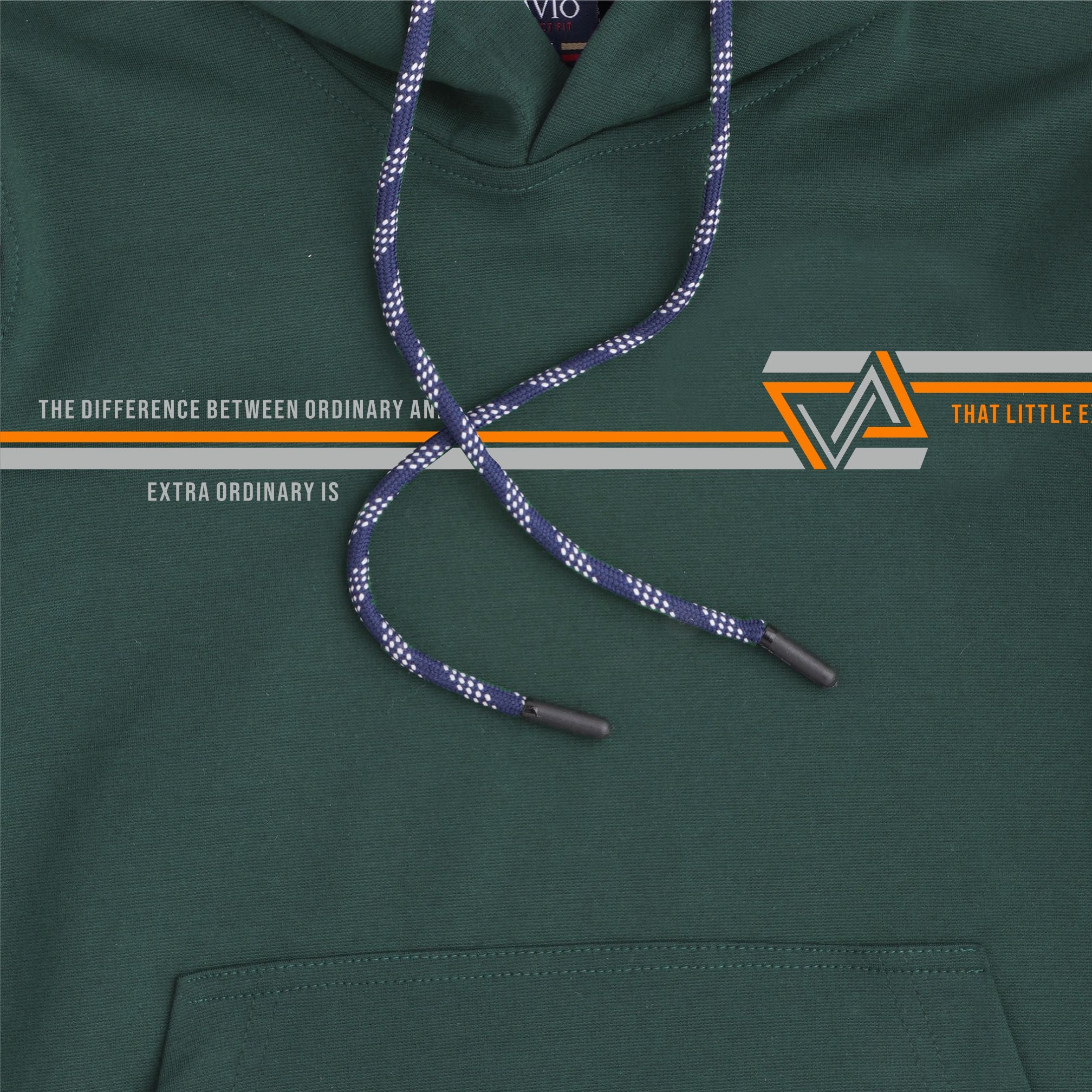 Green and grey solid T-shirt ,has a hooded, long sleeves