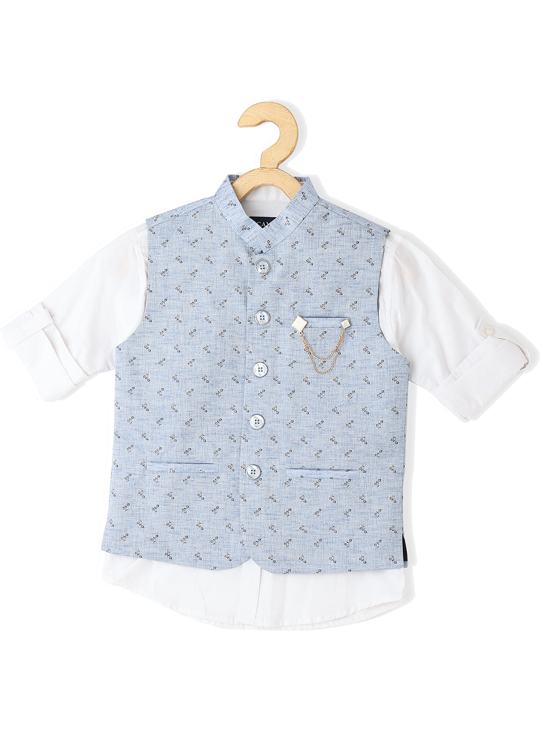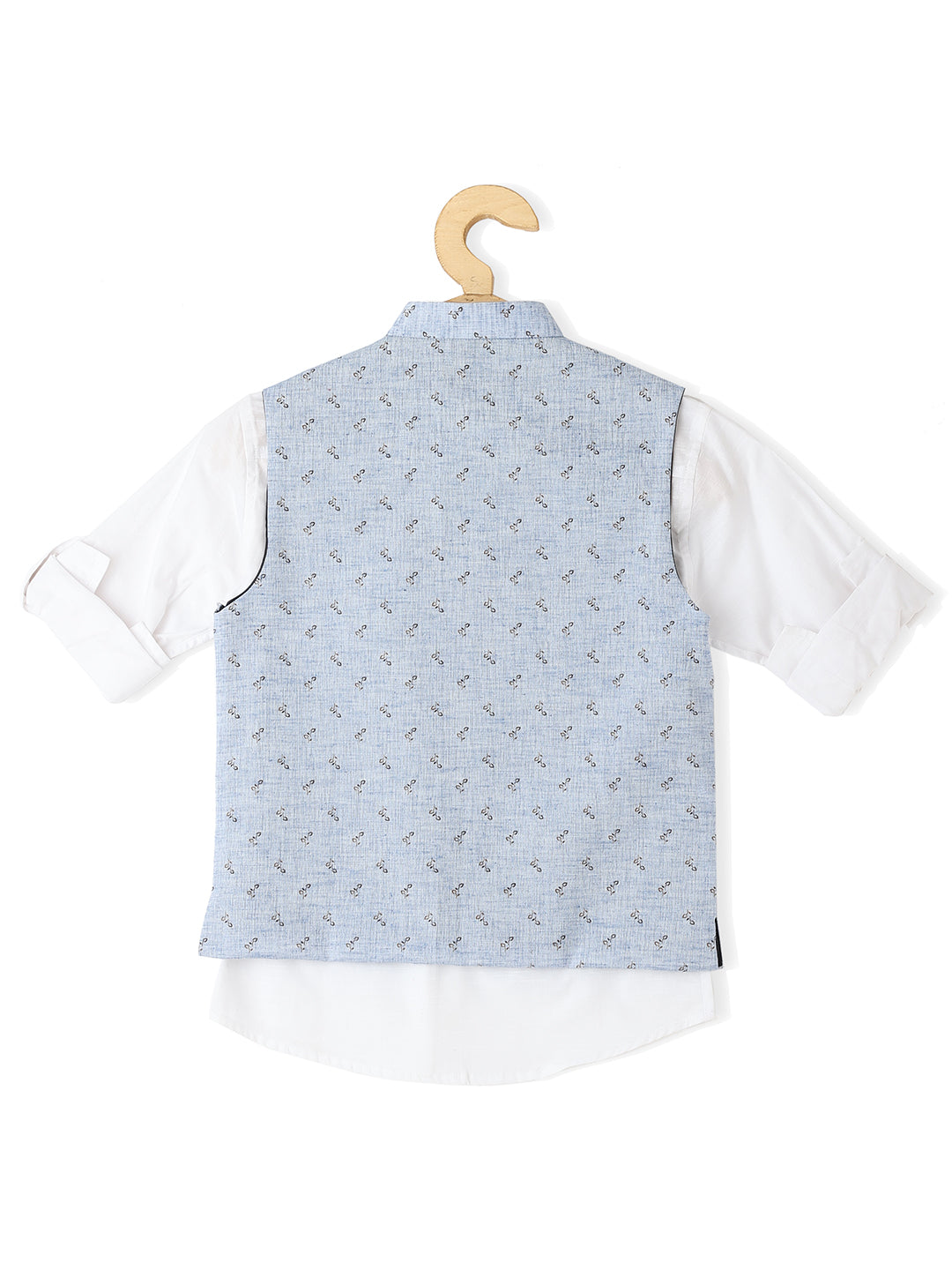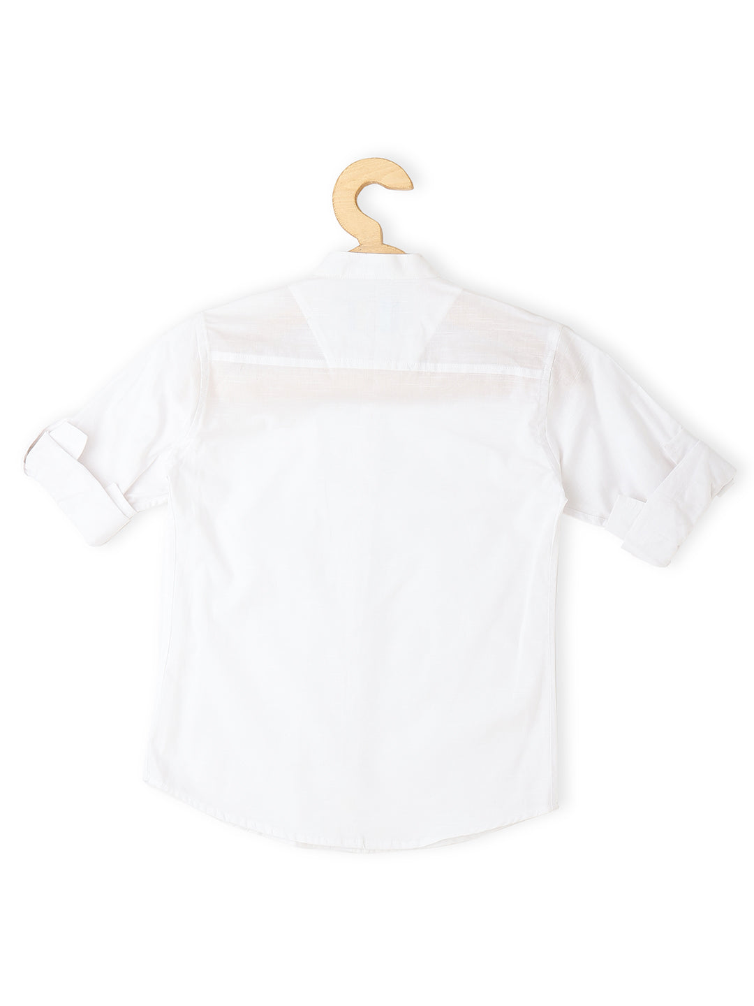 Comes with a White solid shirt, has a mandarin collar, button placket, long regular sleeves, curved hem