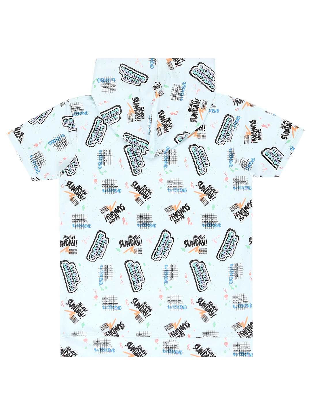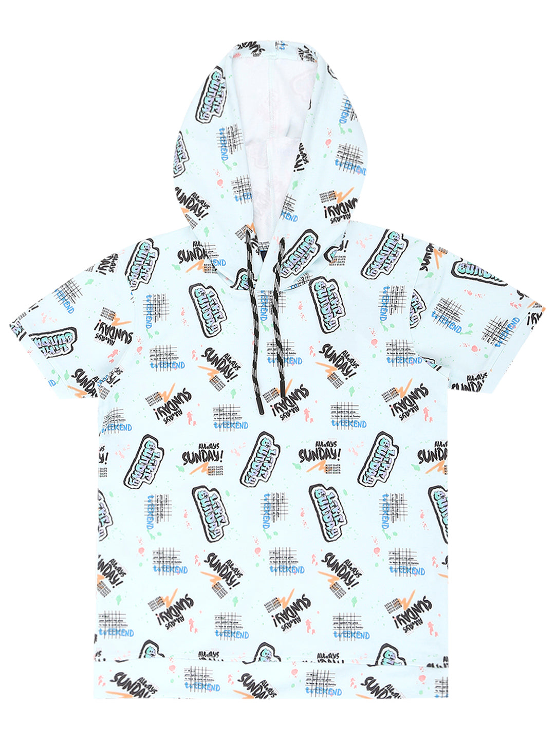 Blue and black printed T-shirt ,has a hooded, short sleeves