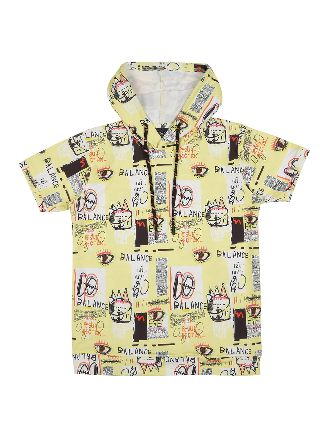 Blue and green printed T-shirt ,has a hooded, short sleeves