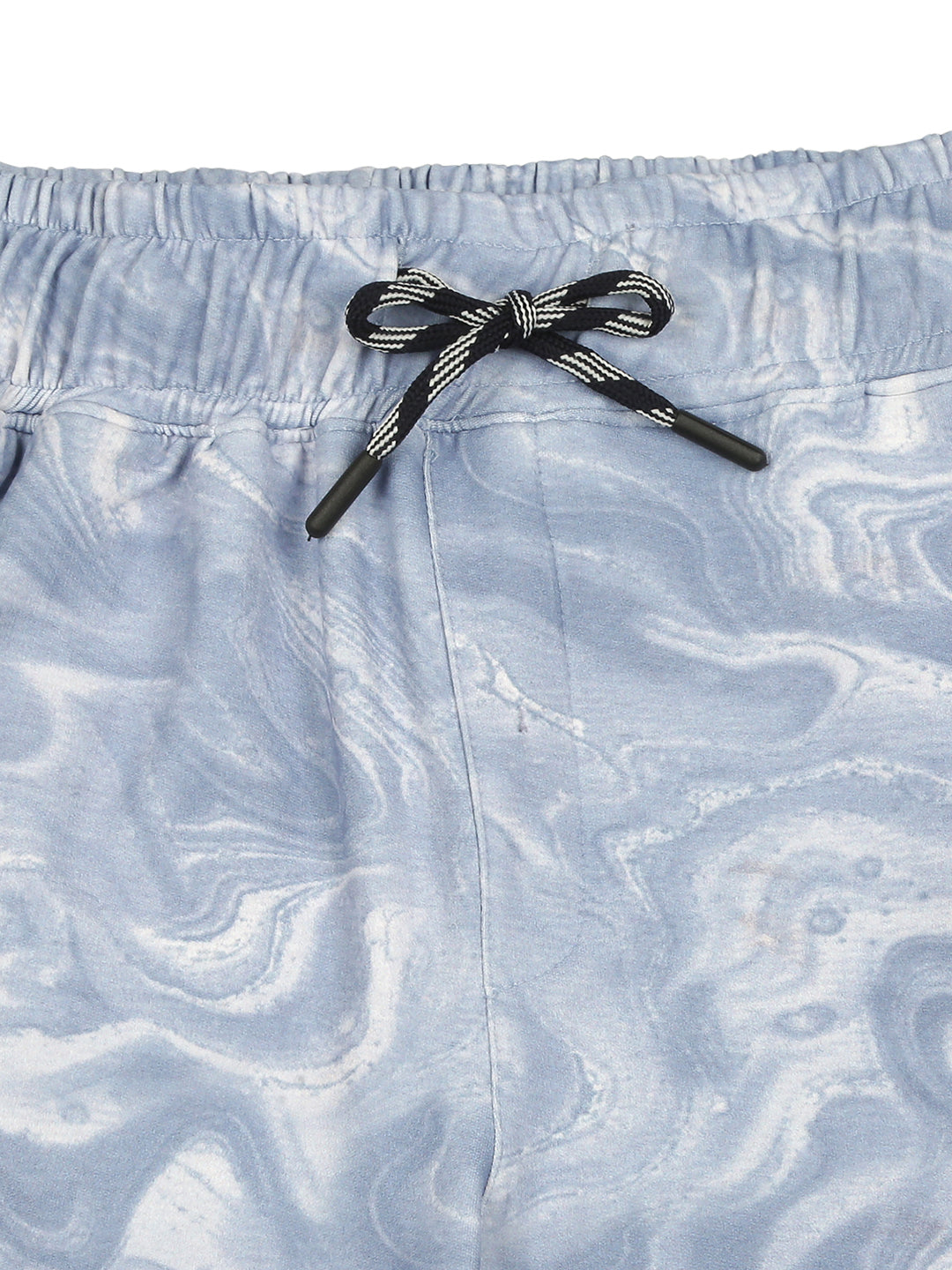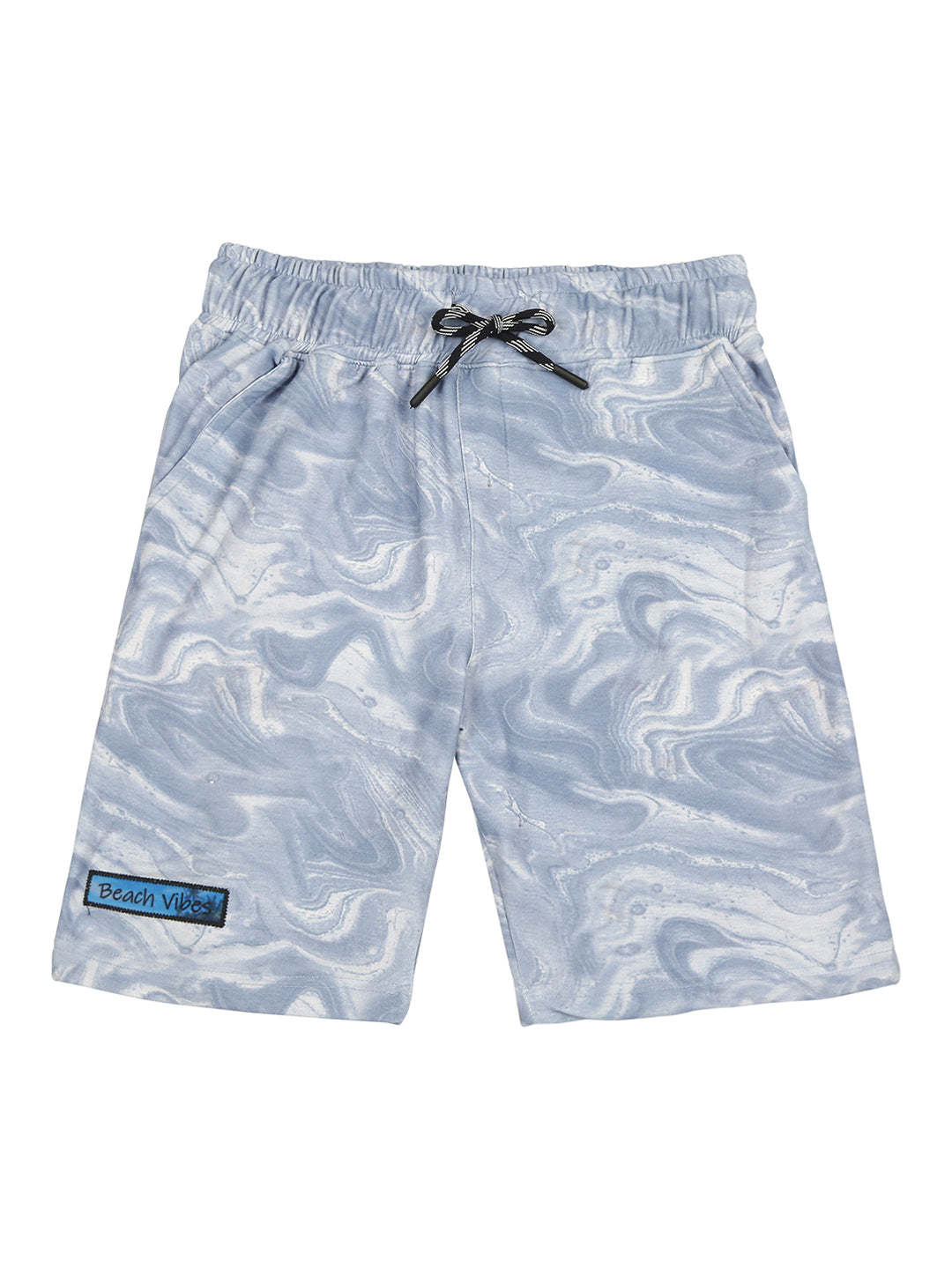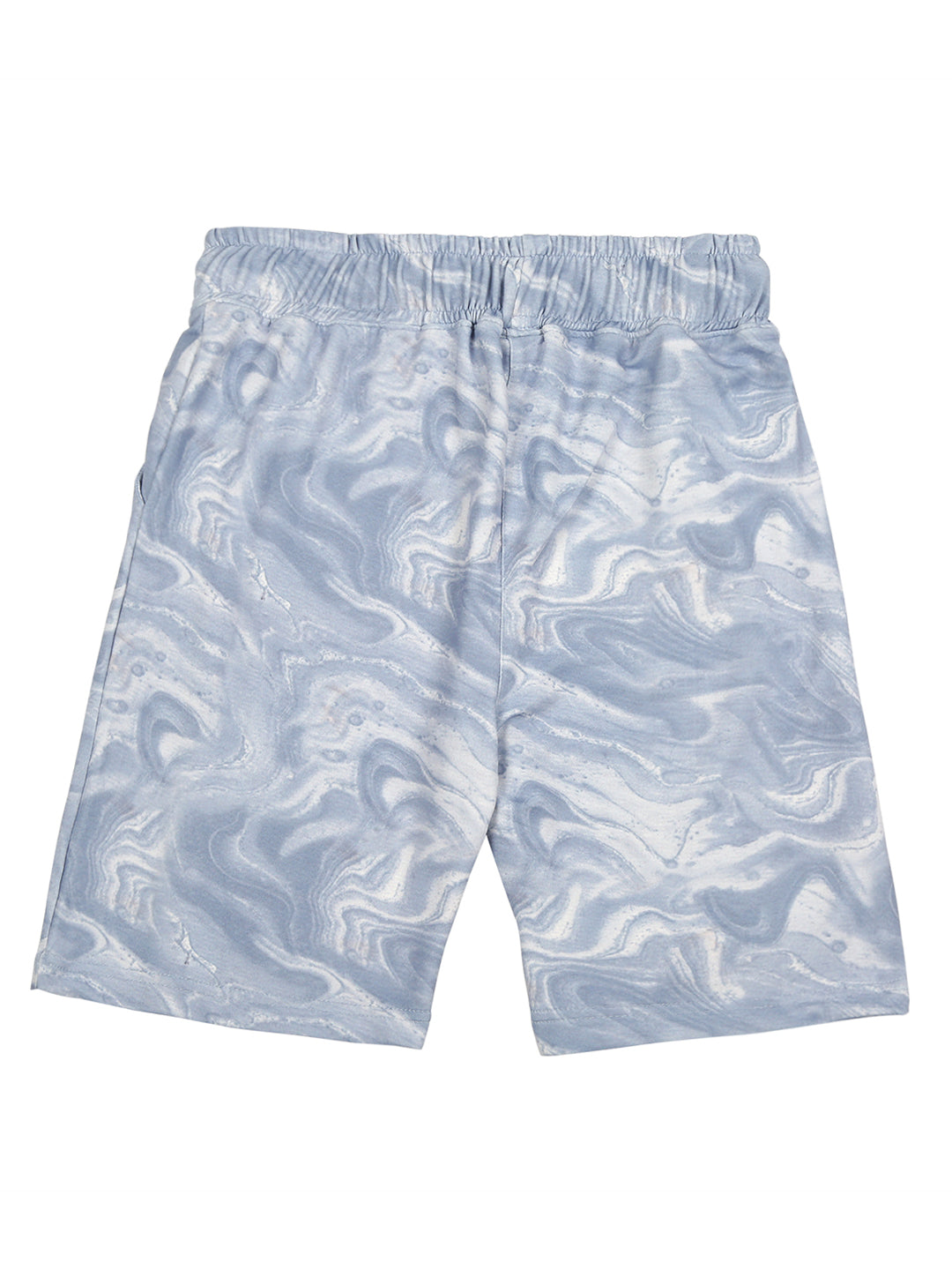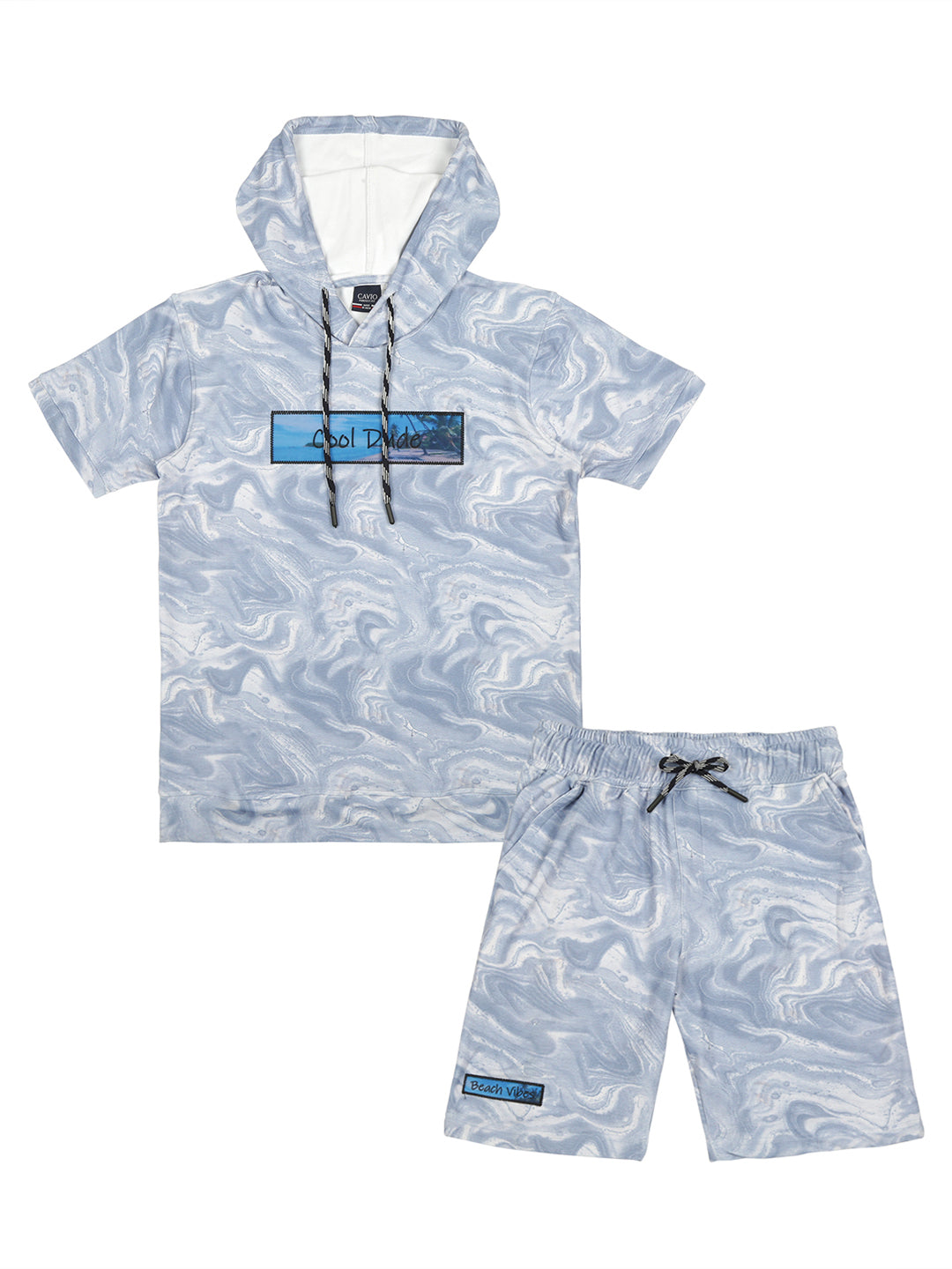 White and blue printed T-shirt ,has a hooded, short sleeves