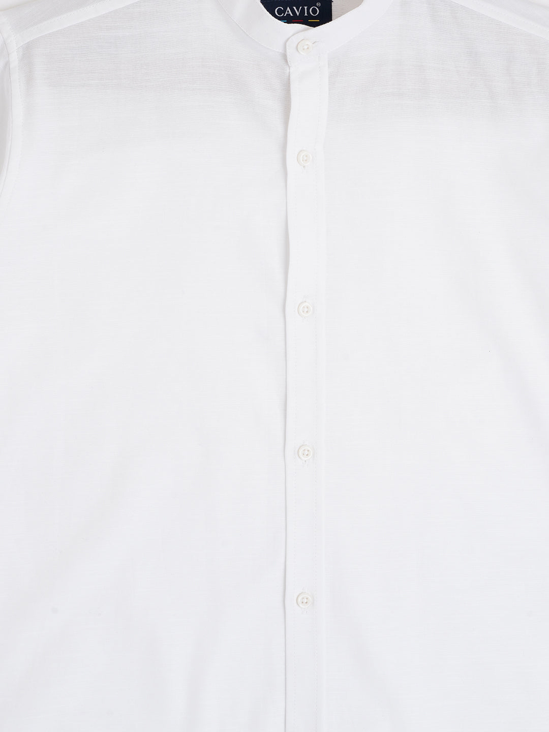 Soild shirt ,has mandarin collar , a full button placket ,long sleees .