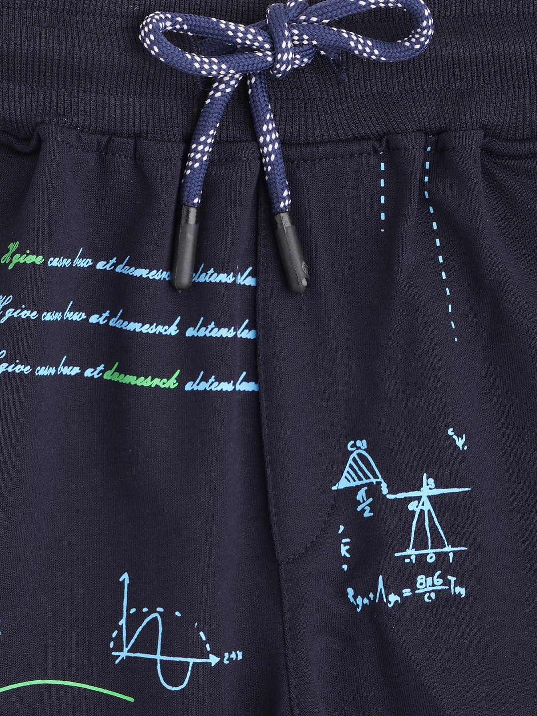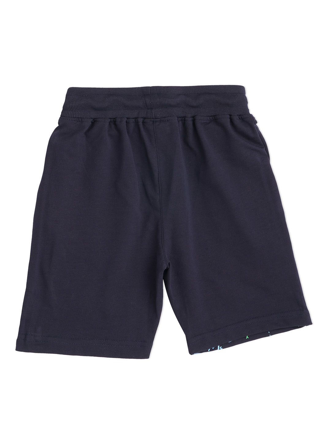 Navy blue and green printed Shorts, has a drawstring closure