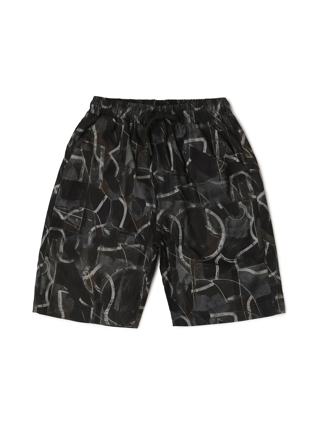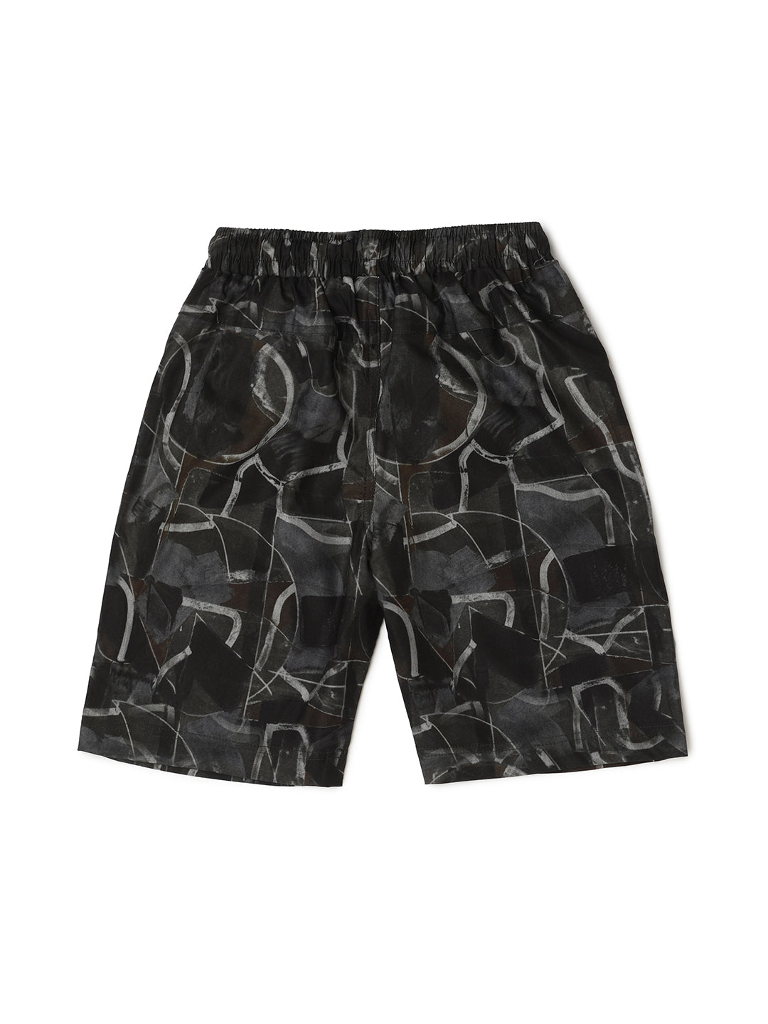 Black, grey and green abstract printed shorts ,has a slip-on closure