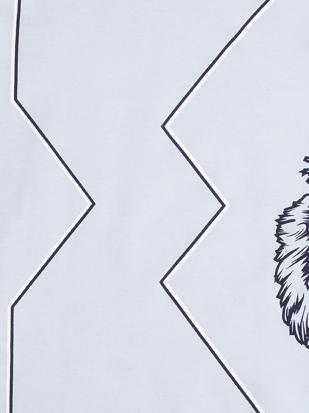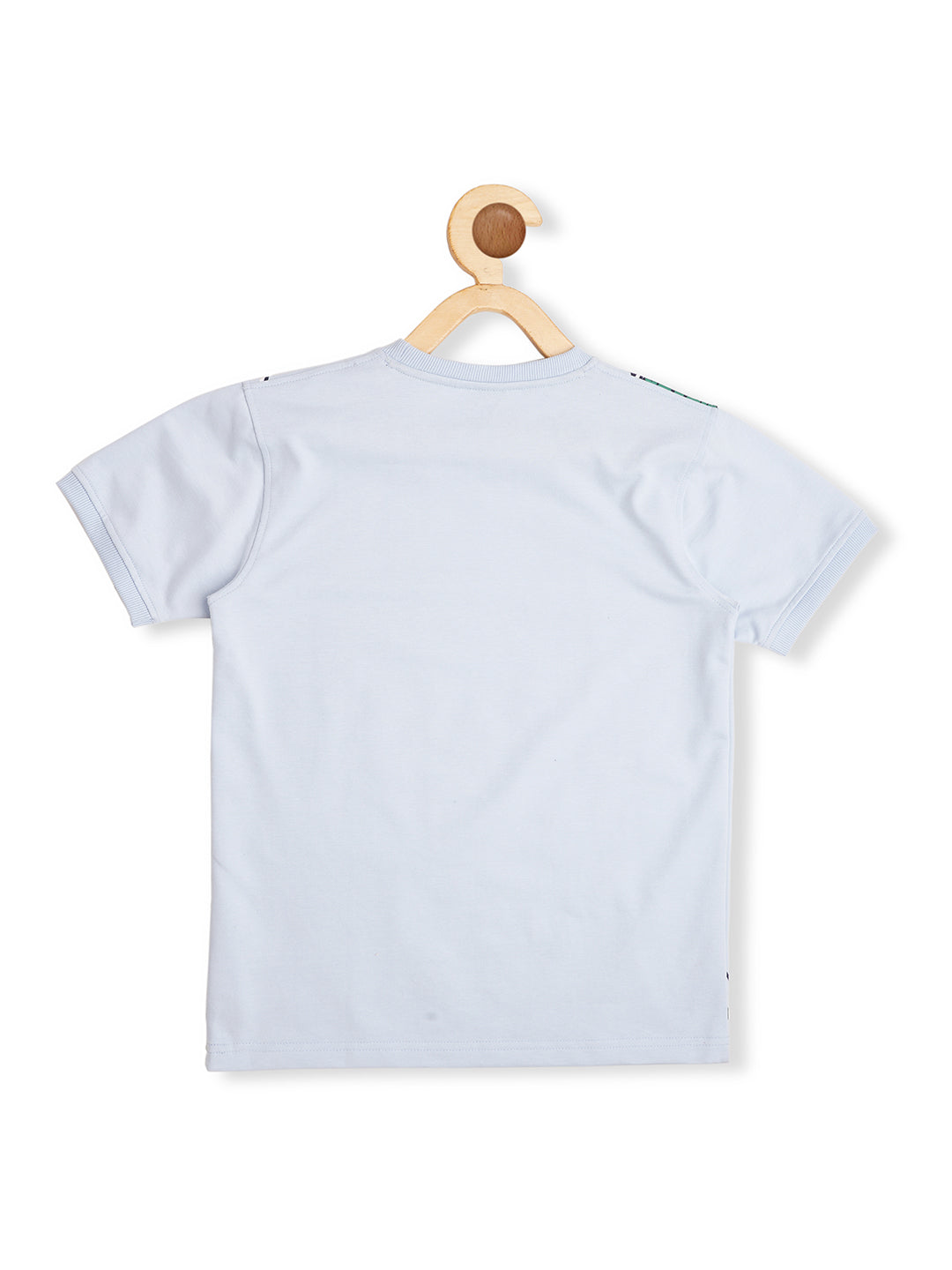 Blue and green printed T-shirt, has a round neck, short sleeves