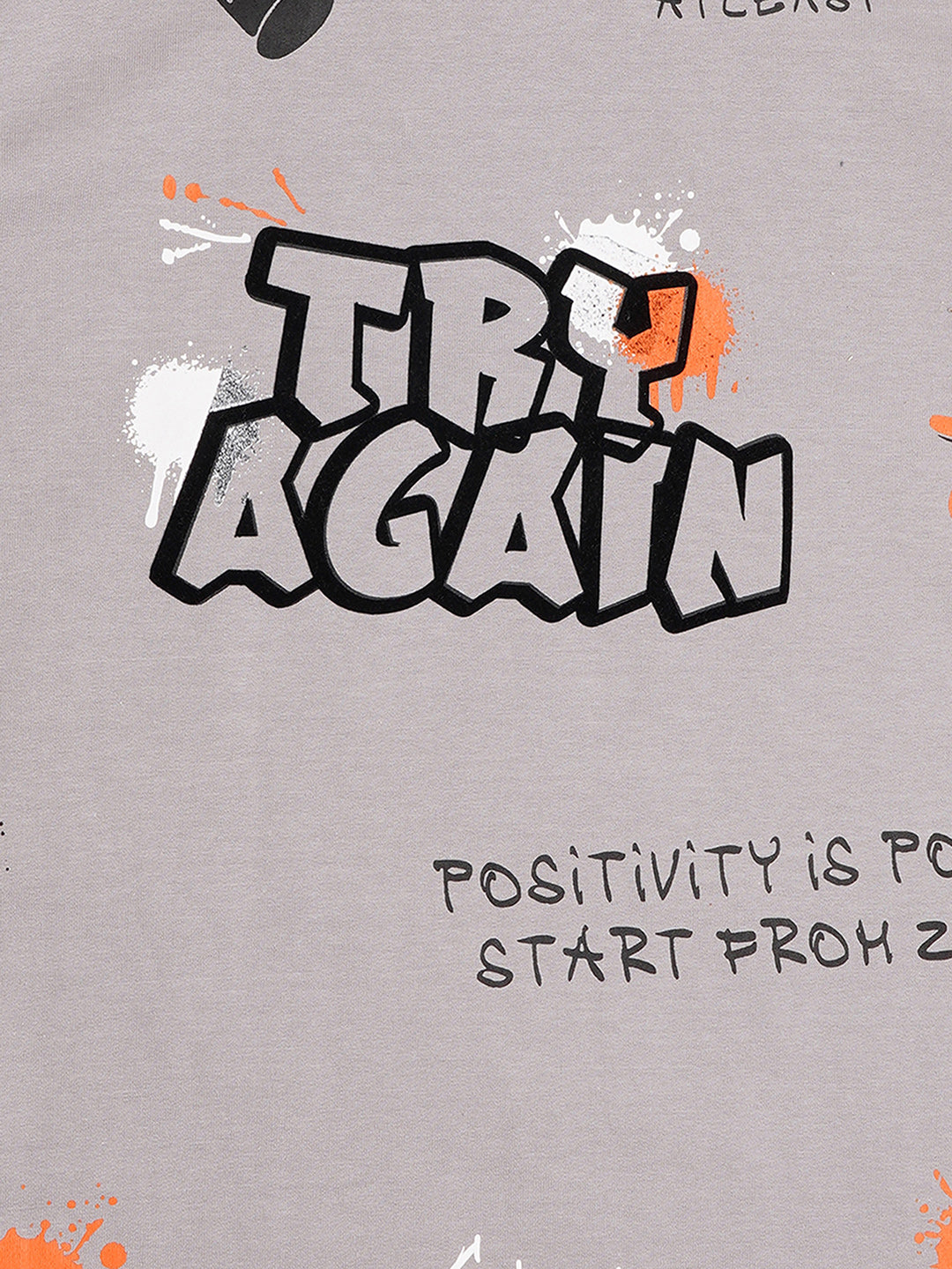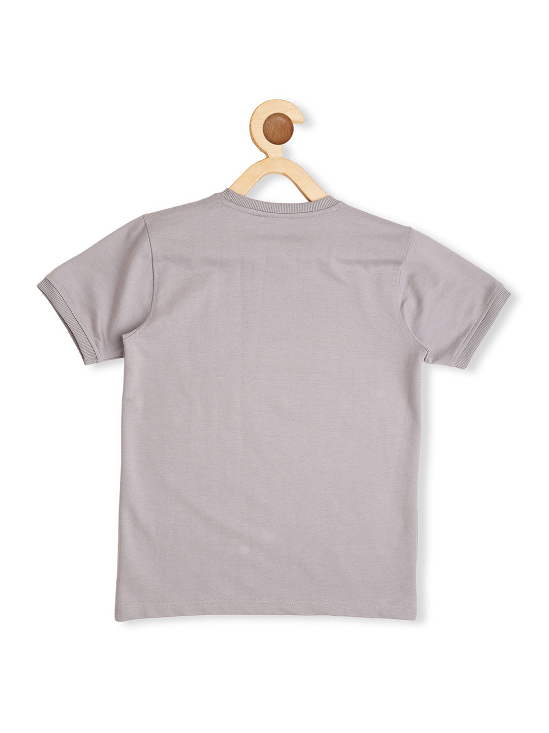 Grey,white and black printed T-shirt ,has a round neck, short sleeves