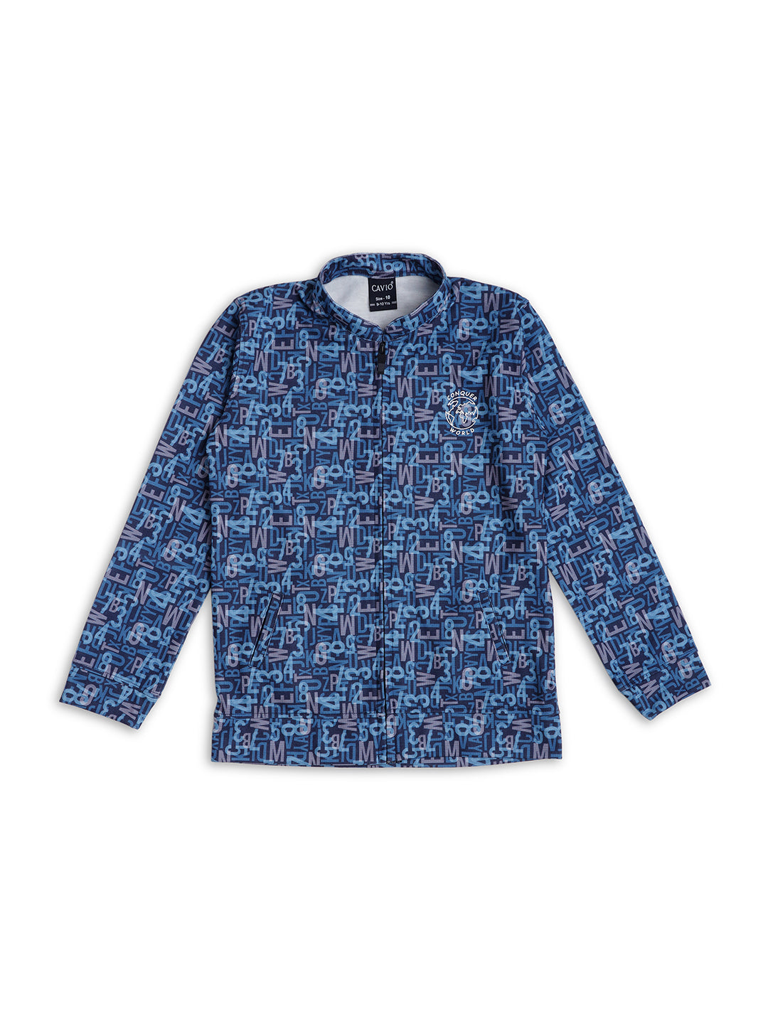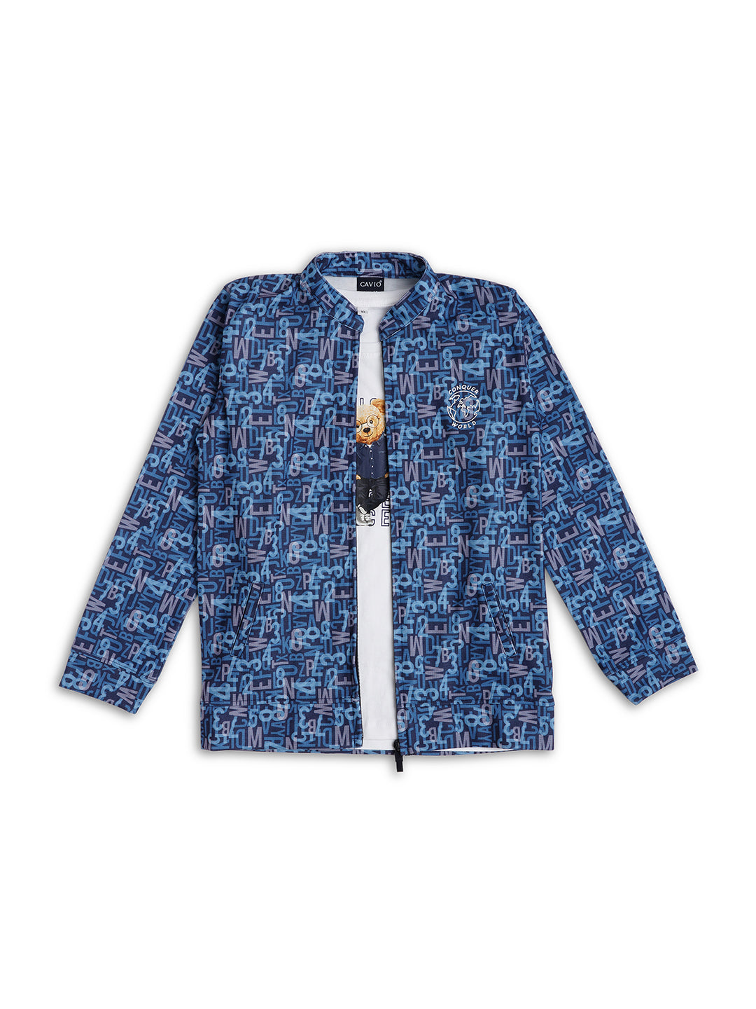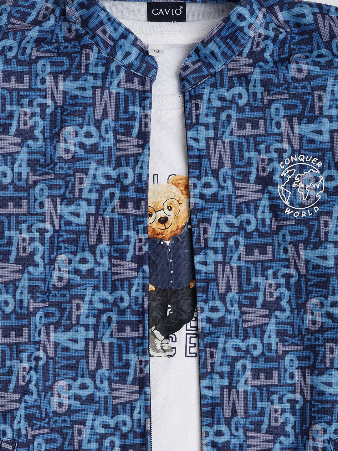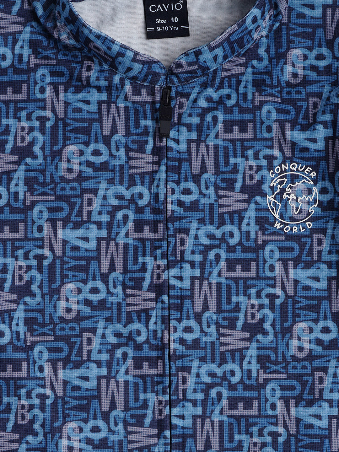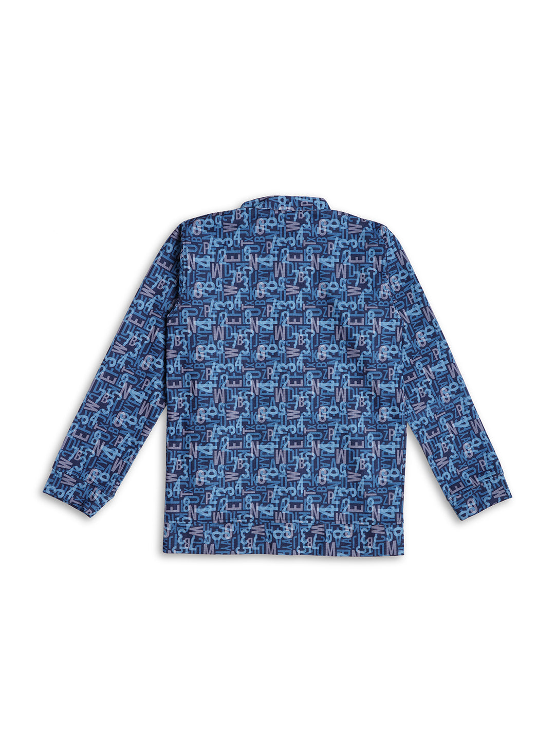 Blue and white printed T-shirt and Shirt ,has a mandarin collar, long sleeves