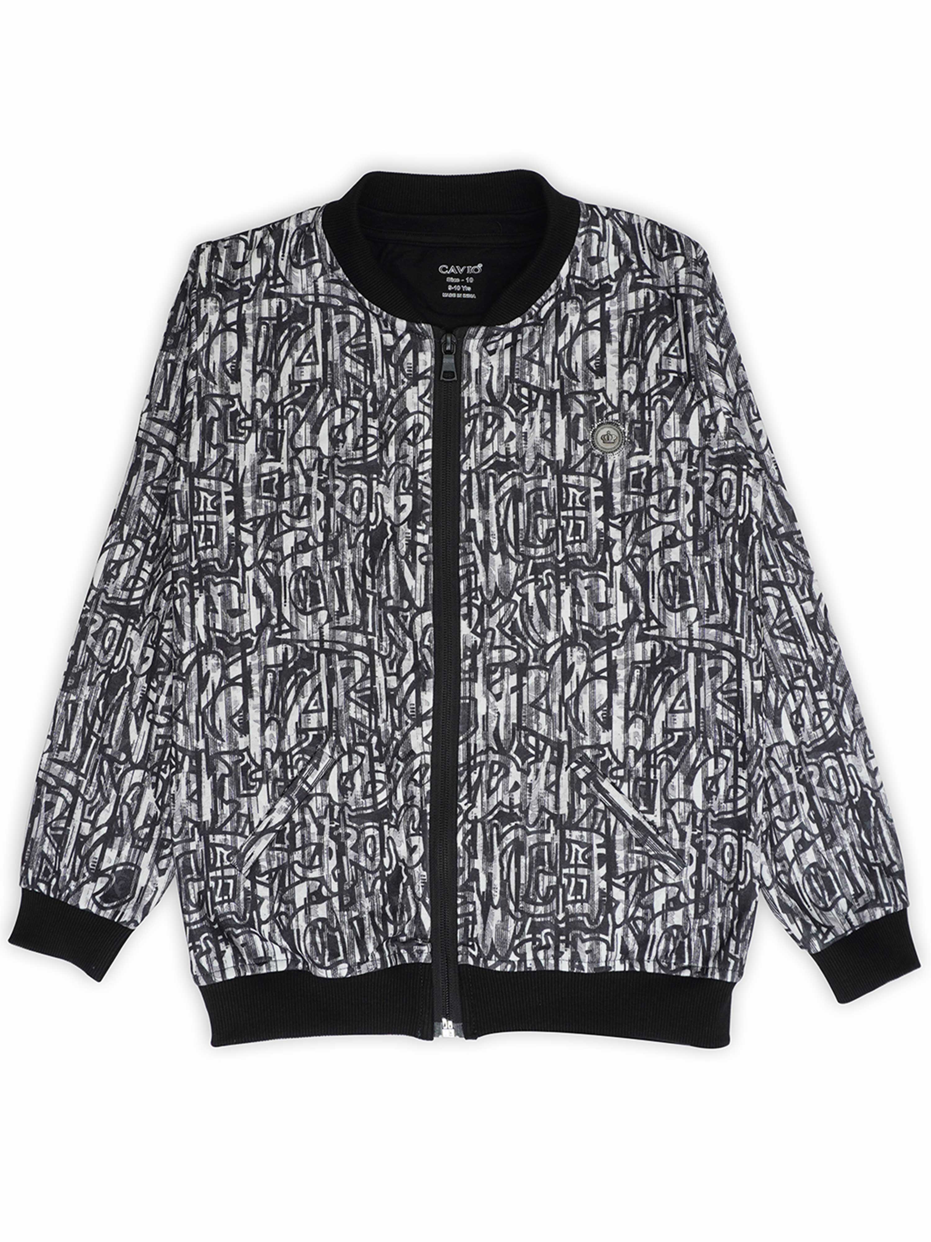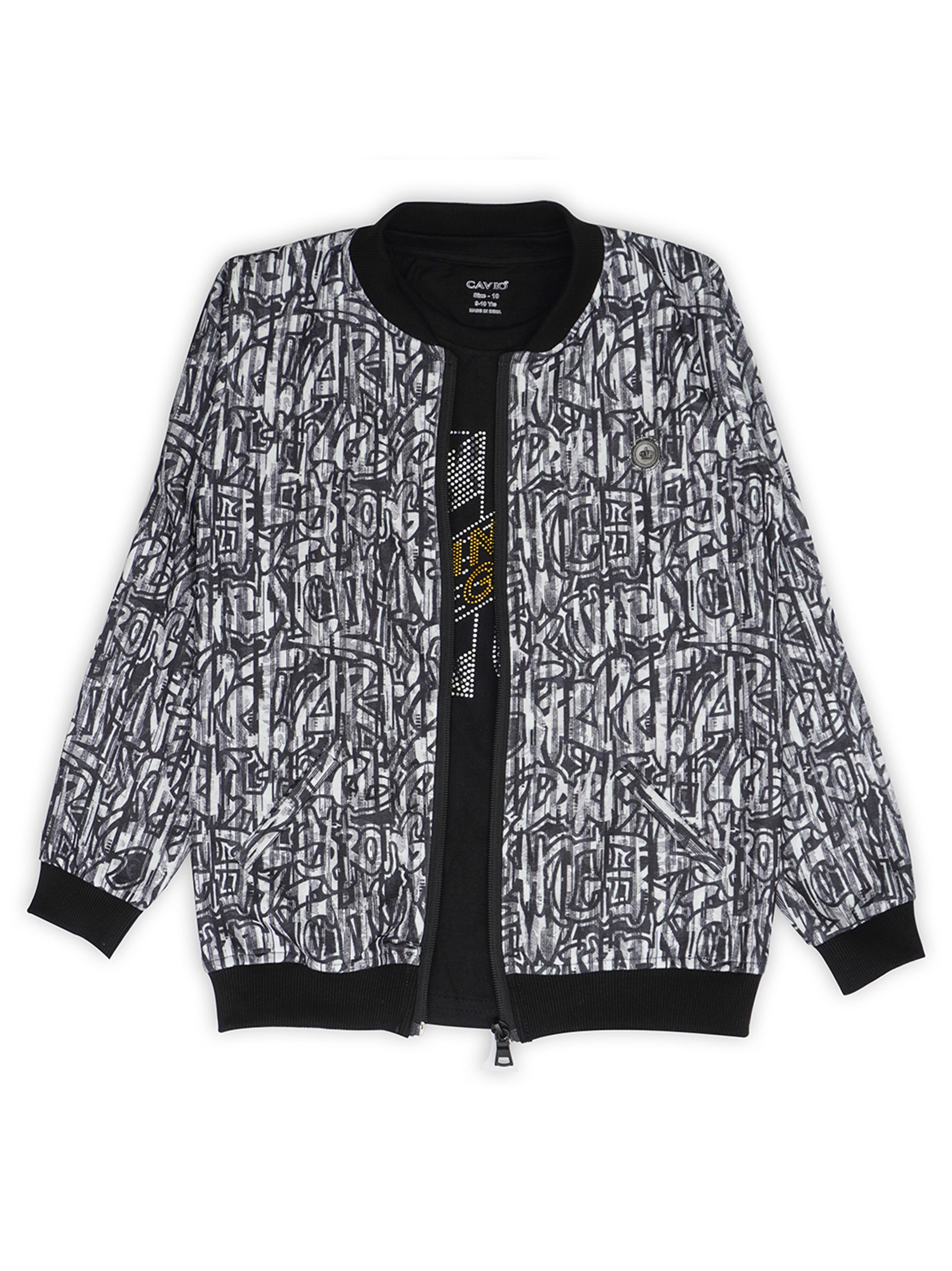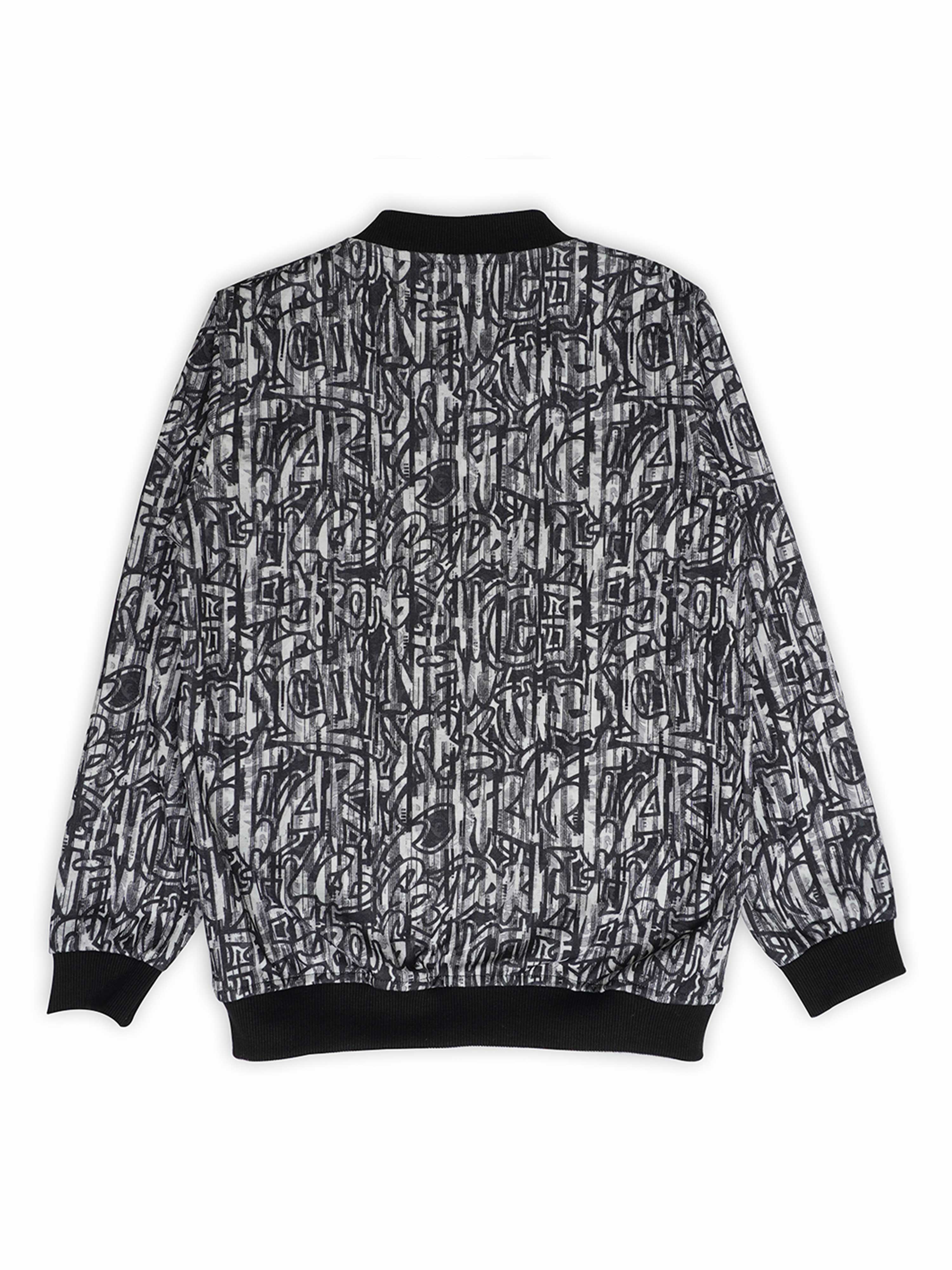Black and white printed T-shirt ,has a mandarin collar, long sleeves
