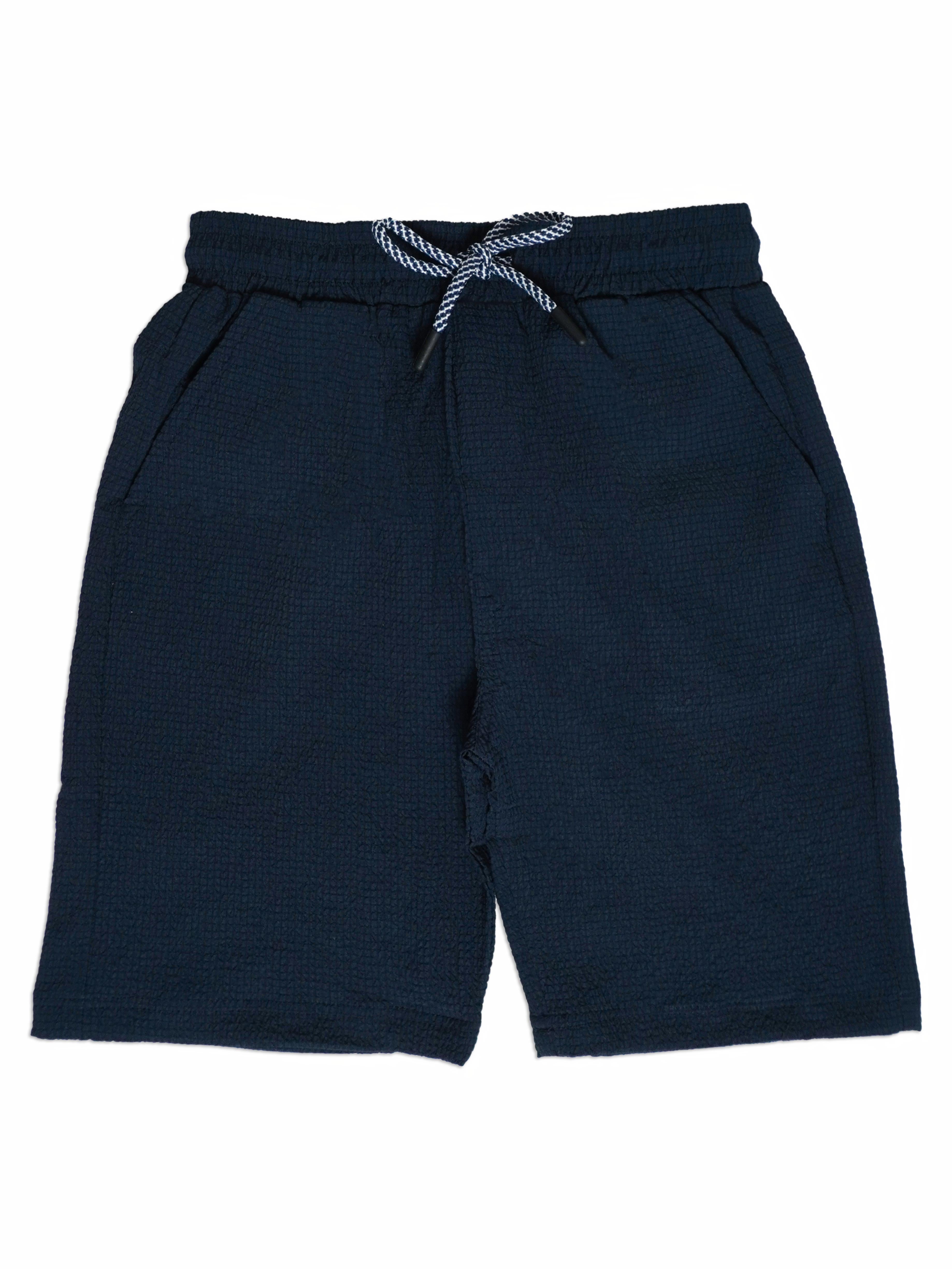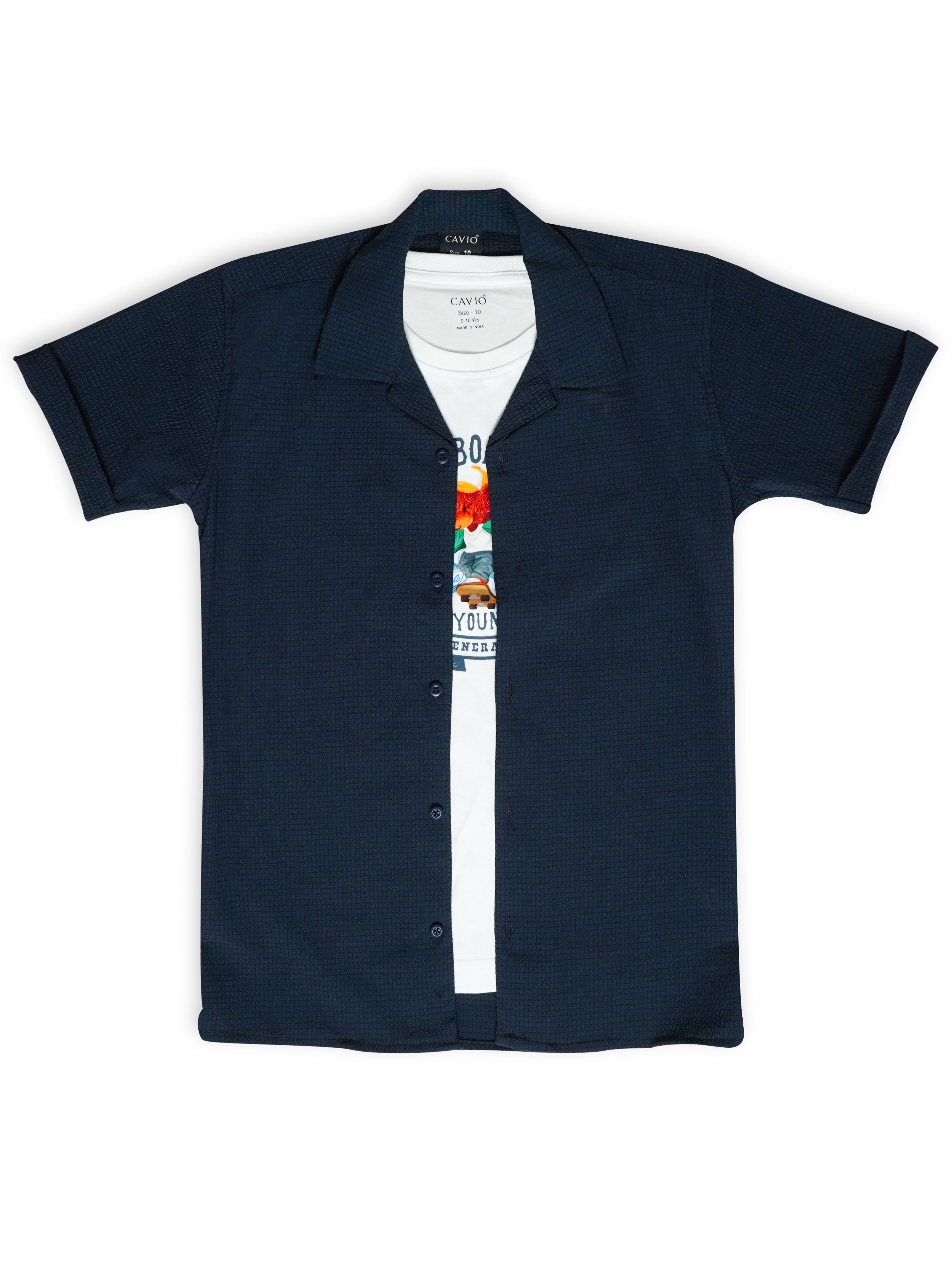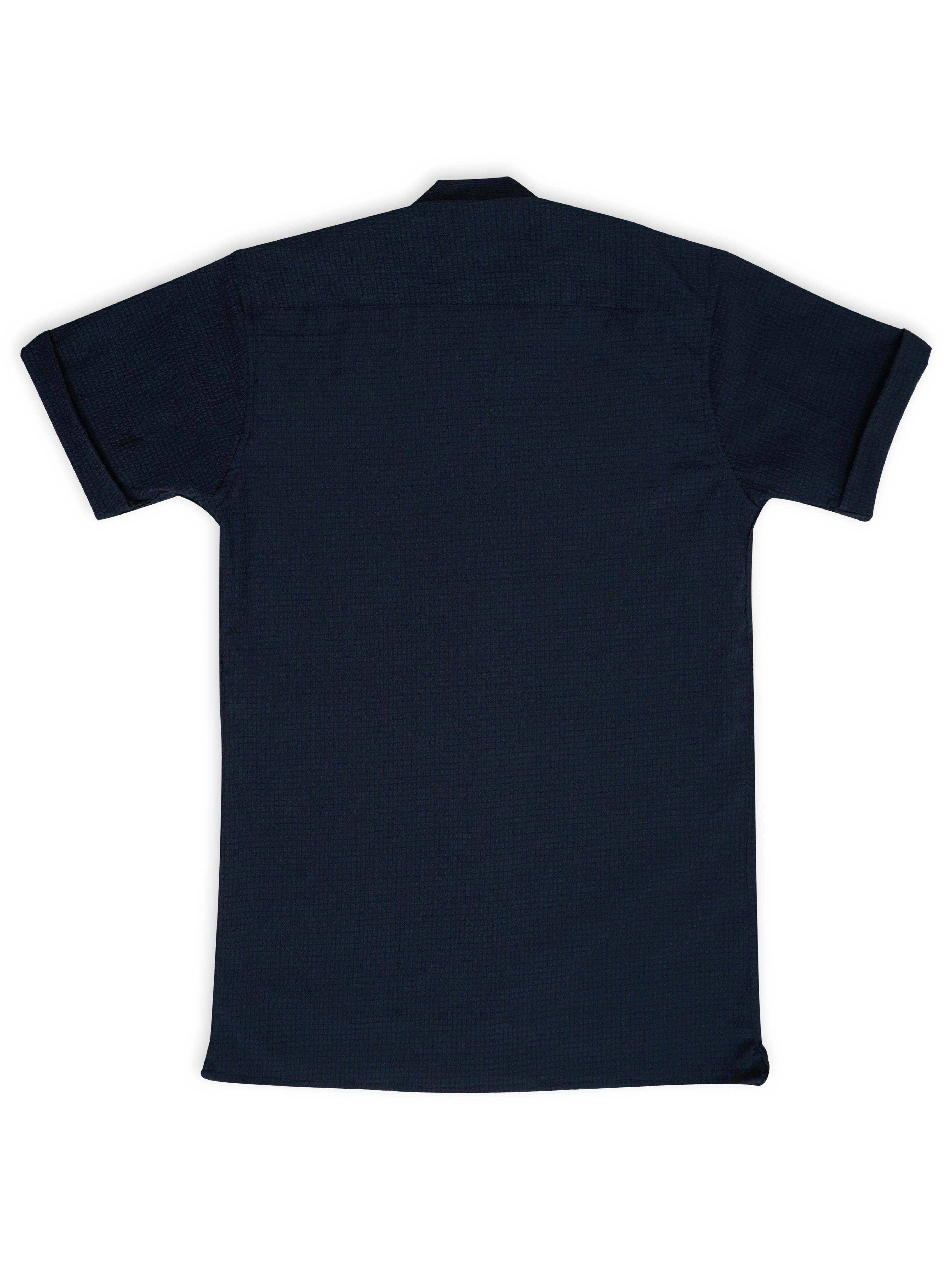 Navy blue and white solid shirt ,has a shirt collar, short sleeves