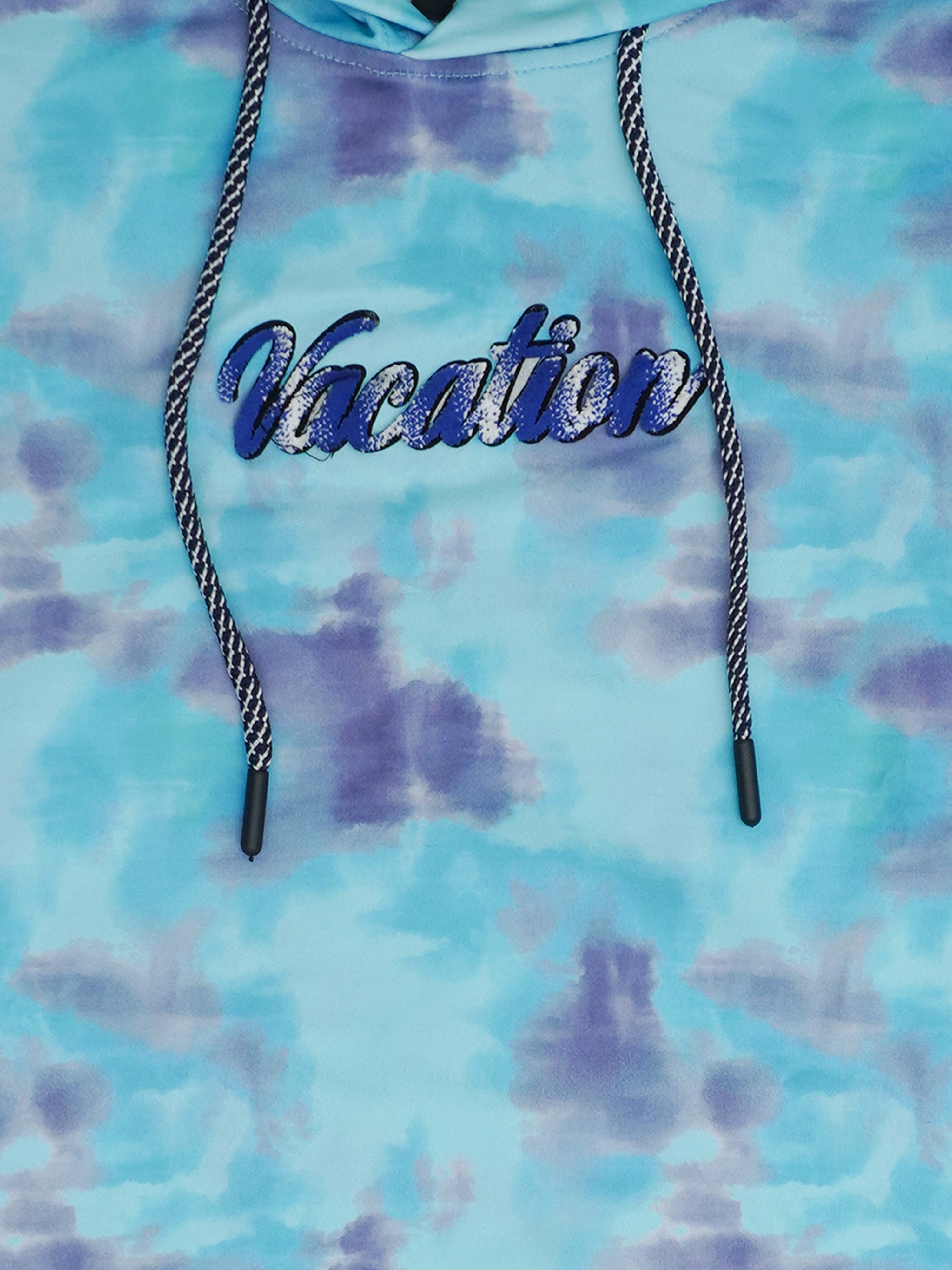 Blue and purple tie & dye printed T-shirt ,has a hooded, long sleeves