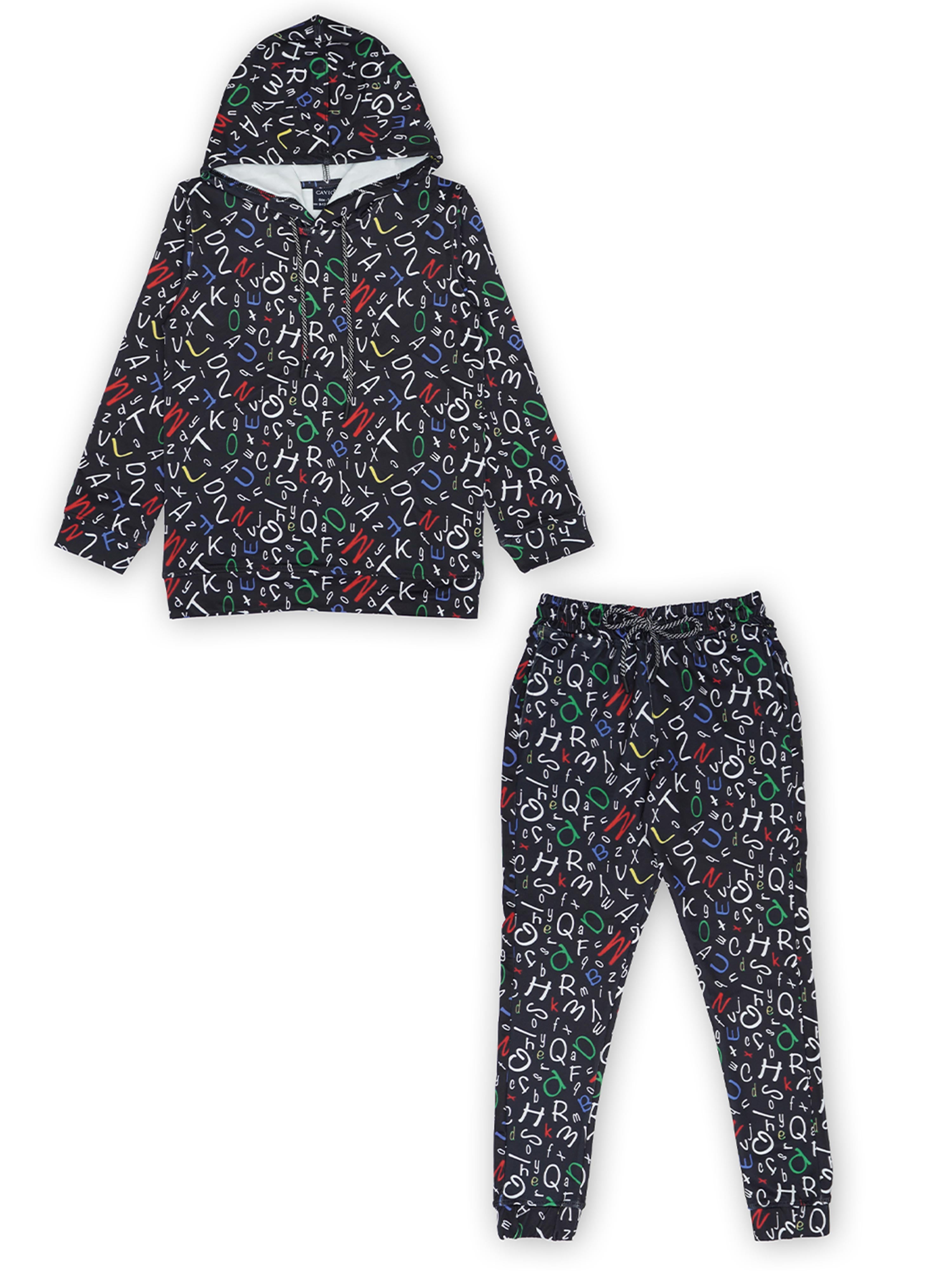 Boys Typography Printed Hooded Pure Cotton T shirt with Pyjamas