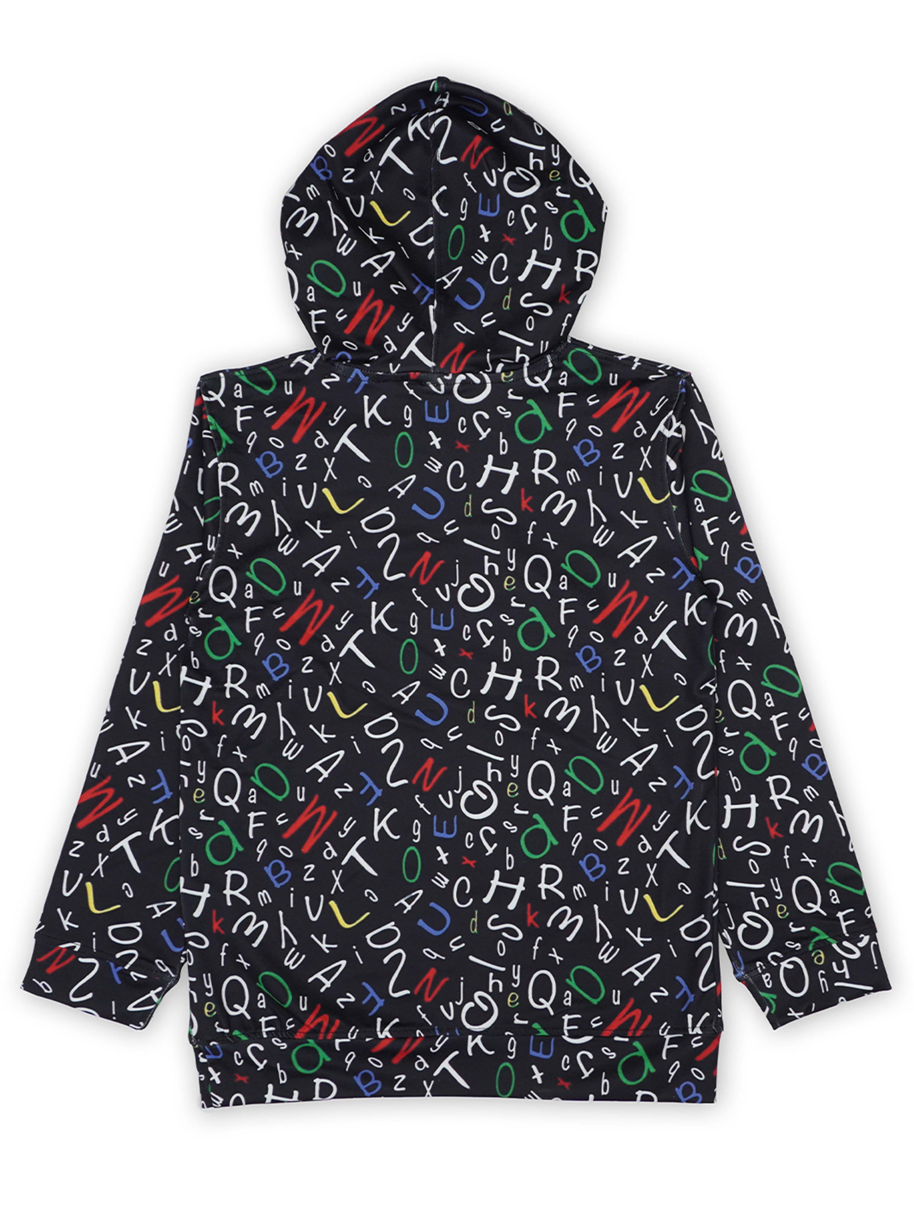 Black and red printed T-shirt ,has a hooded, long sleeves