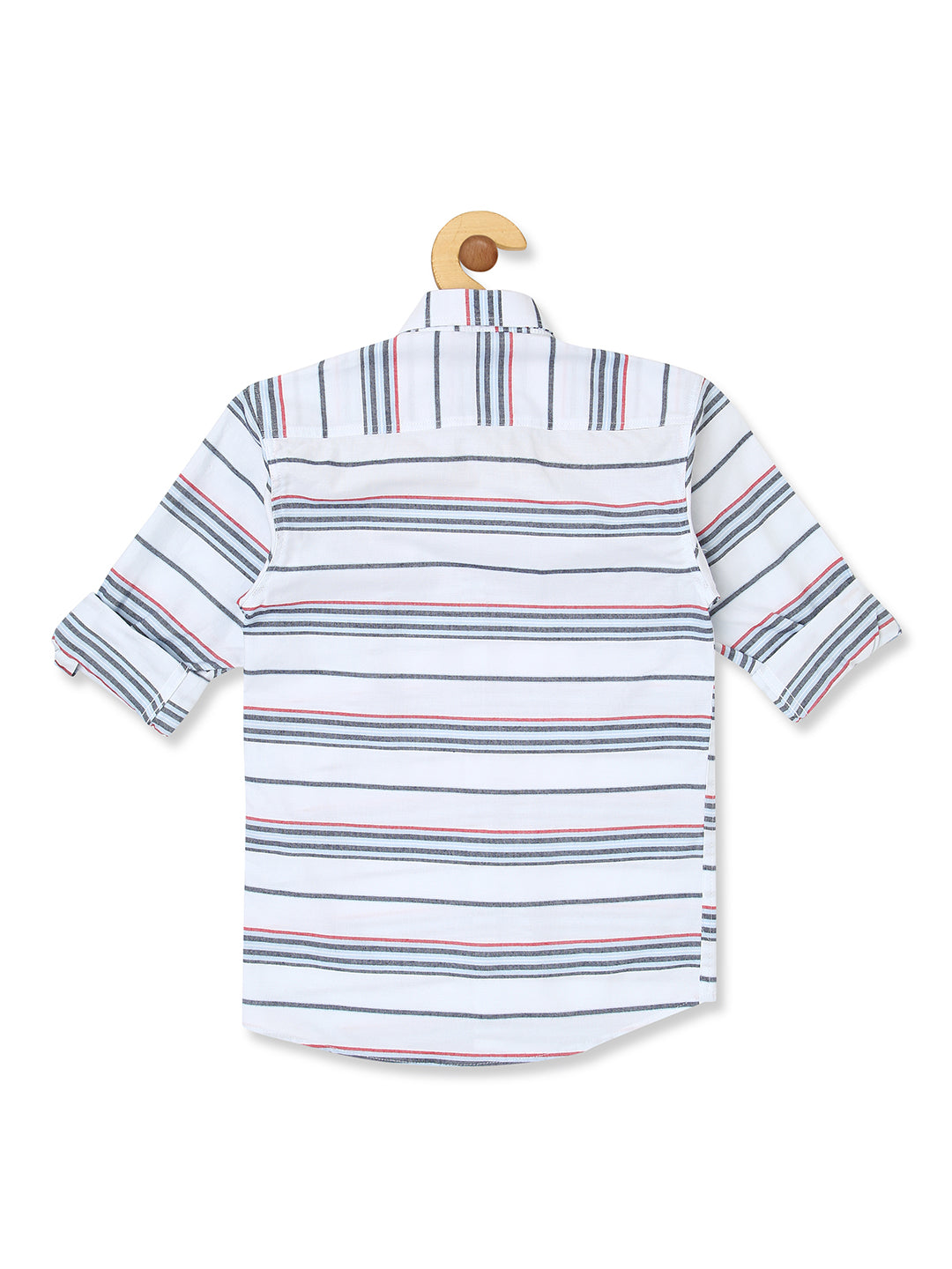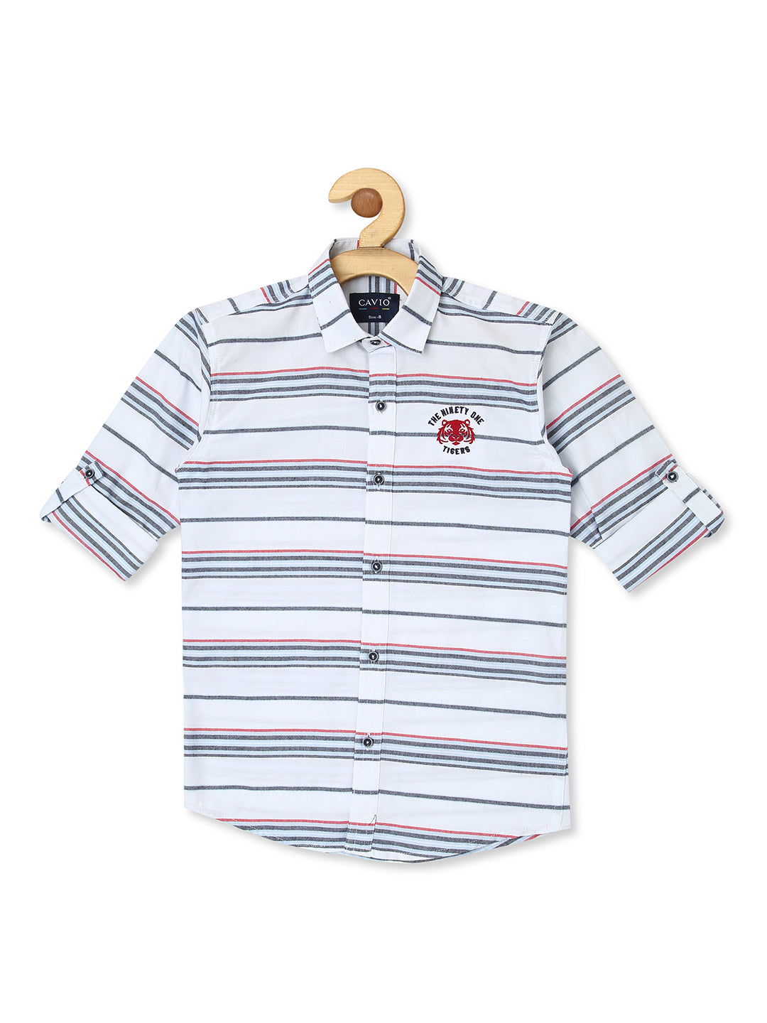 White vertical stripes striped opaque Casual shirt ,has a spread collar, button placket, na pocket, long roll-up sleeves, curved hem