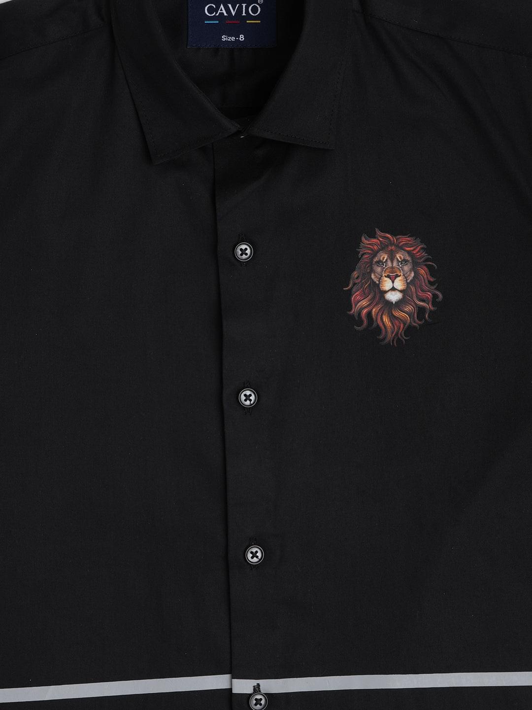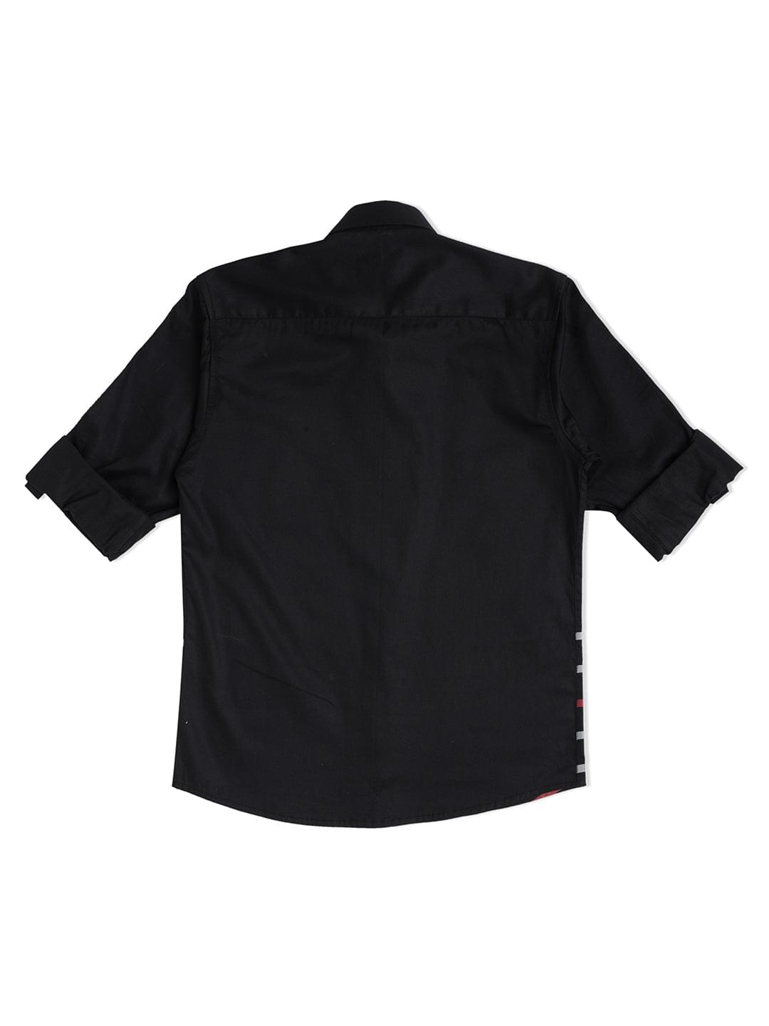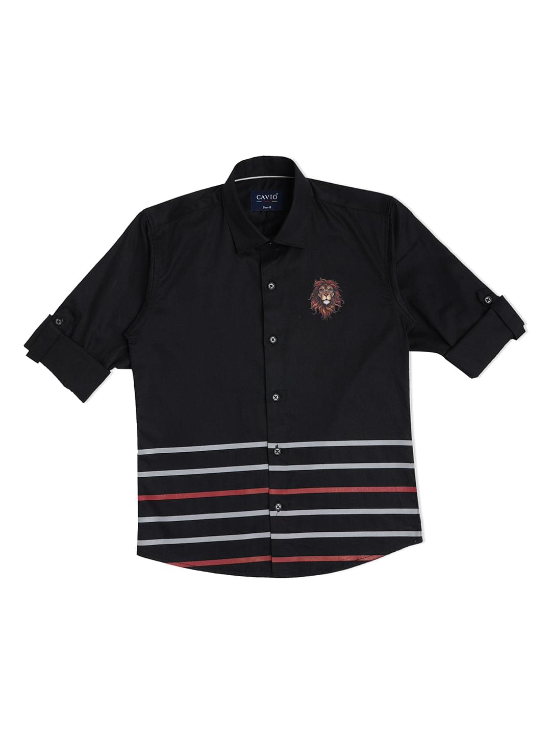 Black horizontal stripes printed opaque Casual shirt ,has a spread collar, button placket, long roll-up sleeves, curved hem
