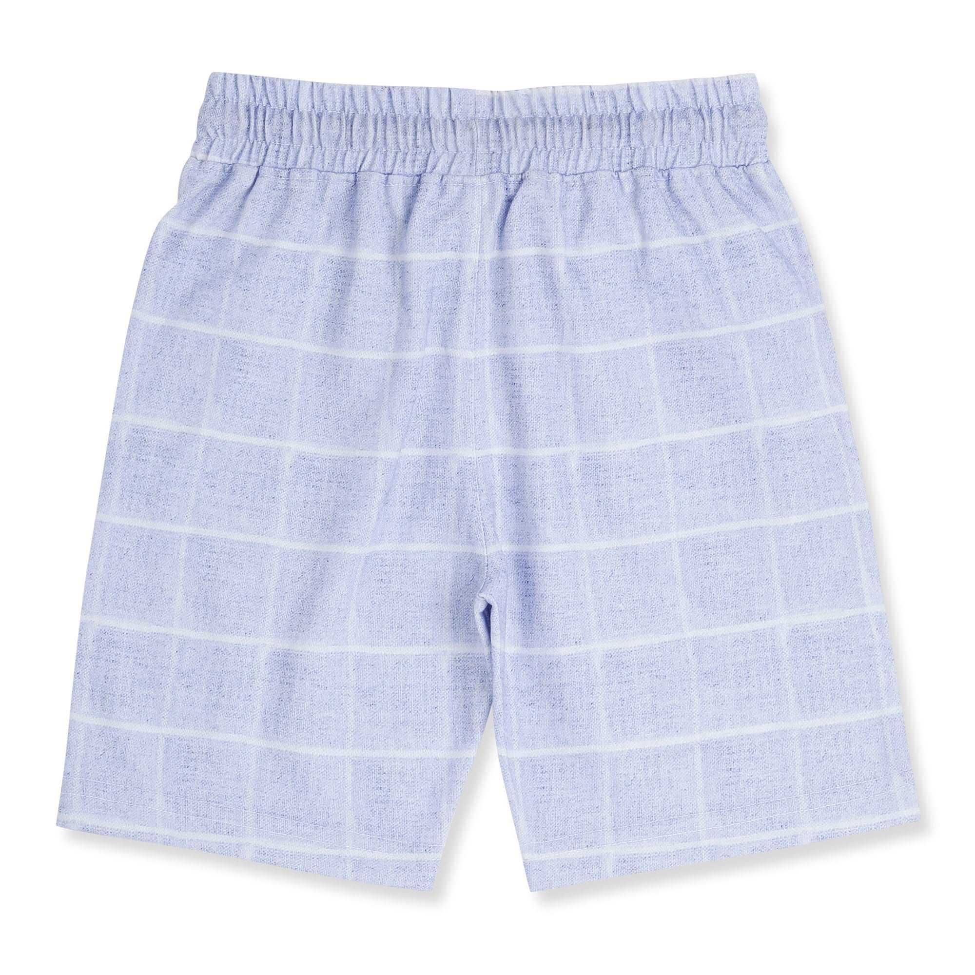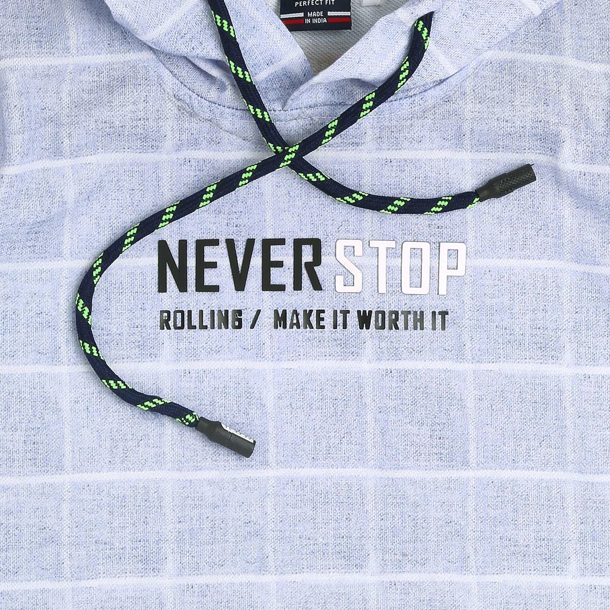 Blue and white checked T-shirt ,has a hooded, short sleeves