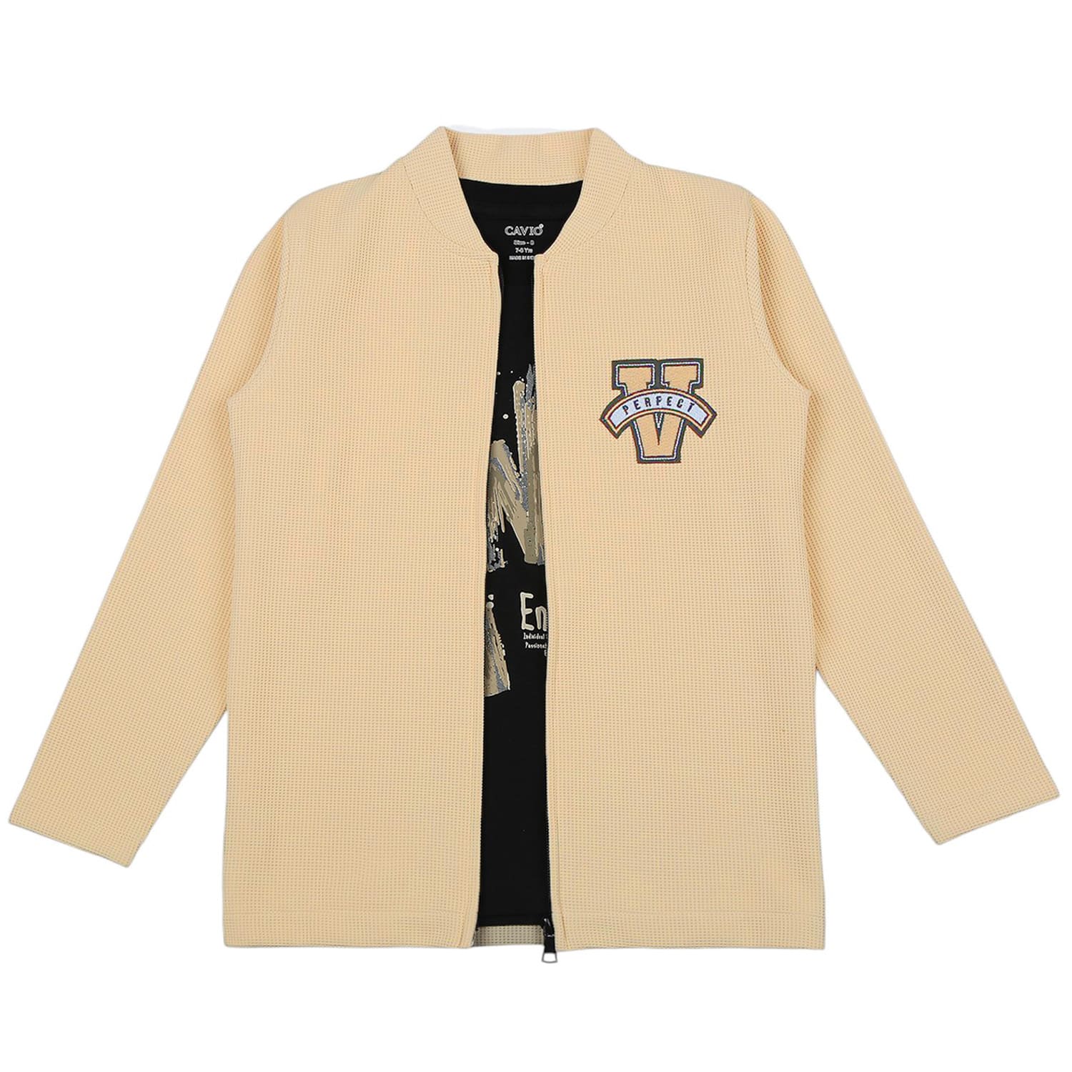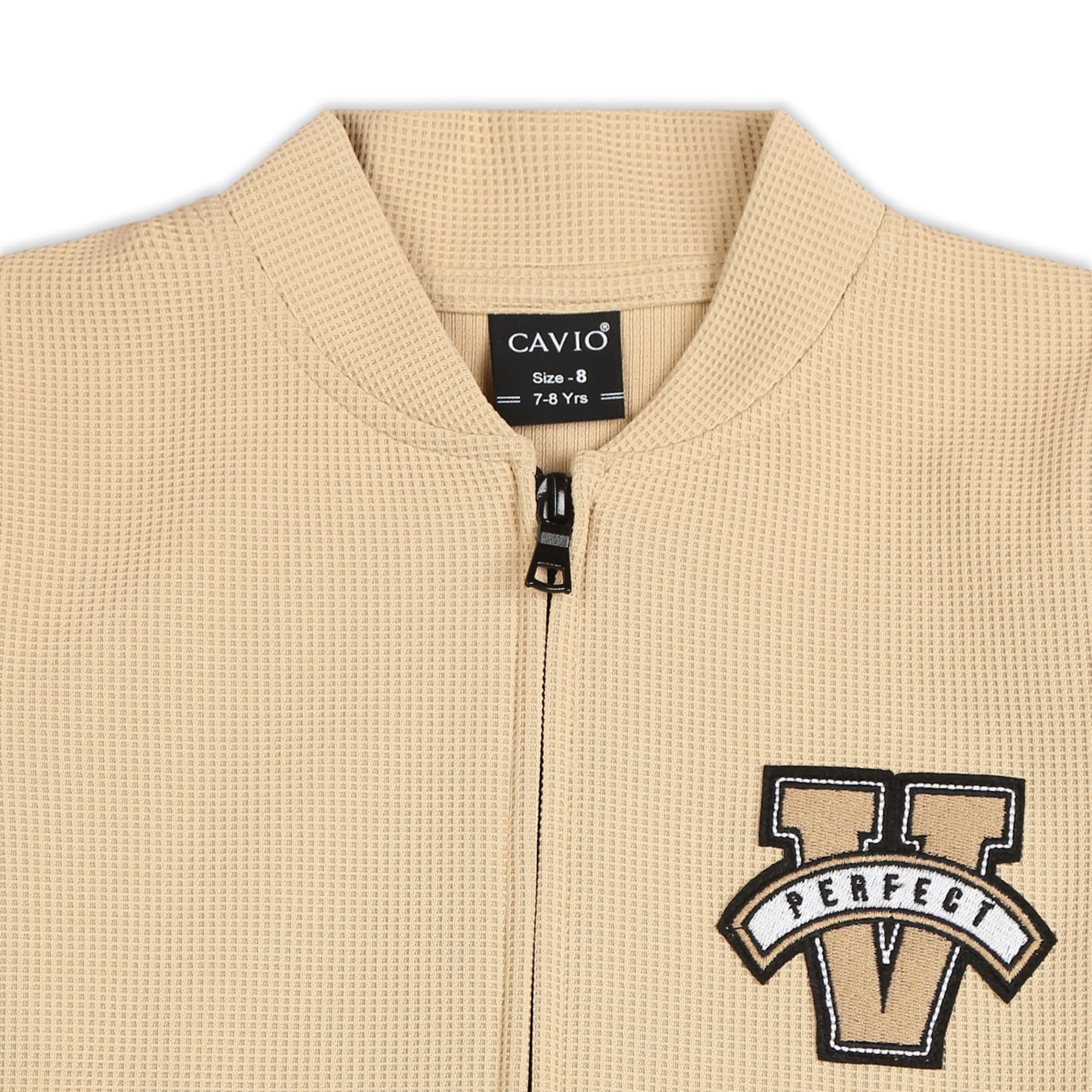 The CAVIO Boys Full Sleeve Zipper Jacket and T-Shirt is a versatile and stylish piece perfect for casual wear. This unique design combines the comfort of a T-shirt with the added warmth and protection of a jacket, making it ideal for layering during cooler weather. The full sleeves and front zipper closure provide ease of wear, while the soft, breathable fabric ensures all-day comfort. The jacket features a trendy look with subtle detailing, making it suitable for both everyday outings and special occasions. It's a practical and fashionable addition to any young boy's wardrobe.