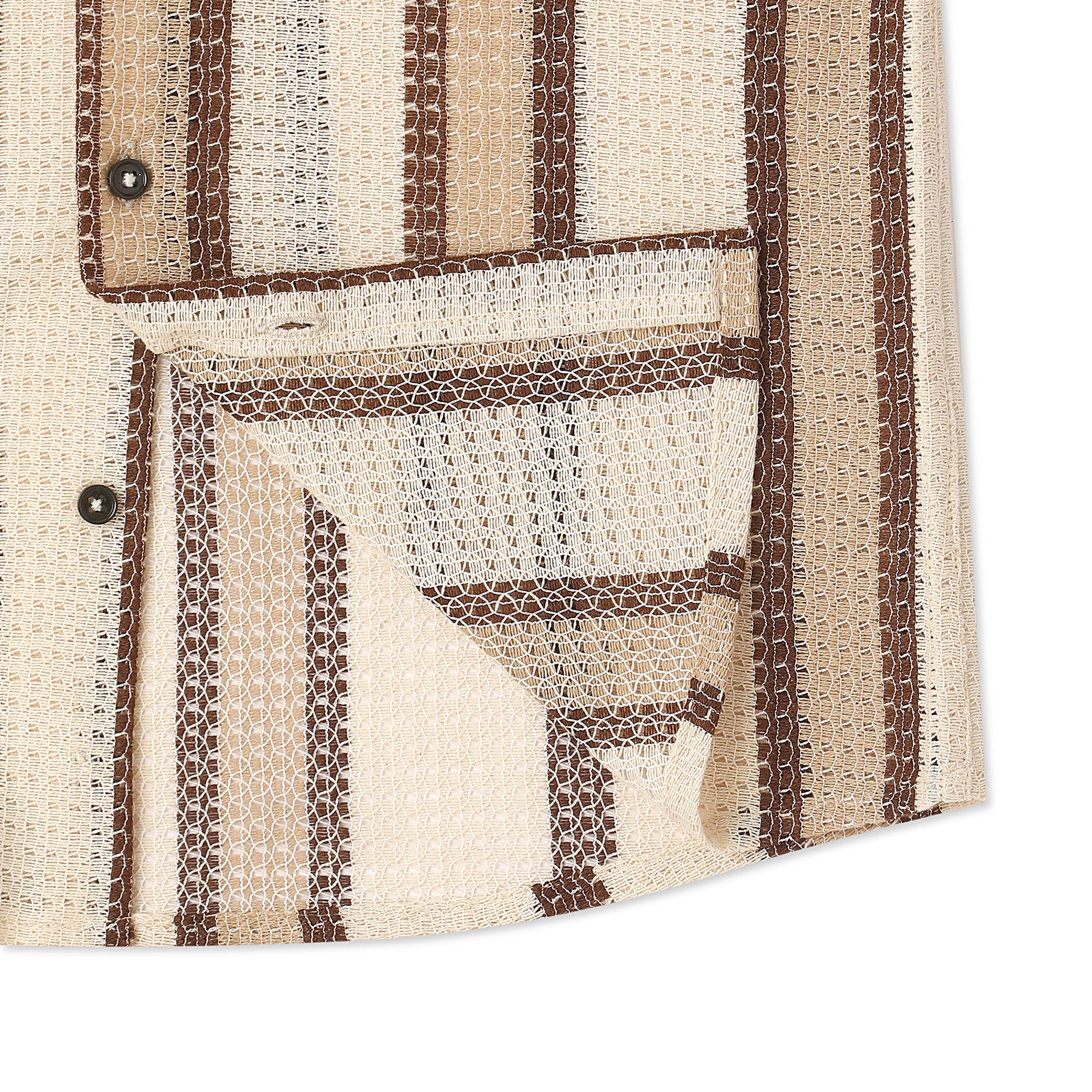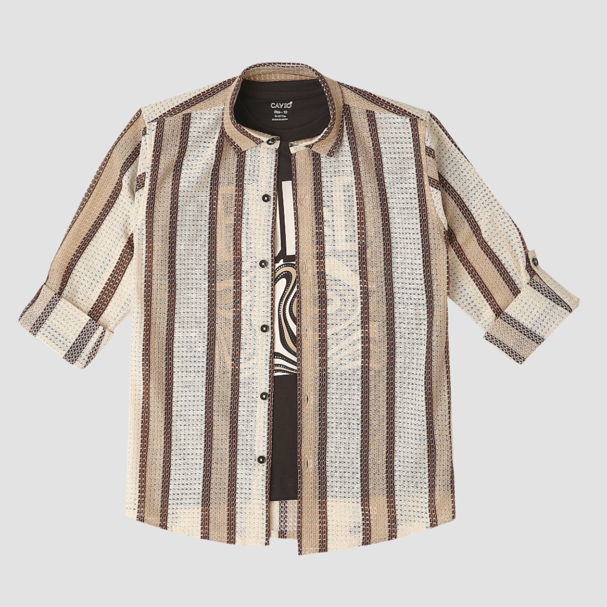 CAVIO Boys Cotton Knited Full Sleeves Striped Shirt With T-Shirt - Brown