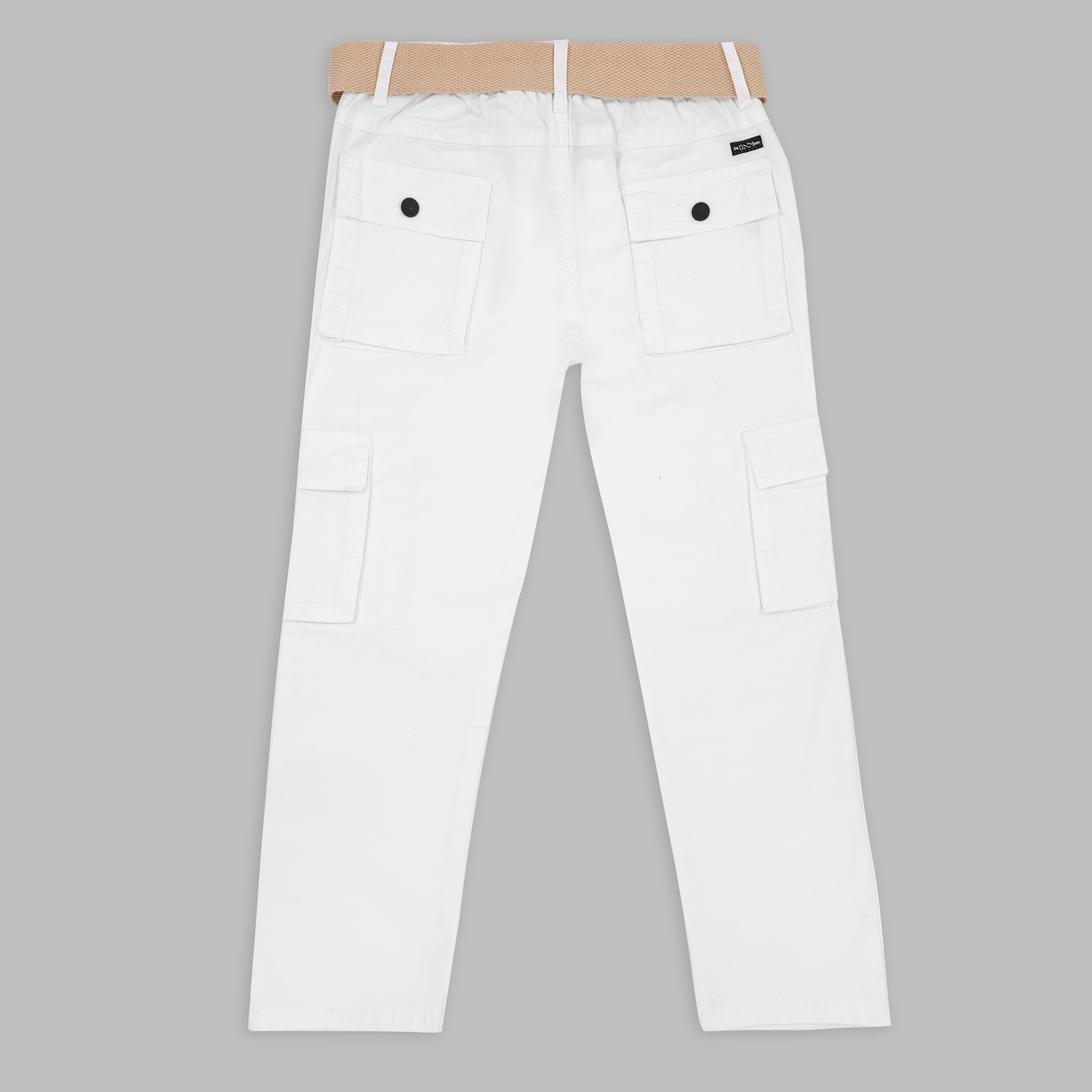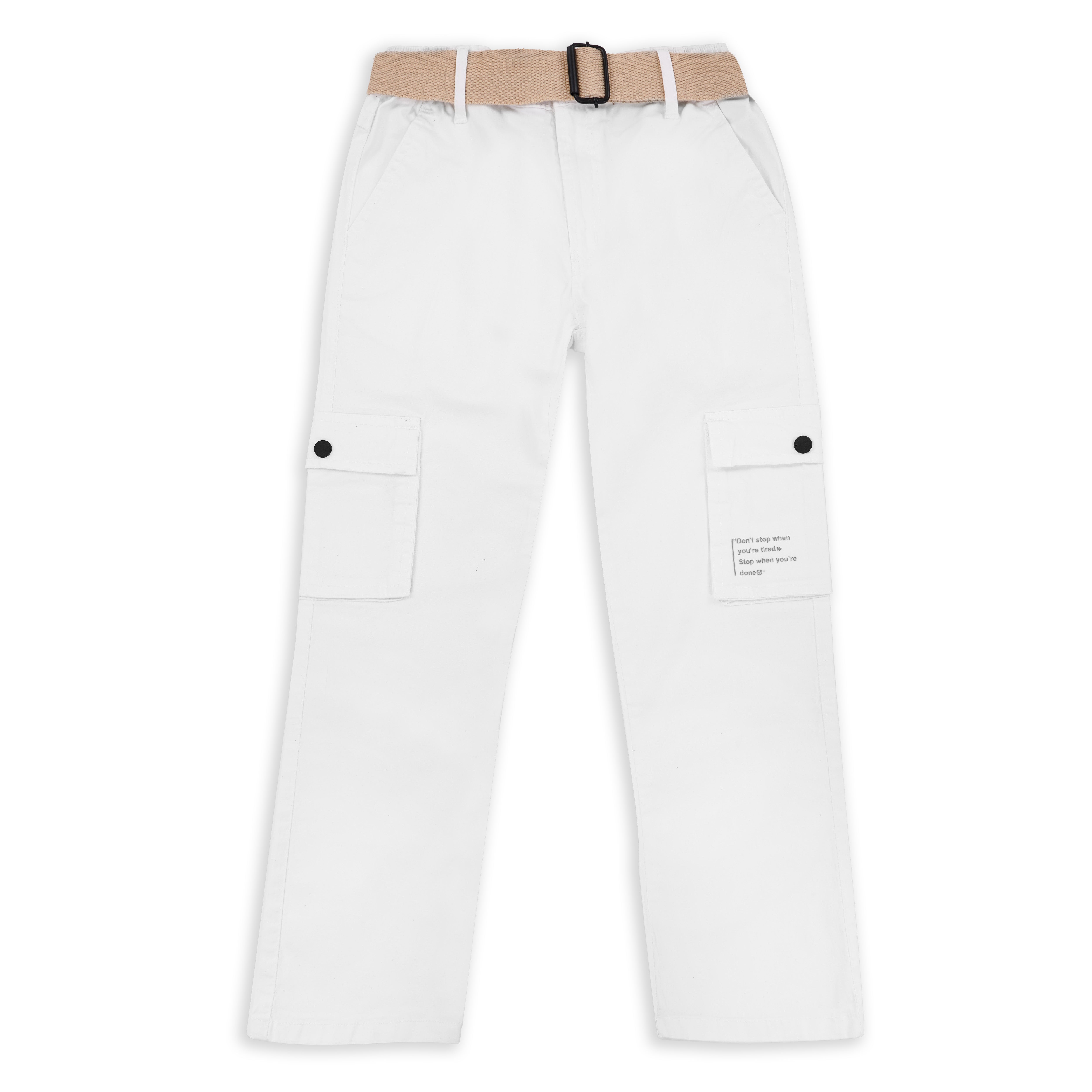 The CAVIO Boys Cotton Solid Cargo Trouser with Belt combines style and functionality for active young boys. Crafted from soft, breathable cotton, these trousers feature a classic solid color that is both versatile and easy to coordinate with various outfits. The cargo design includes multiple pockets, perfect for carrying essentials and adding a rugged touch to the look. The adjustable belt ensures a comfortable and secure fit, making these trousers ideal for both everyday wear and outdoor adventures. With their durable construction and practical features, these cargo trousers are a great addition to any boyās wardrobe.