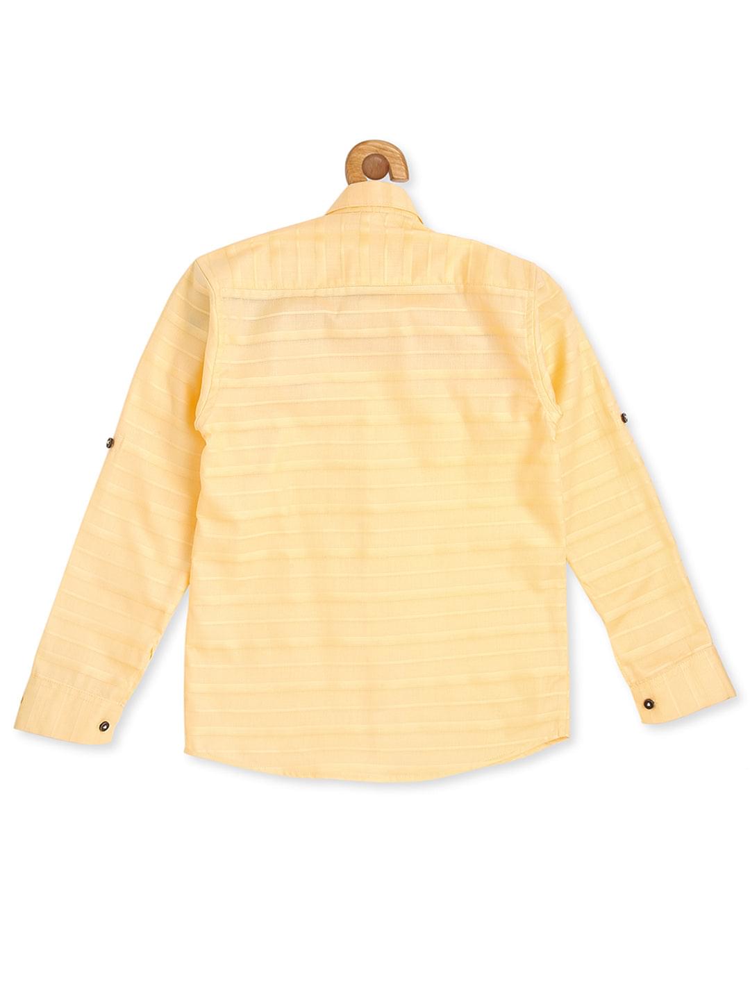Lime green horizontal stripes striped opaque Casual shirt ,has a spread collar, button placket, long roll-up sleeves, curved hem
