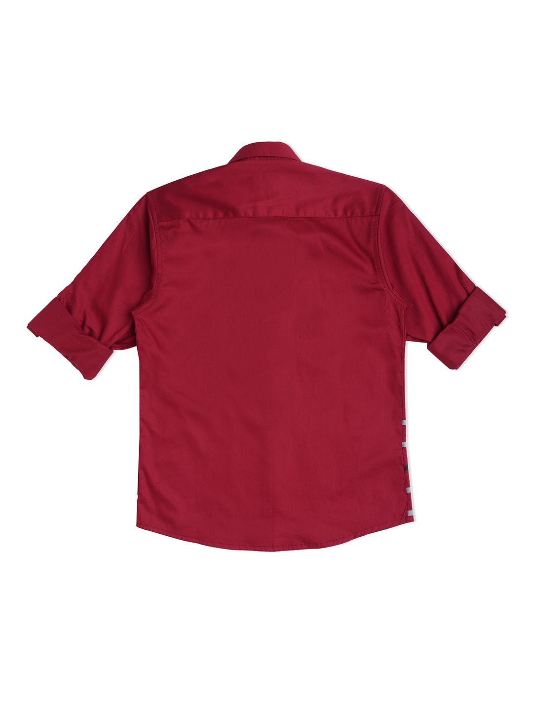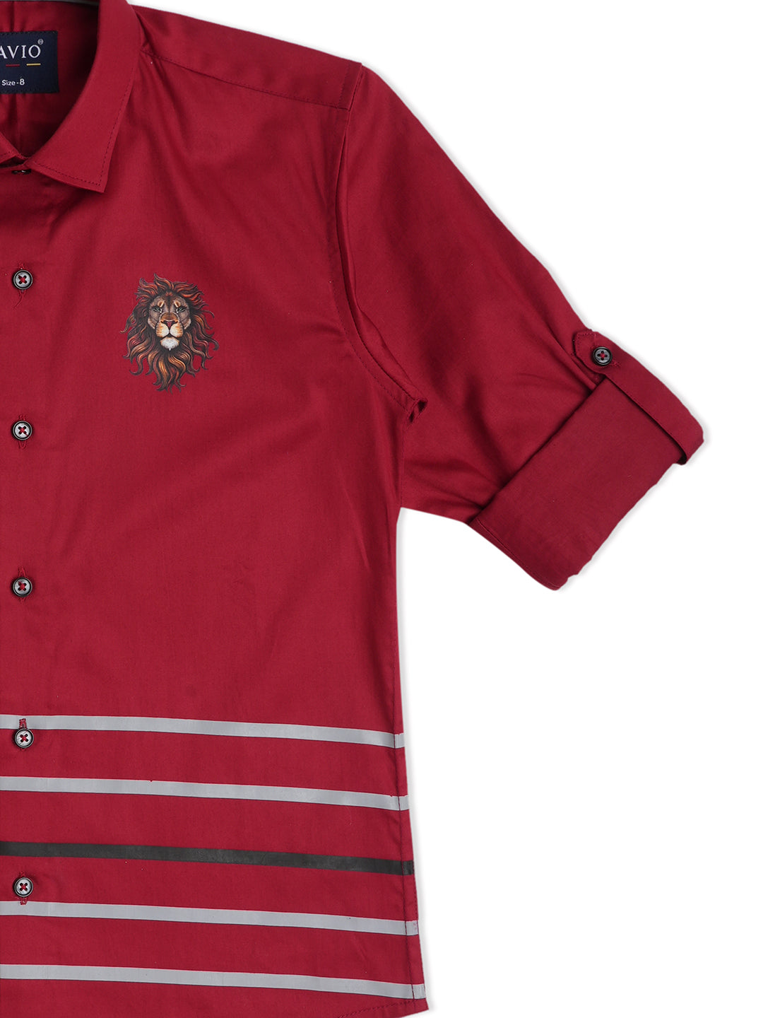 Maroon horizontal stripes printed opaque Casual shirt ,has a spread collar, button placket, long roll-up sleeves, curved hem