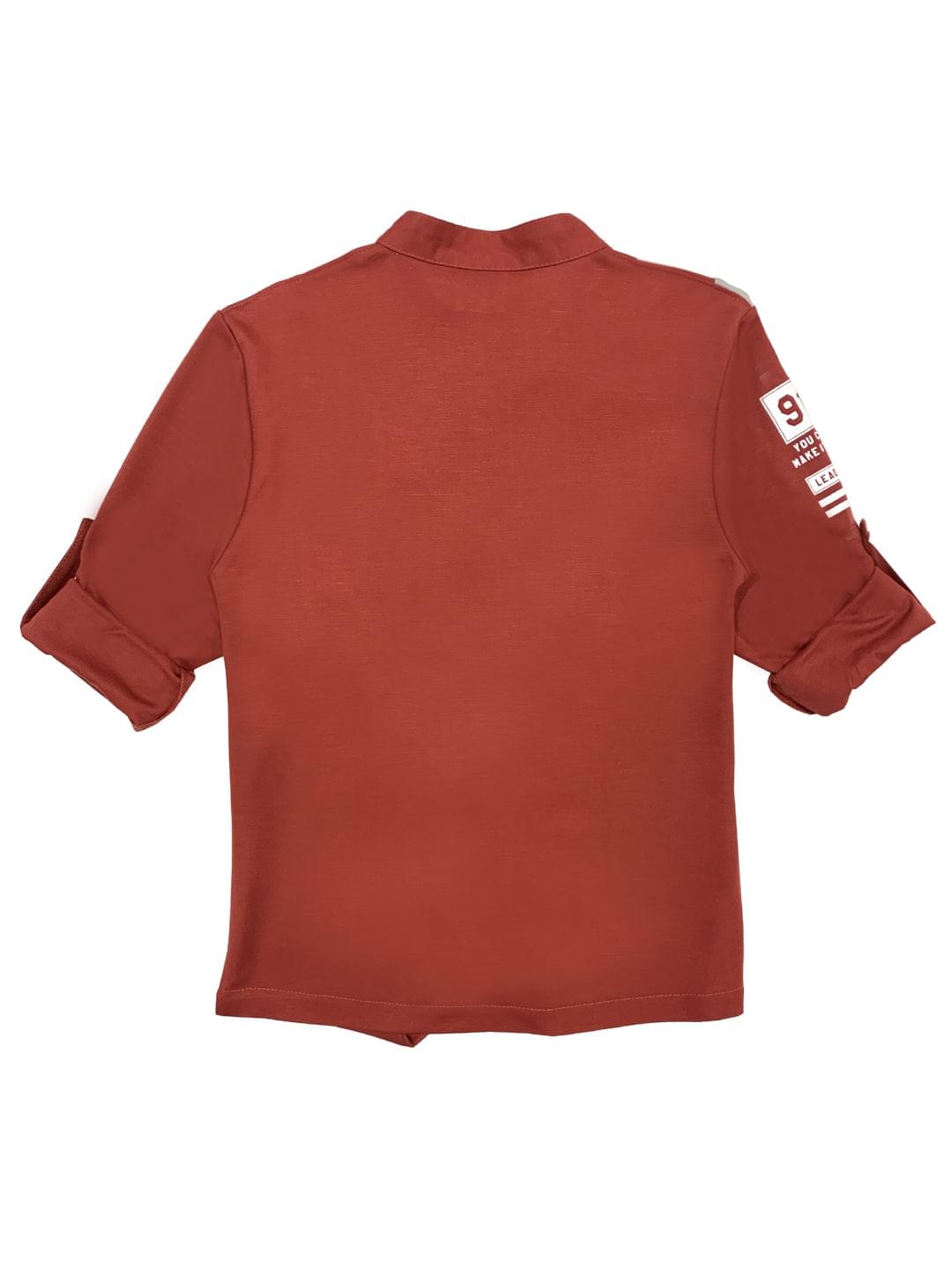 Rust colourblocked solid opaque Casual shirt ,has a mandarin collar, button placket, na pocket, long roll-up sleeves, curved hem