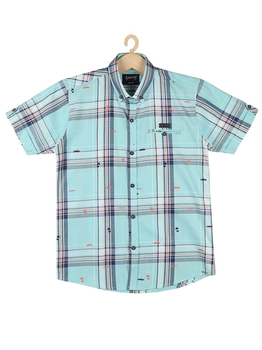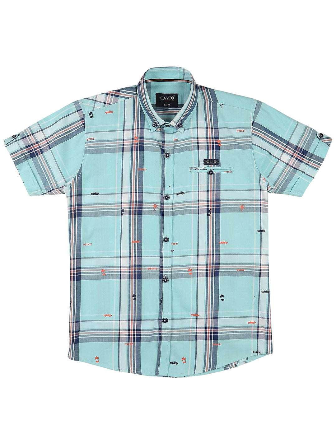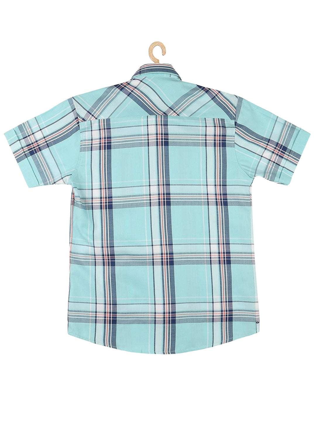 Turquoise blue other checks checked opaque Casual shirt ,has a spread collar, button placket, na pocket, short regular sleeves, curved hem
