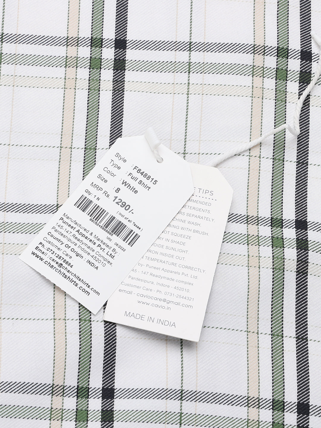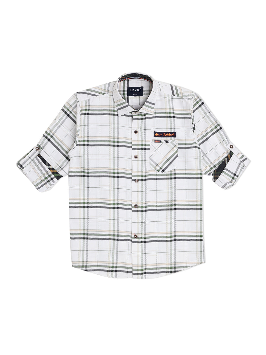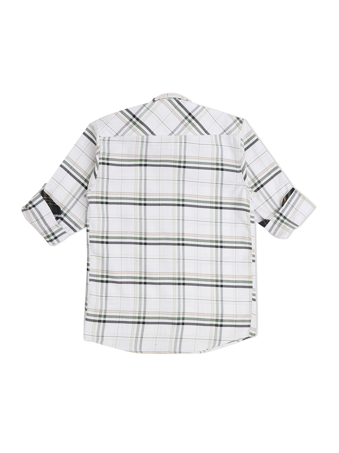 White other checks checked opaque Casual shirt ,has a spread collar, button placket, 1 patch pocket, long roll-up sleeves, curved hem