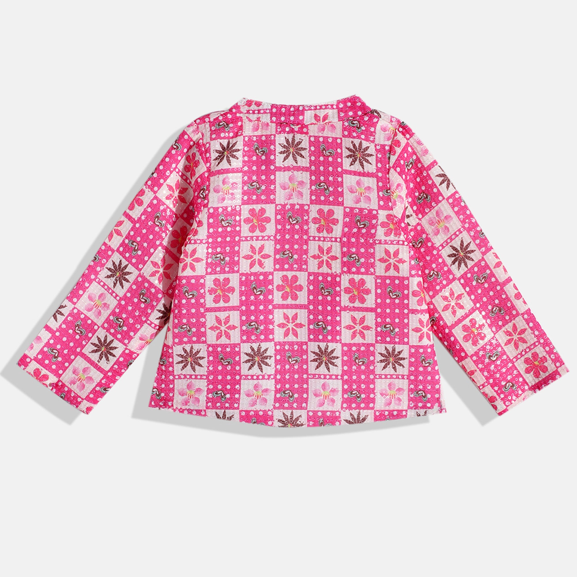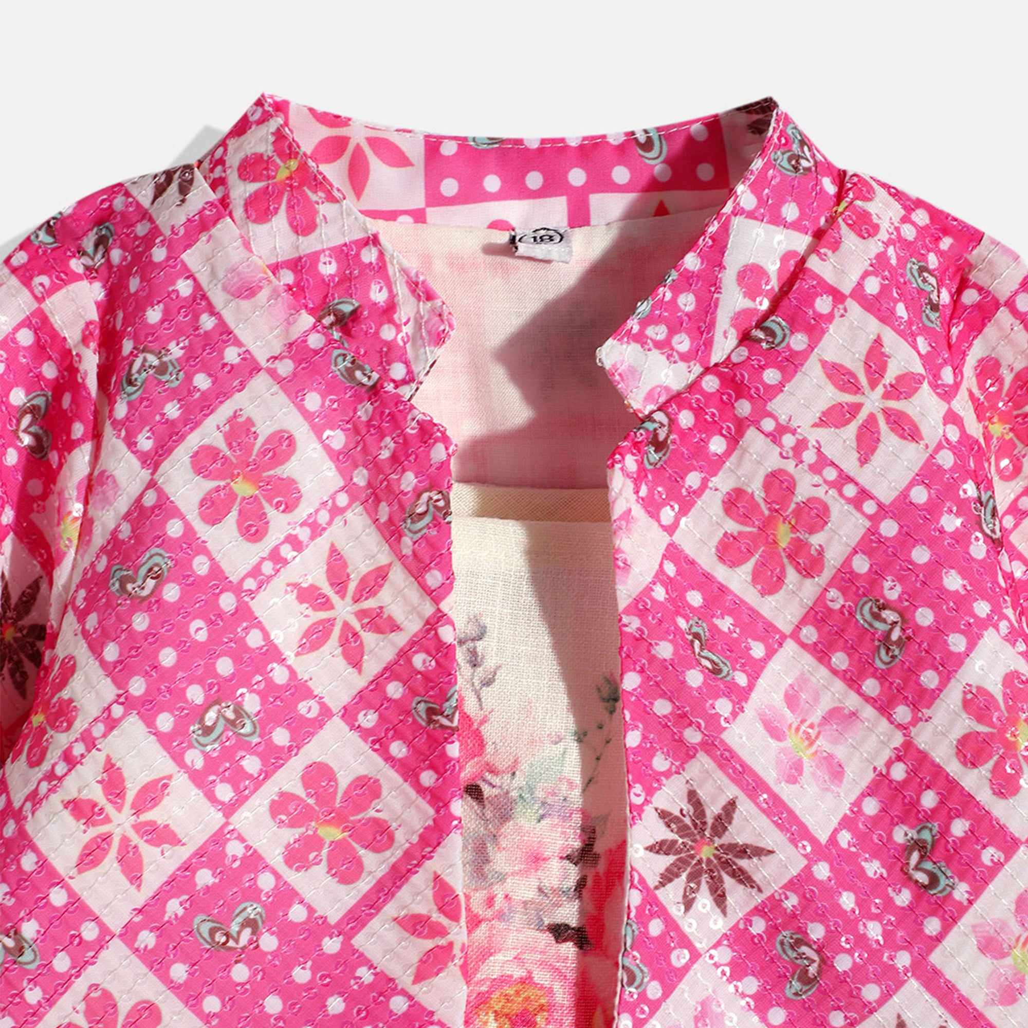 This girls' floral dress with a jacket is the perfect blend of feminine charm and stylish warmth. The dress features a vibrant floral print, with a flattering cut that adds a playful and elegant touch. Paired with a matching or coordinating jacket, it offers extra coziness and versatility, making it ideal for transitional weather.