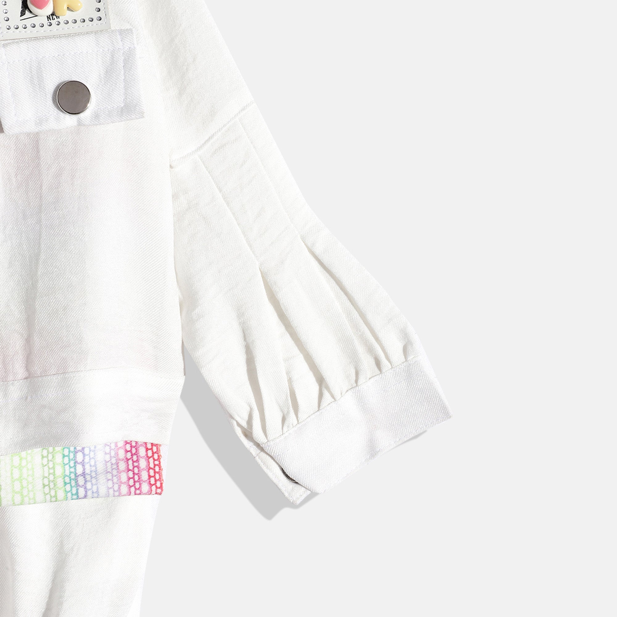 This 3-piece girls' palazzo set combines comfort and style, making it perfect for festive and casual occasions. It features a beautifully designed Jacket And T-Shirt paired with Solid palazzos that ensure ease of movement. The outfit is completed with a matching T-Shirt adding an elegant touch to the ensemble. Crafted from high-quality, breathable fabric, this set offers a blend of traditional charm and modern appeal, making it a versatile addition to any wardrobe.