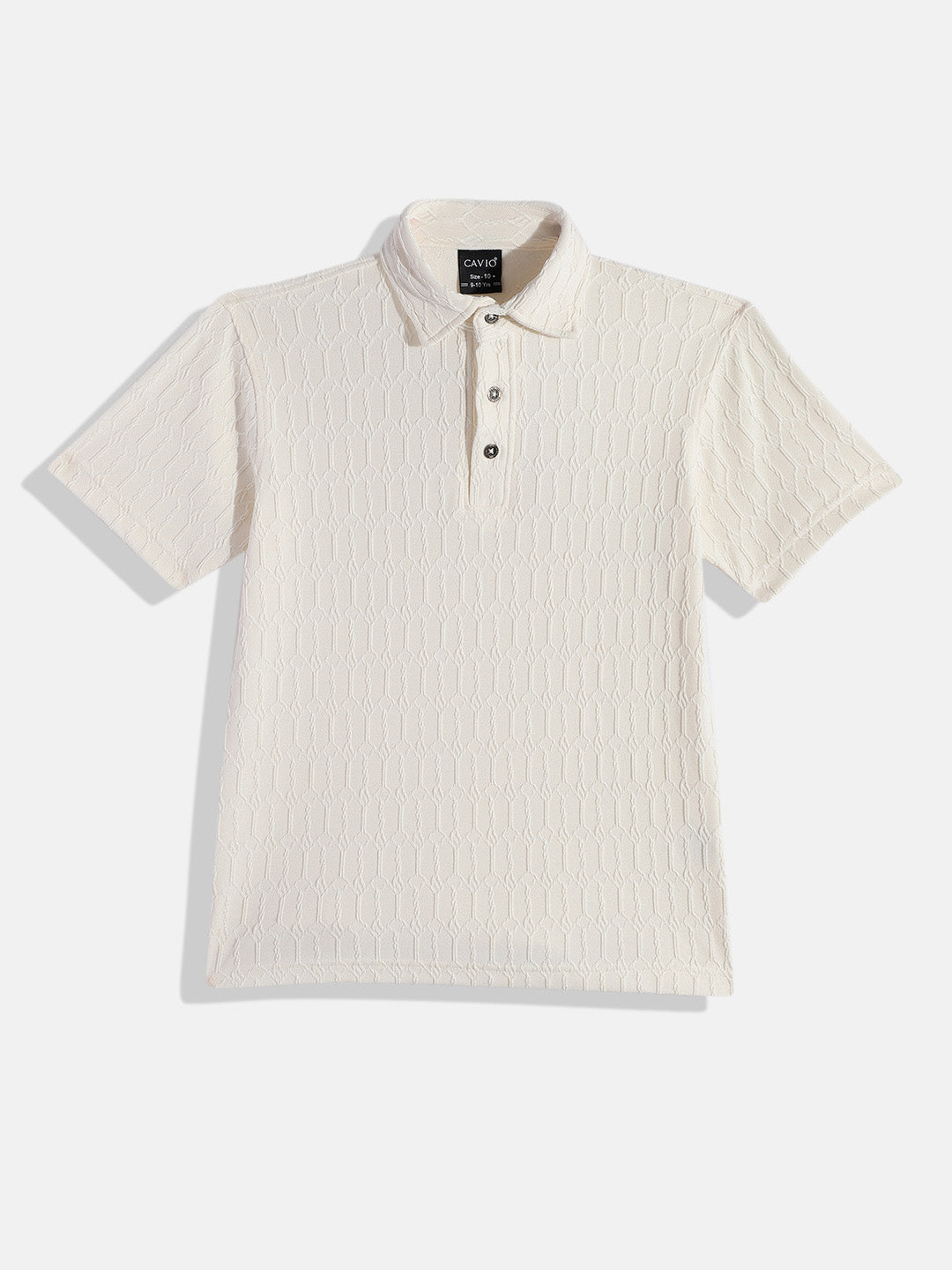 CAVIO Cotton Lycra Half Sleeves Solid Casual T-Shirt - Cream