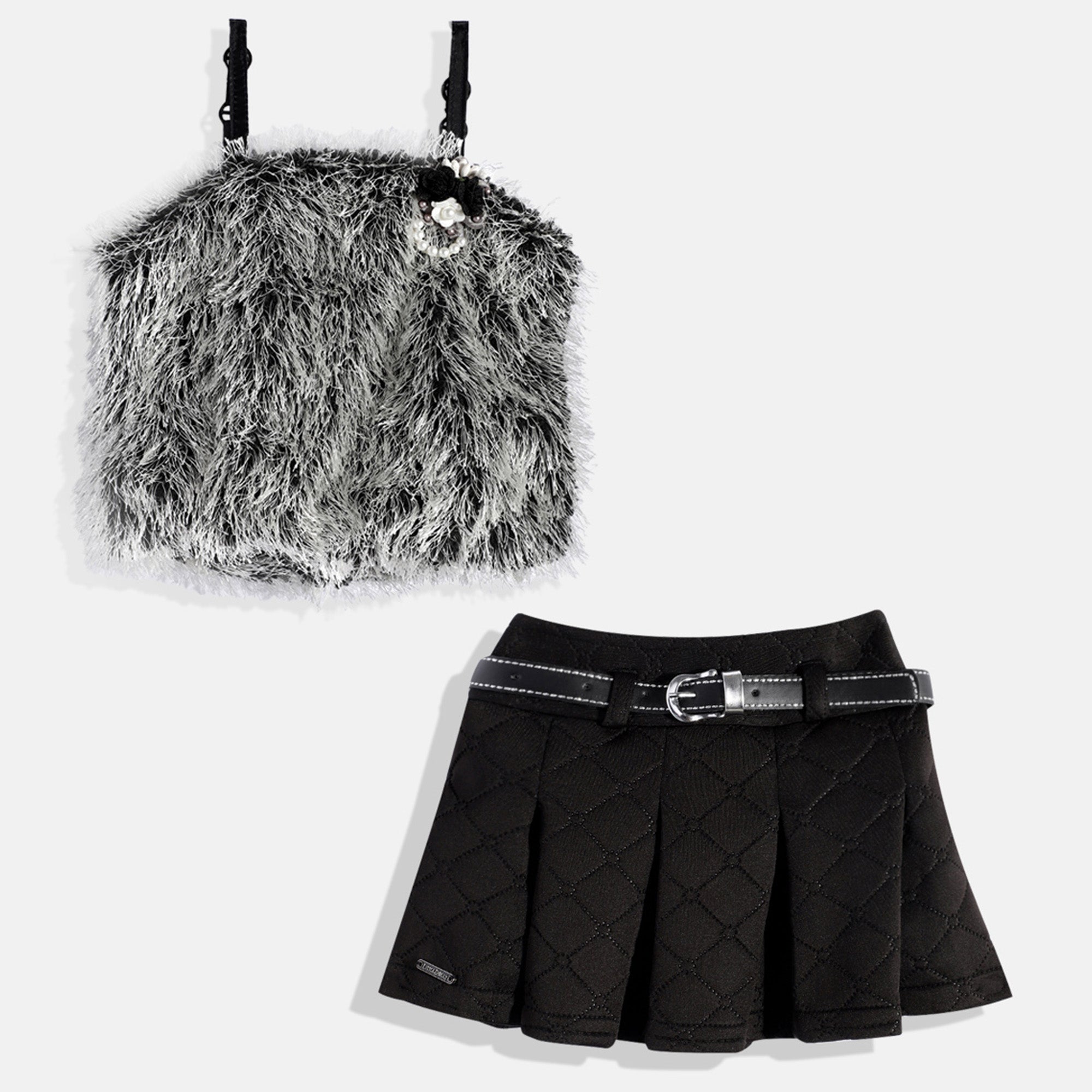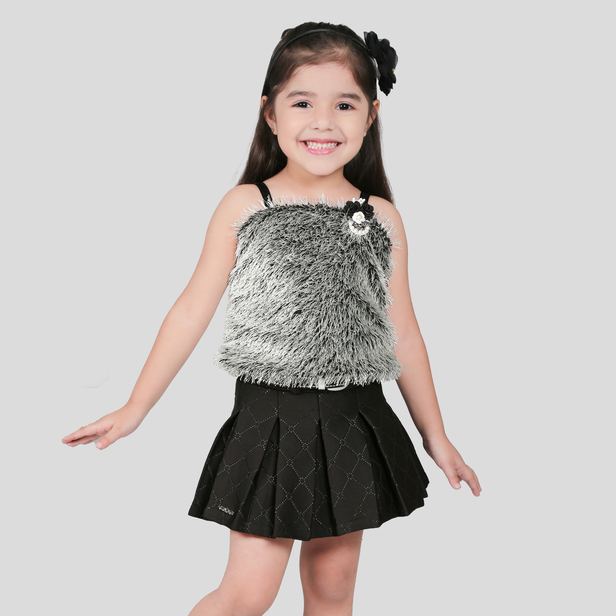 This girls' partywear skirt and top dress is the perfect choice for special occasions, combining elegance and comfort effortlessly. The set features a beautifully embellished top with intricate details like lace, paired with a flowy, flared skirt for a chic and graceful look. Crafted from high-quality fabrics, the outfit ensures a comfortable fit while maintaining a stylish appeal. Ideal for parties, weddings, or festive events, this ensemble exudes charm and sophistication, making it a delightful addition to any young girl's wardrobe.