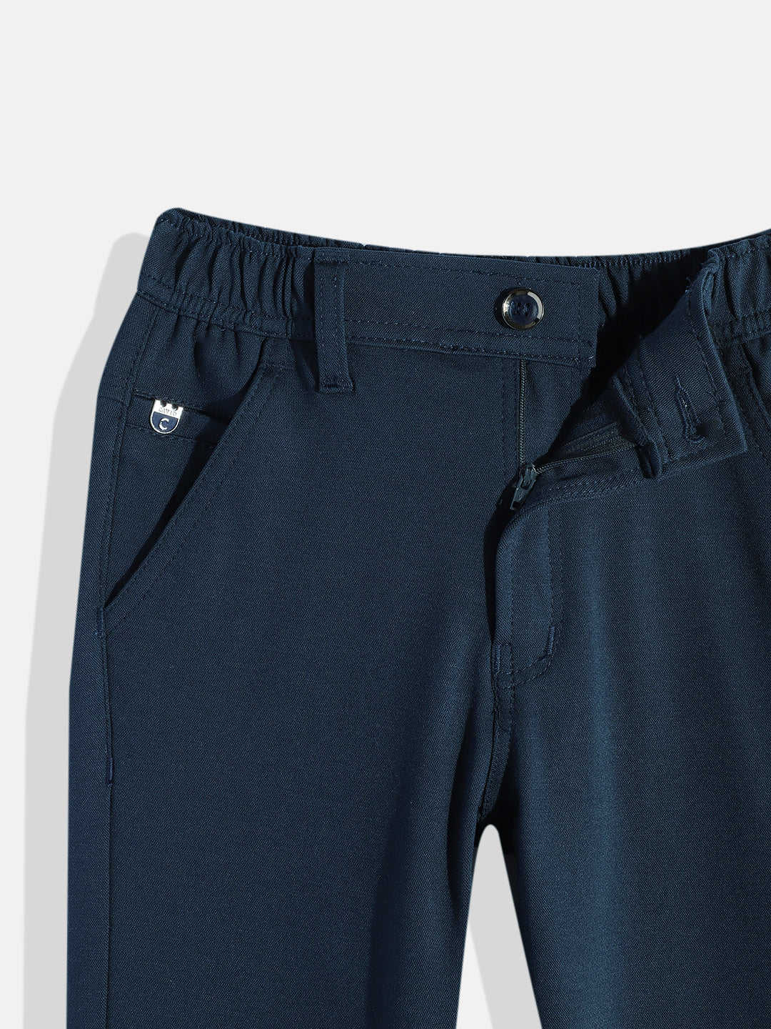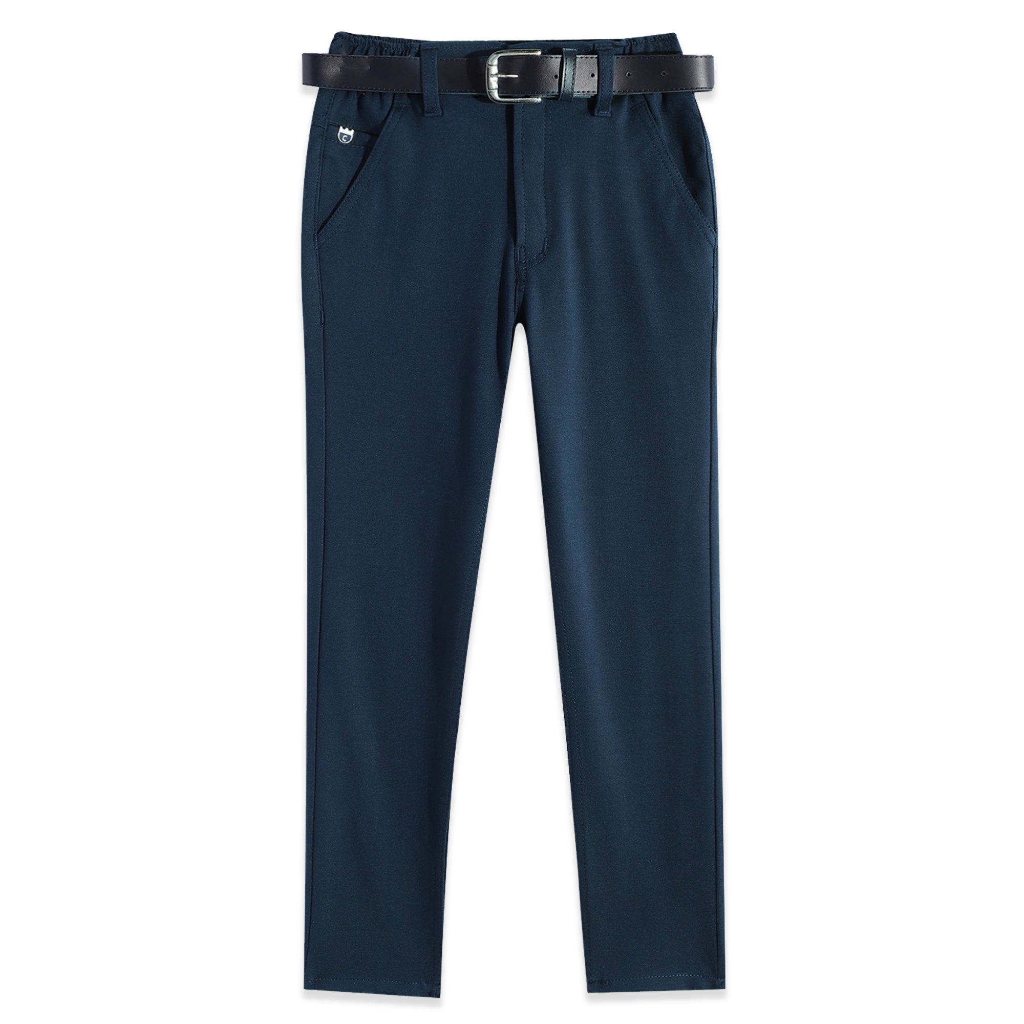 These boys' lycra-blend solid regular-fit trousers with a belt combine comfort and style for a polished look. Crafted from a stretchy lycra blend, these trousers provide excellent flexibility and all-day comfort. The regular fit ensures a classic silhouette, while the included belt adds a smart finishing touch. Perfect for both casual and semi-formal occasions